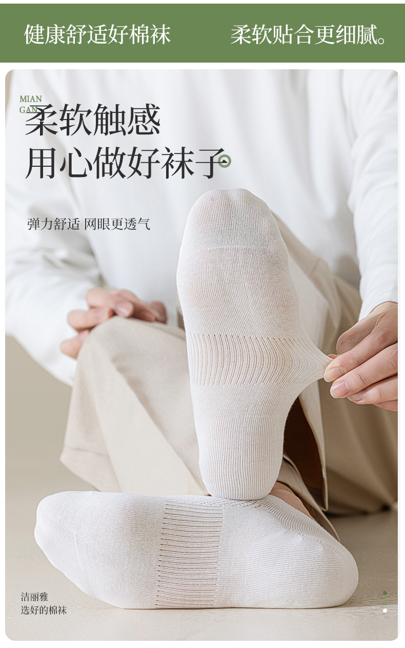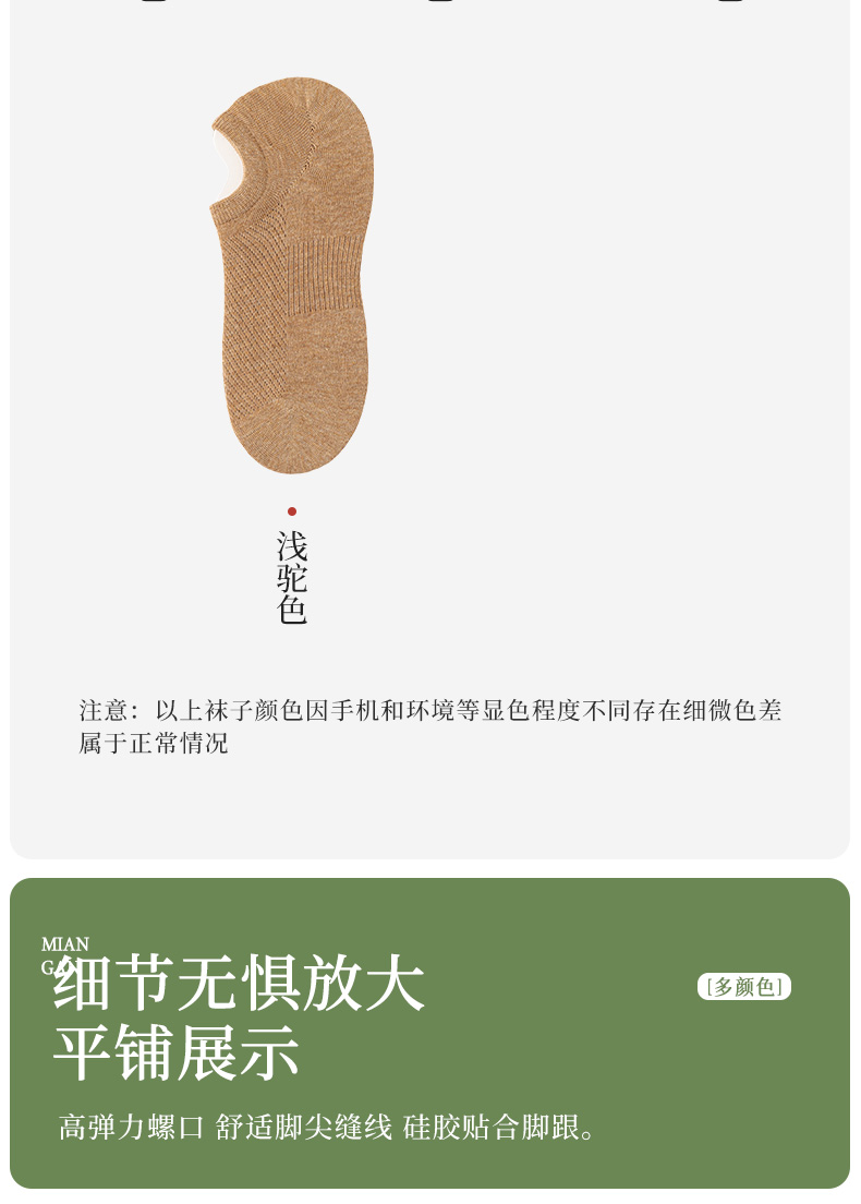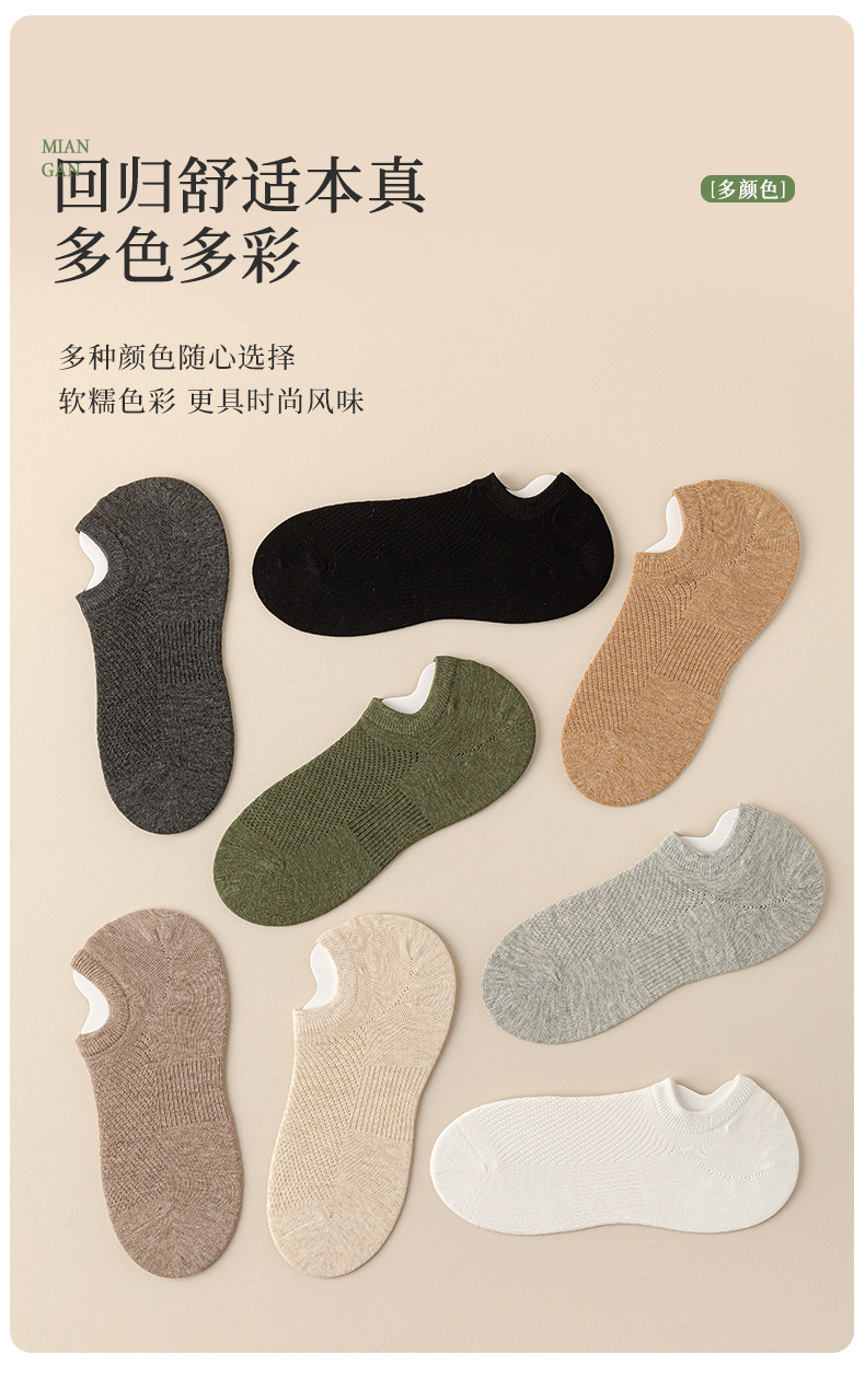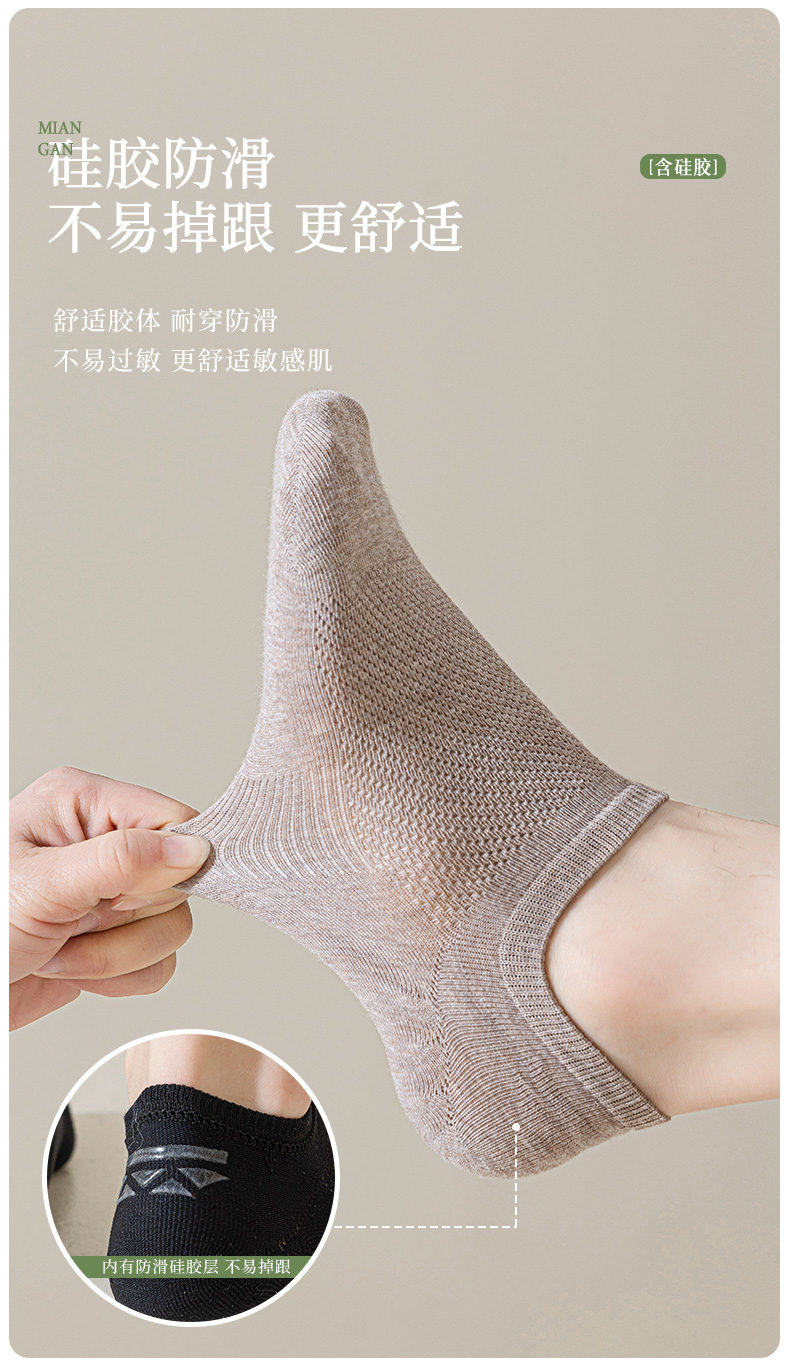 洁丽雅5A抑菌男士船袜网眼透气硅胶防滑棉感舒适短袜隐形袜子男