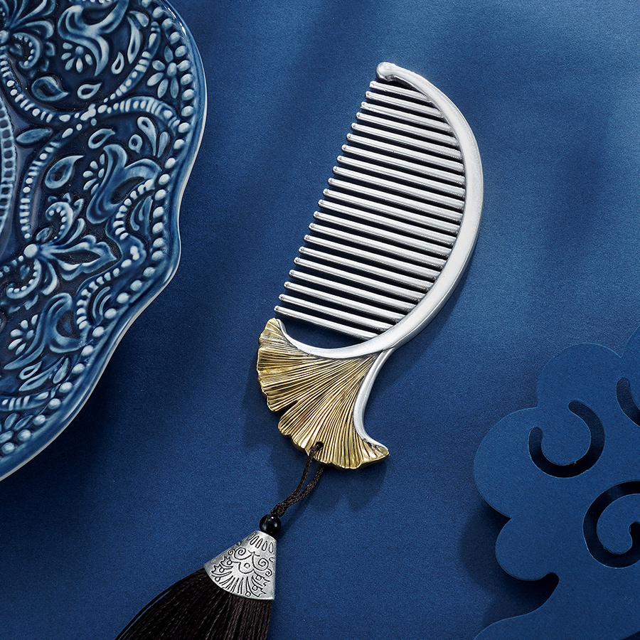 【寓意】:镀金工艺以温情的诗意,赋予银杏最美的姿态,银杏也以真挚的情感,回馈岁月最清新的悠然。流苏点缀,风情流转,演绎沉敛典雅的韵味。
