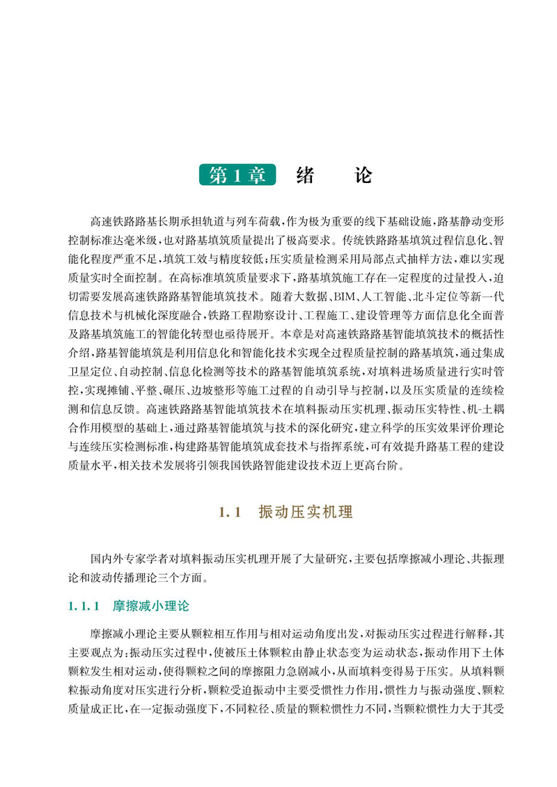 为推进我国铁路建设数字化、智能化升级,中国铁道科学研究院集团自2016年起开展了压实质量连续检测技术研究。本书基于“基于机土耦合的路基基础理论及智能填筑技术研究”(2019YJ026)、“基于压路机振动波场效应的路基填料压实质量实时检测技术研究”(J2020G004)等课题研究成果,系统论述高速铁路路基智能填筑技术。内容涵盖了填料宏细观演化特性、机-土耦合作用机理、压实效果评价理论及连续检测技术、路基智能填筑与质量控制成套技术、路基智能填筑指挥系统。本书内容可为规划1万公里高铁路基智能建设提供了有效指导,为高铁“走出去”战略提供技术支撑,尤其对工期紧张、需全天候施工、高海拔地区、艰苦条件地区的工程具有更加明显的优势,经济与社会效益显著,推广应用前景广阔。