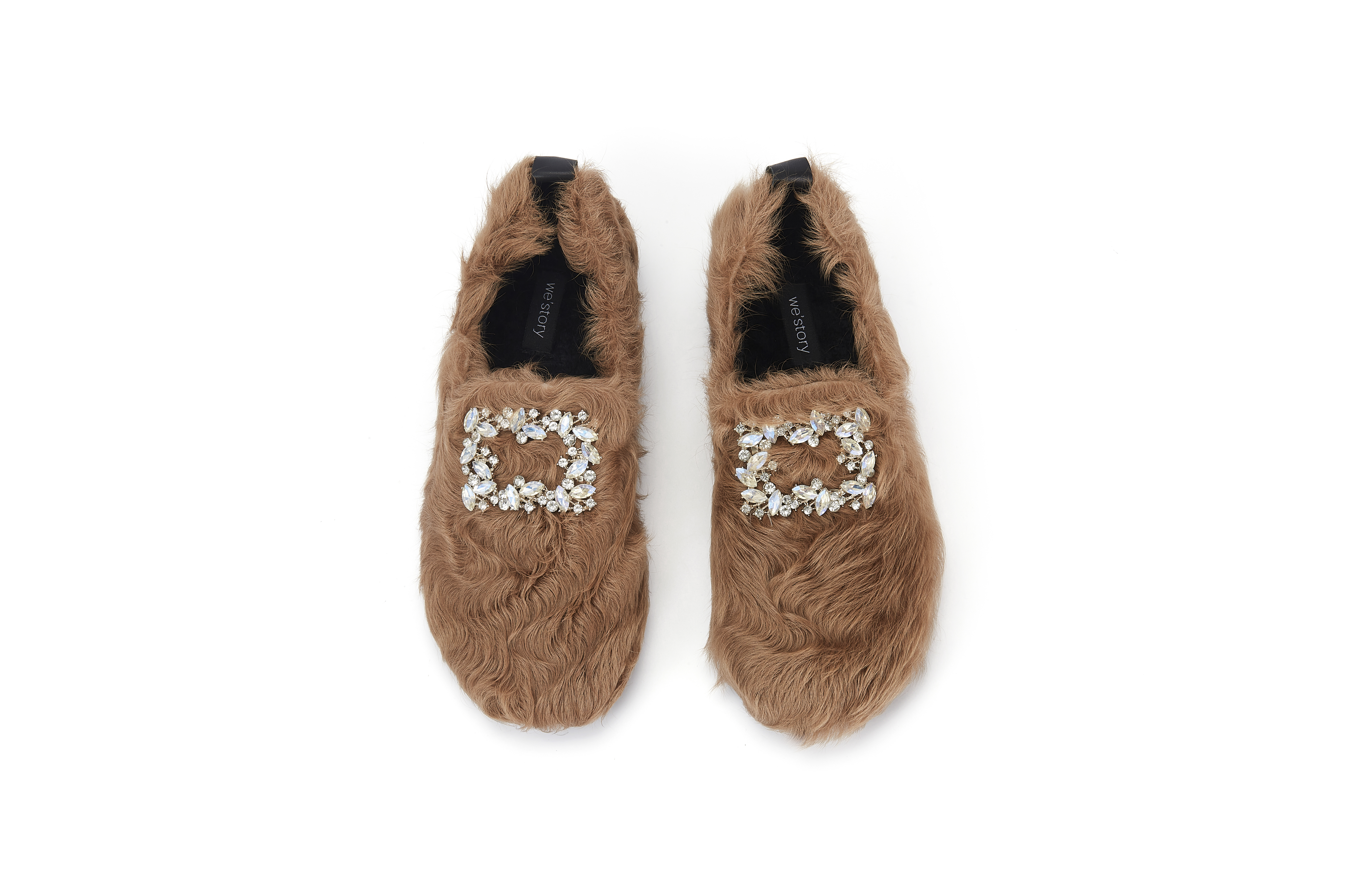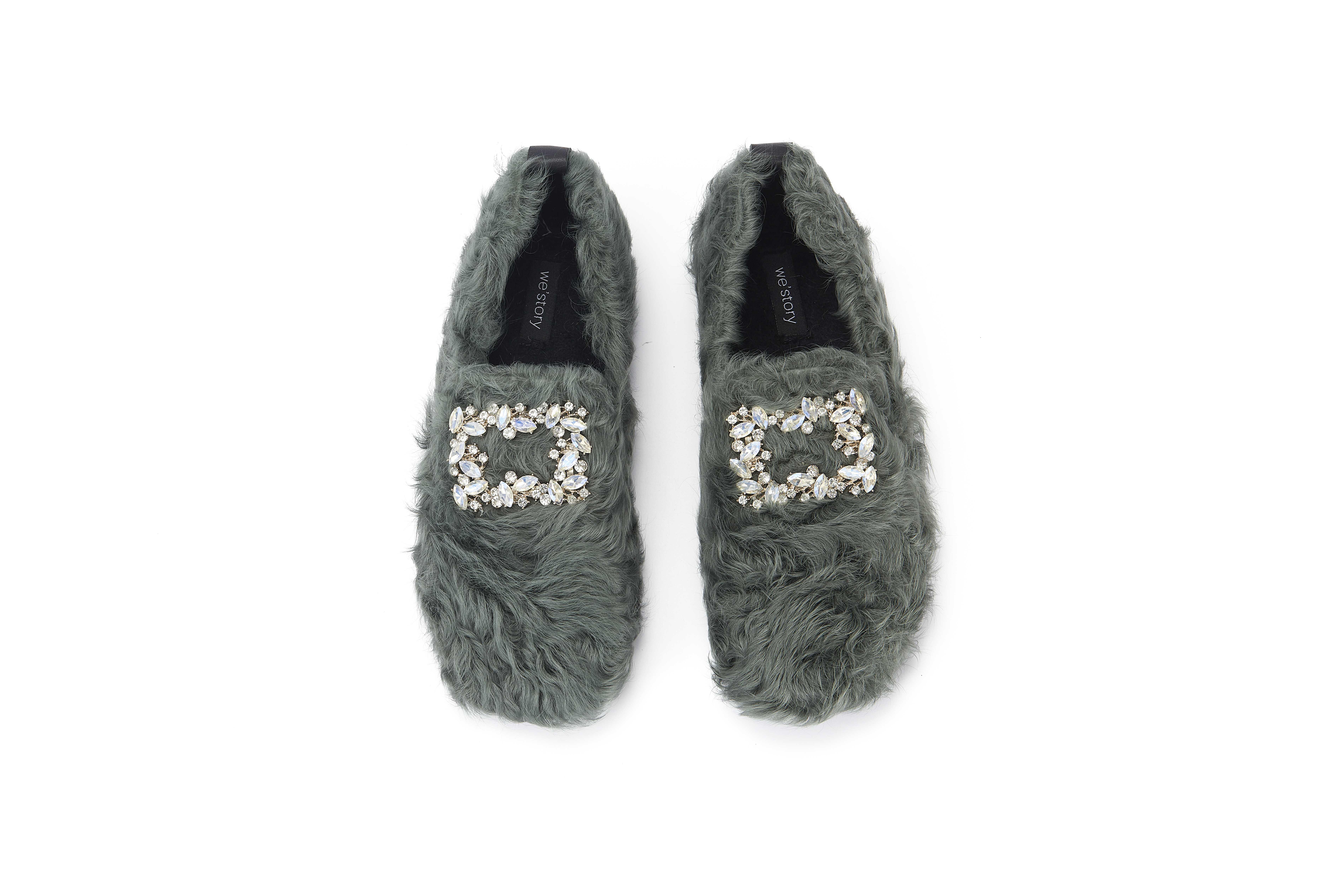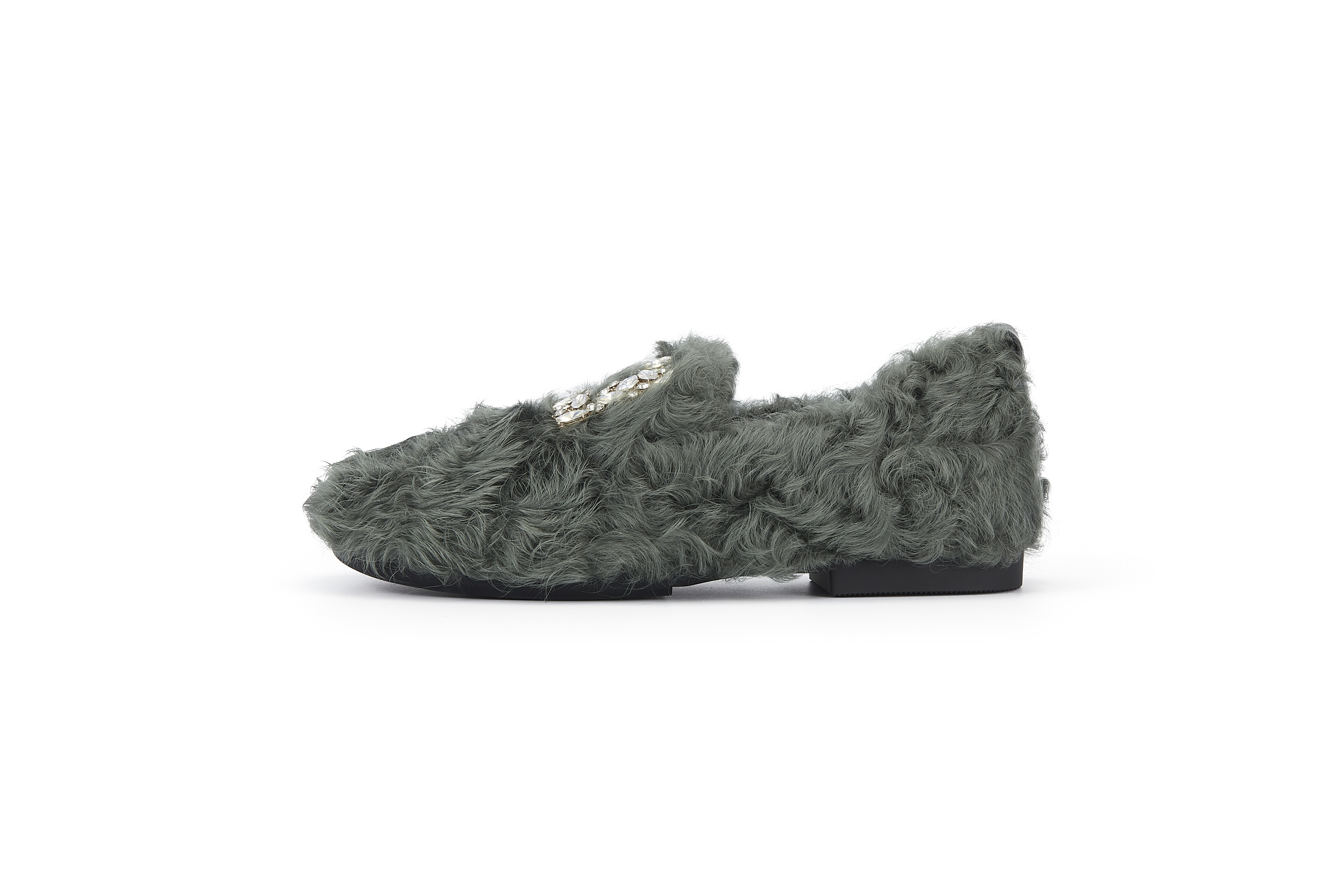 westory22年秋冬新款纯色钻扣平底绒里保暖玛丽珍毛毛鞋女W22CM72801