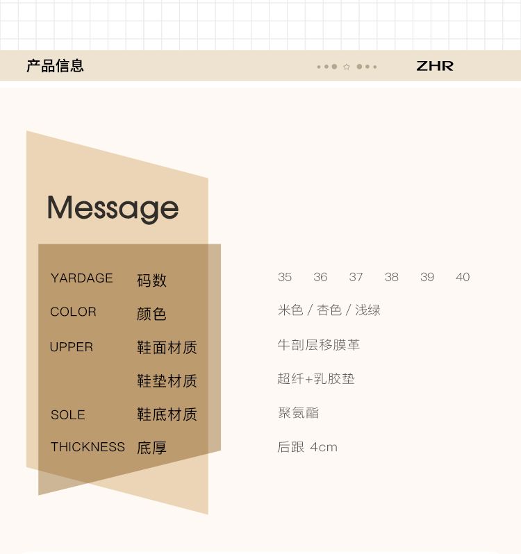 - ZHR一个有态度的女鞋品牌,以具有高性价比、舒适度、美观度的产品和优质服务赢得粉丝青睐