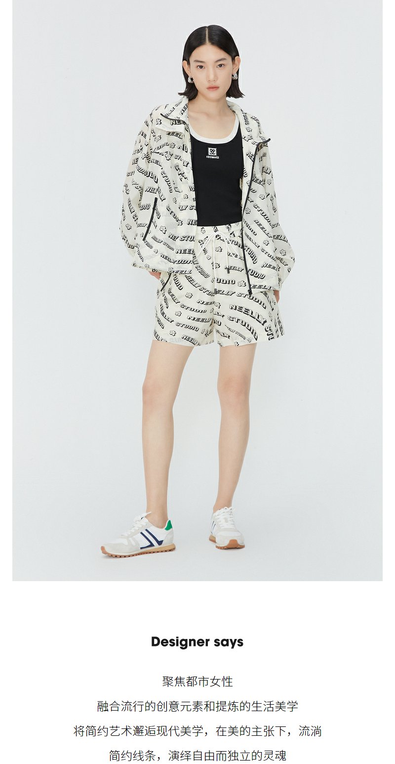 NEELLY纳俪商场同款夏新款时尚印花衬衫阔腿裤套装女百搭两件套N25044Z04574