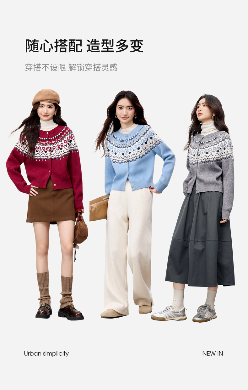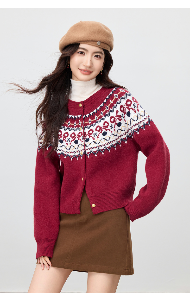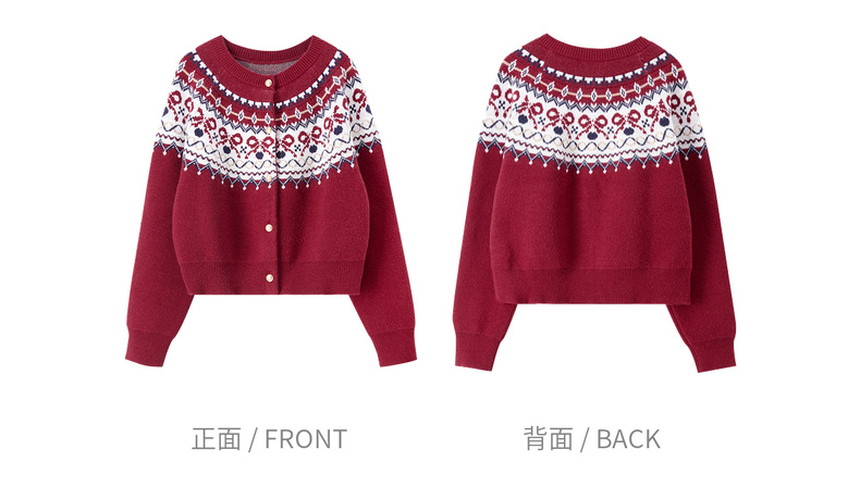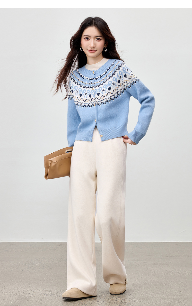 【内购】【费尔岛提花图案】圆领徽章金属扣宽松显瘦弹力安迪绒开衫毛衣-W53EB3372