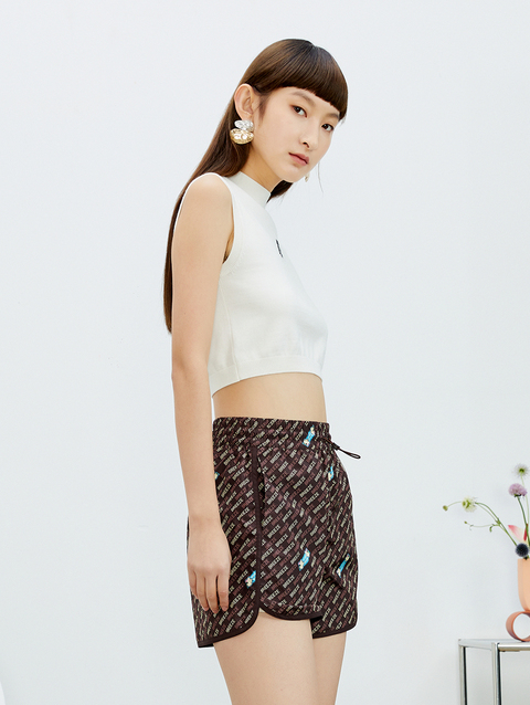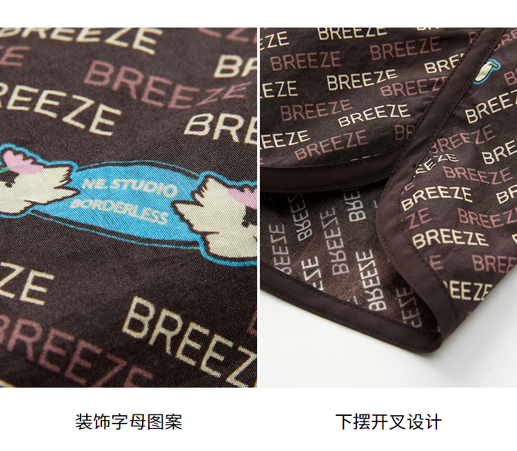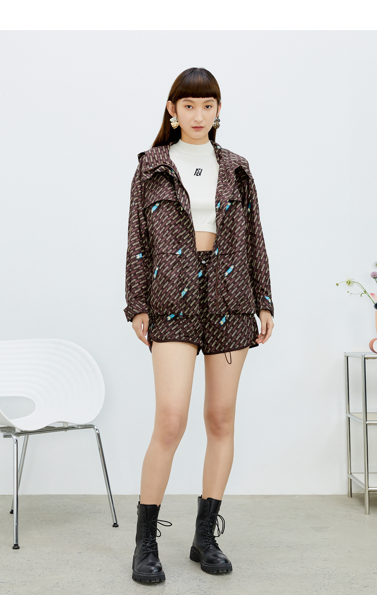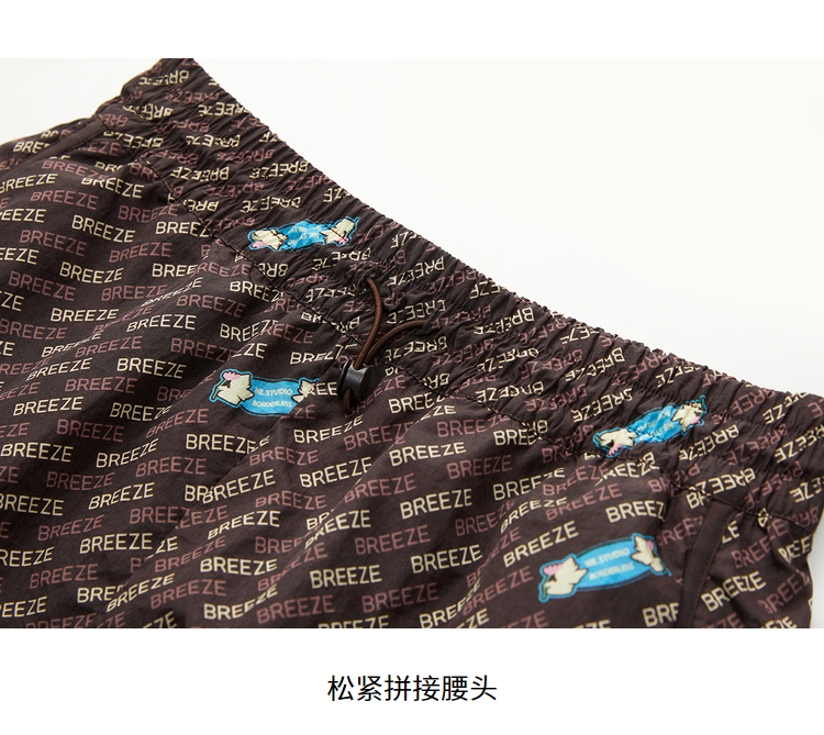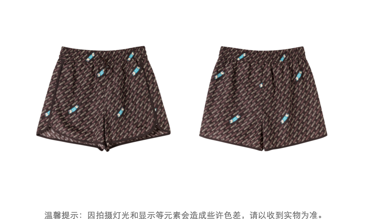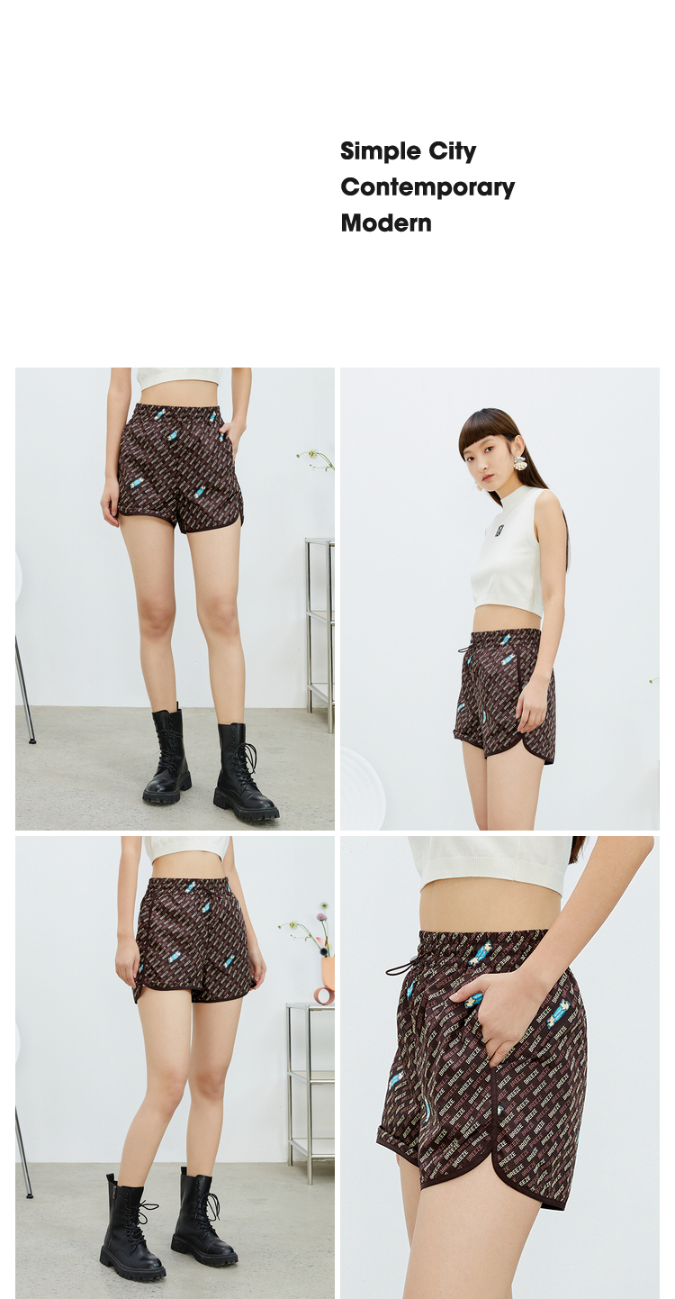 NEELLY纳俪商场同款直筒裤咖啡色个性字母印花开叉抽绳短裤N22032H01159