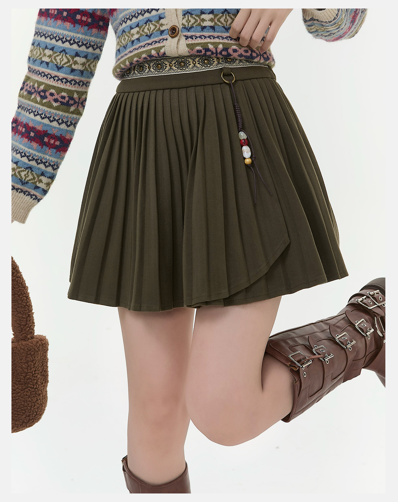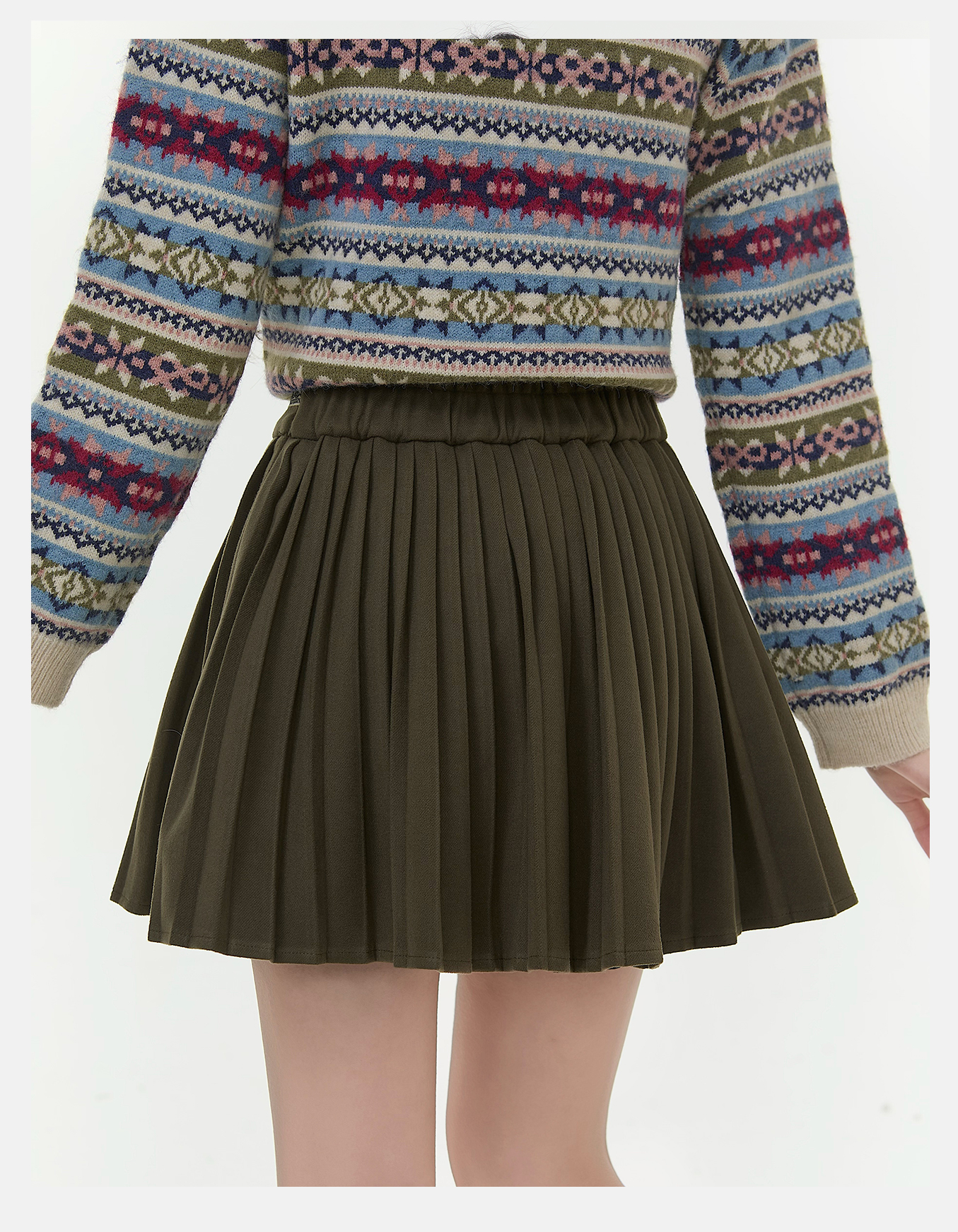 P&X设计师女装2025冬季百褶裙A字复古半身短裙 825407094 绿色