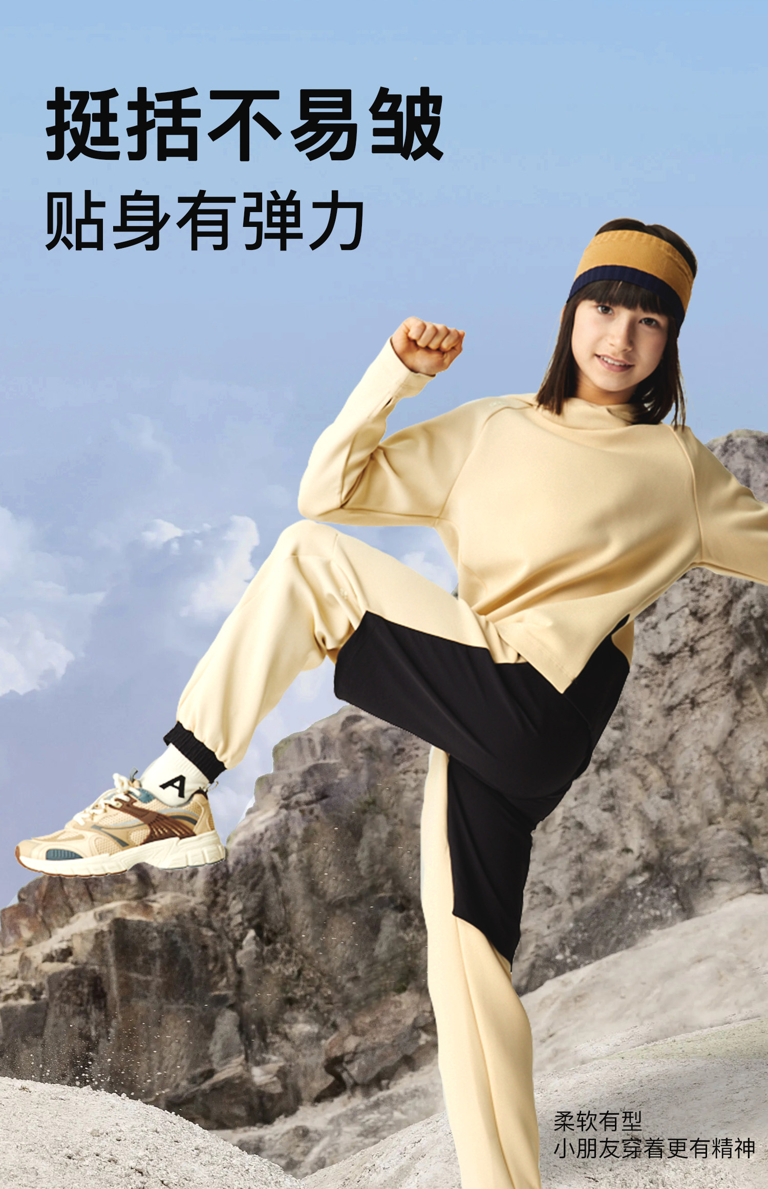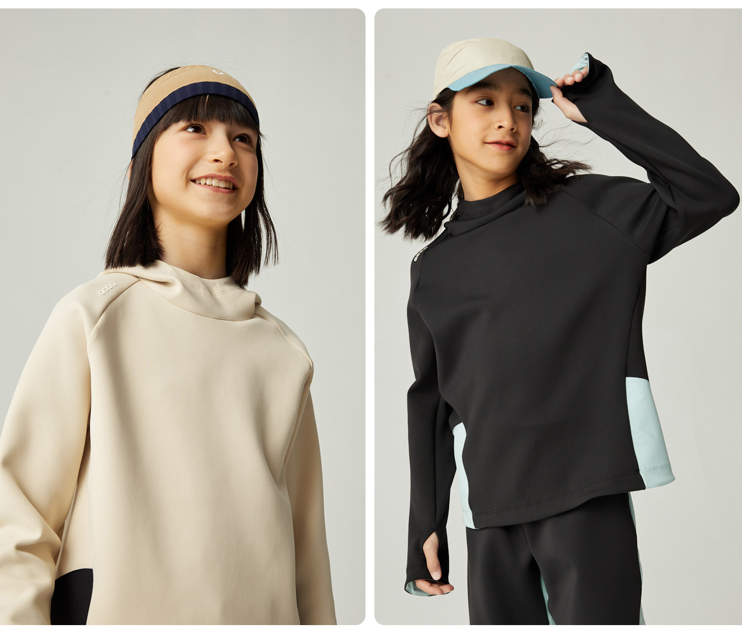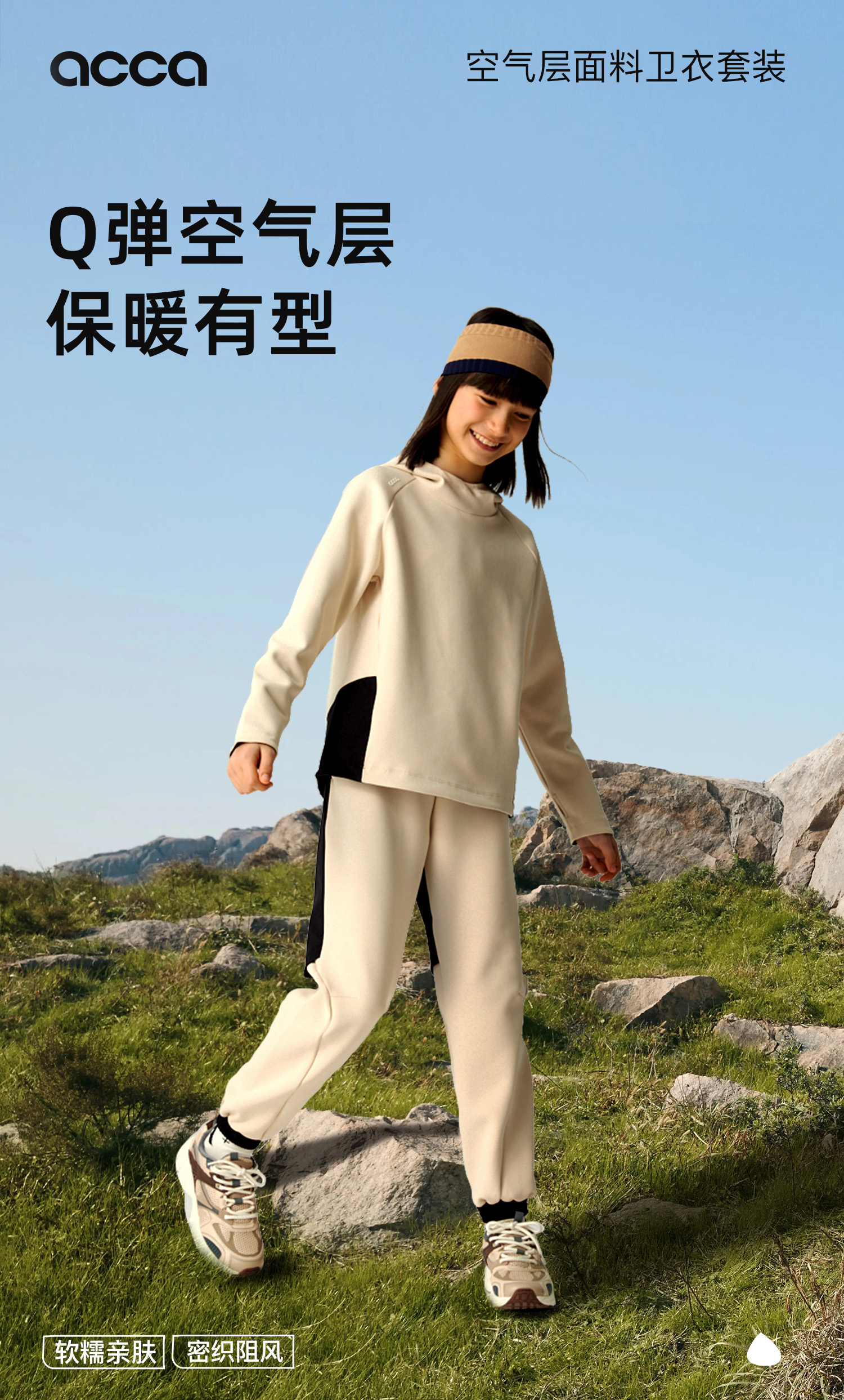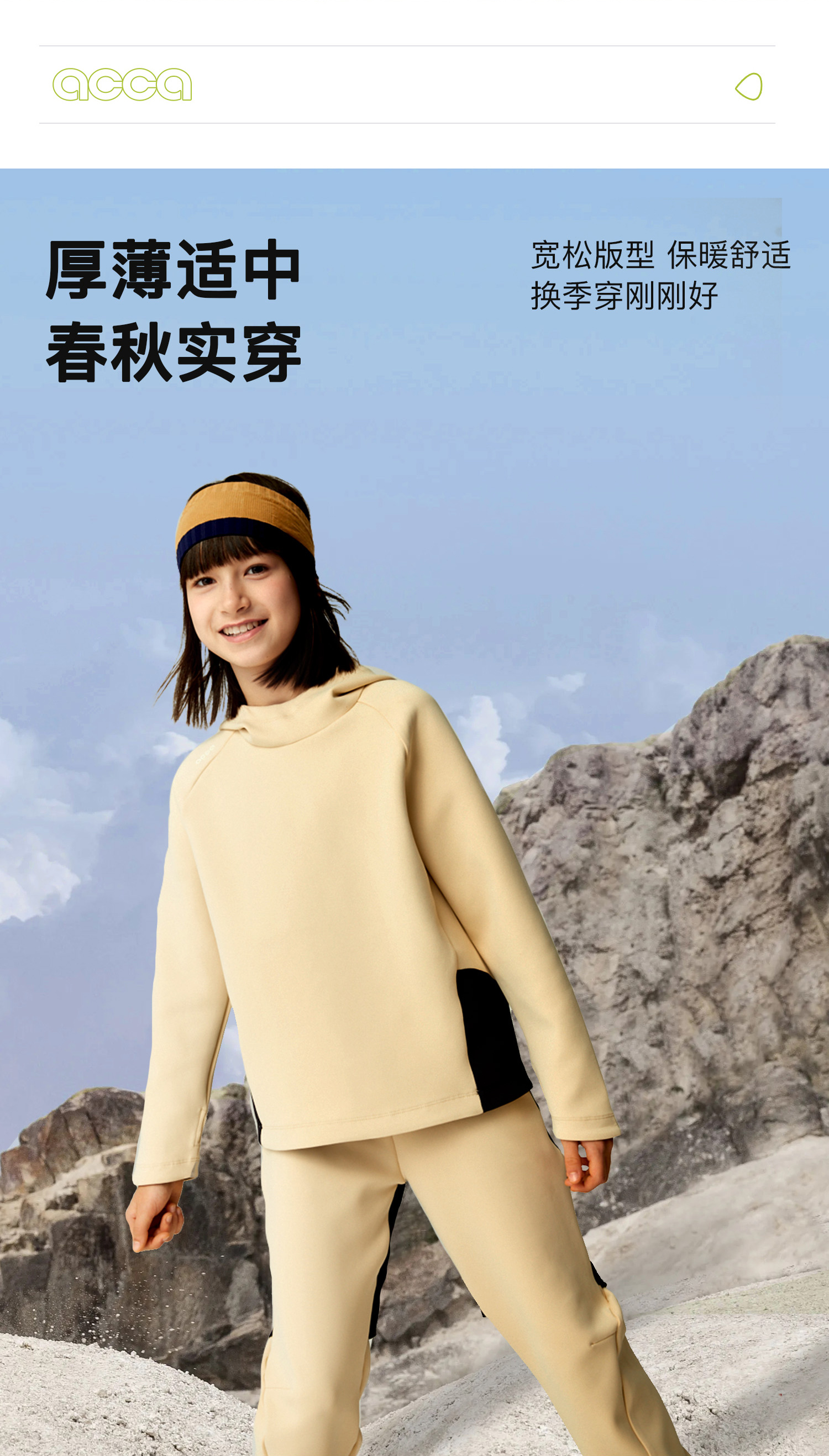 acca 儿童卫衣空气层保暖长袖连帽上衣男女童新款运动宽松套头衫