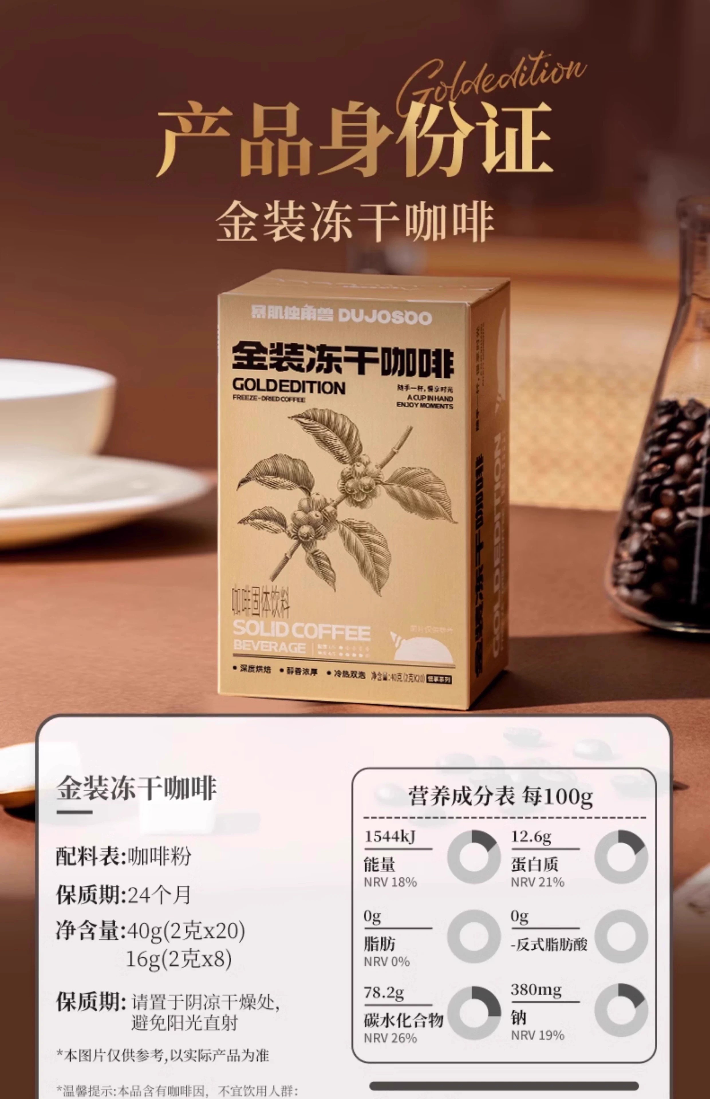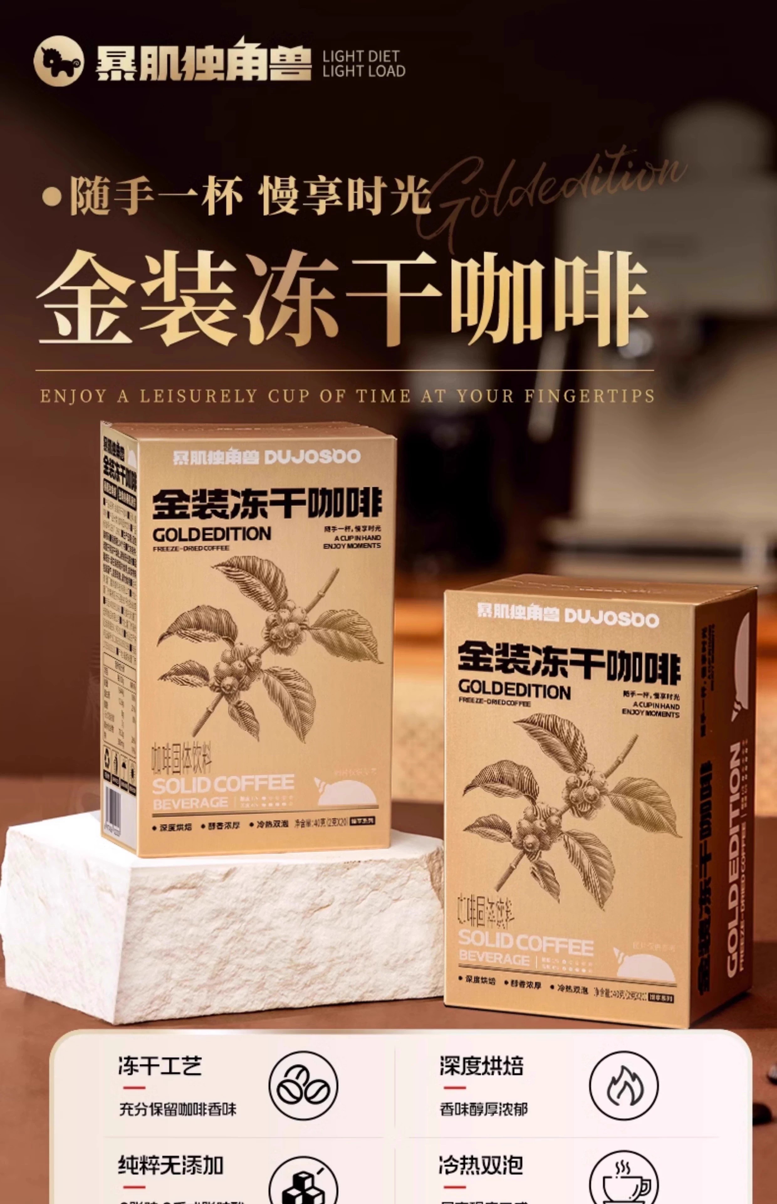 【暴肌独角兽】金装速溶冻干黑咖啡拿铁无蔗糖燃减美式咖啡粉提神冲饮