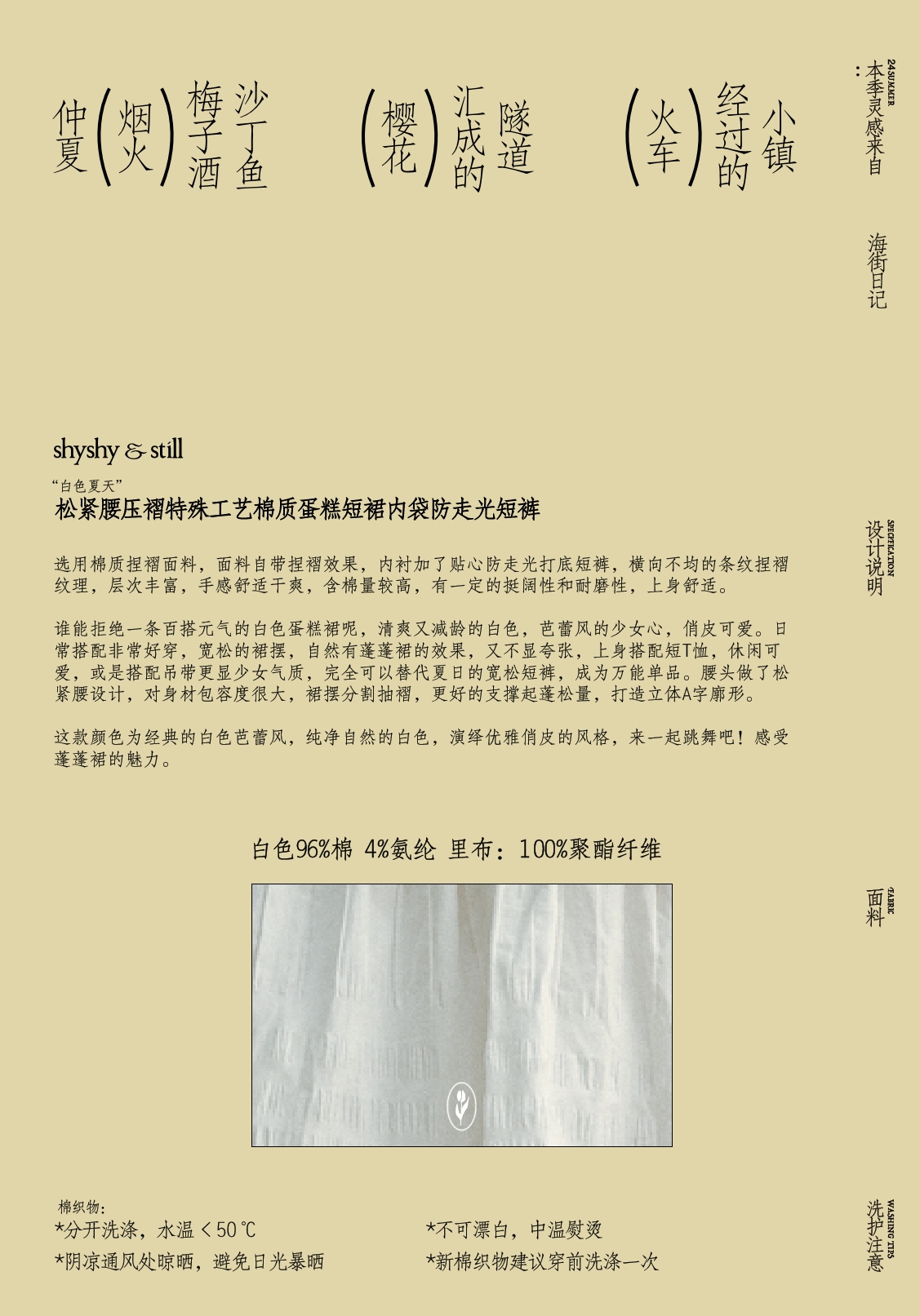 shyshystill/shy202404005/松紧压褶特殊工艺棉质蛋糕短裙内袋防走光短裤