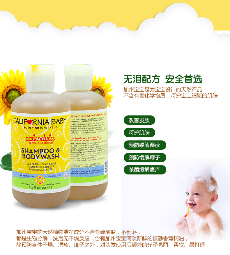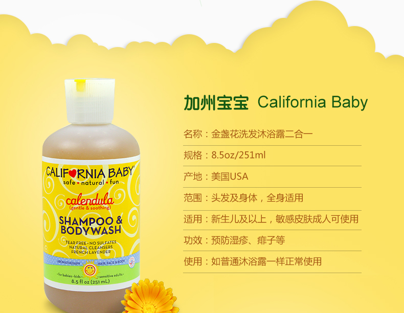 Californiababy金盏花洗发沐浴露251ml【加州宝宝】