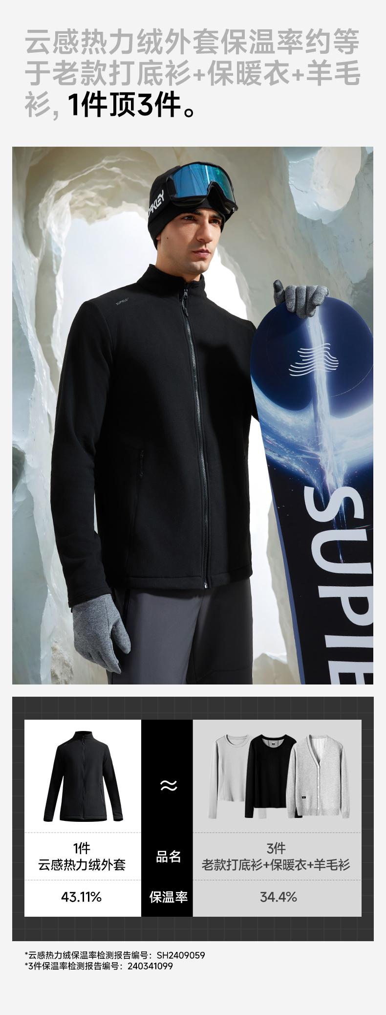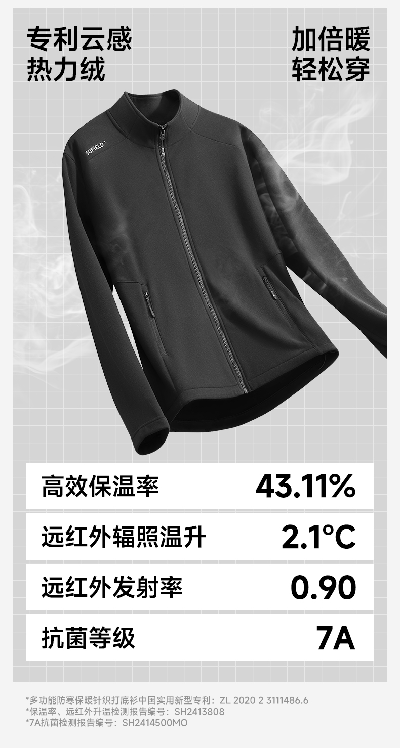 素湃Supield秋冬保暖抓绒衣秋冬打底衫外套拉链开衫高弹力抗静电