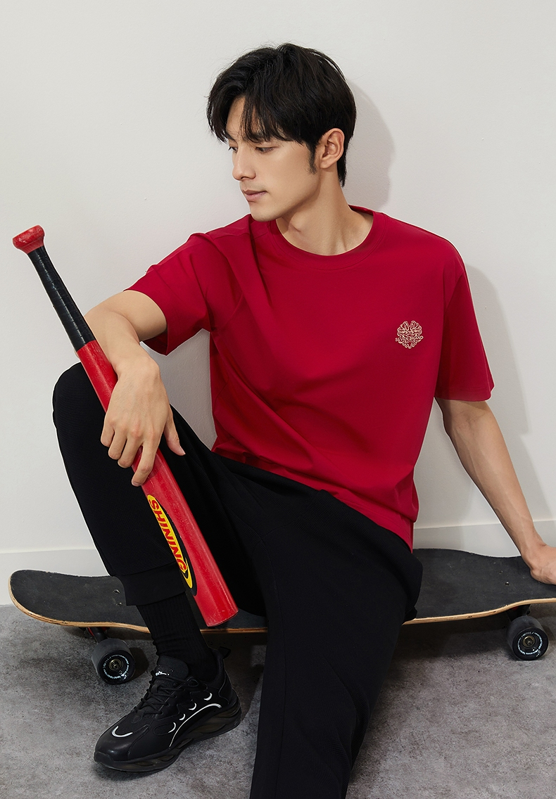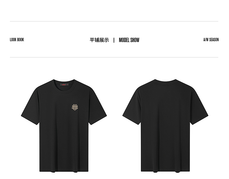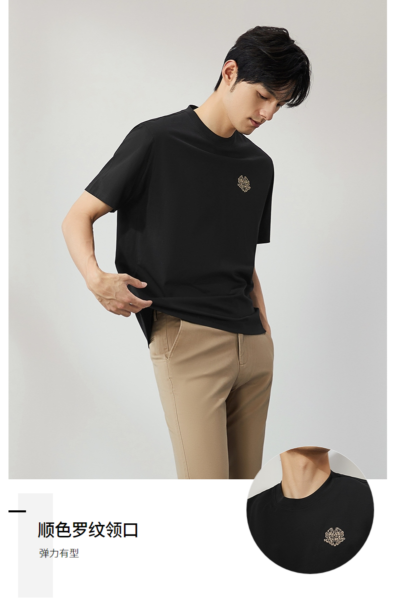 【索罗纳凉感】柒牌短袖T恤男2024夏季新款金线刺绣休闲圆领上衣 126T73600