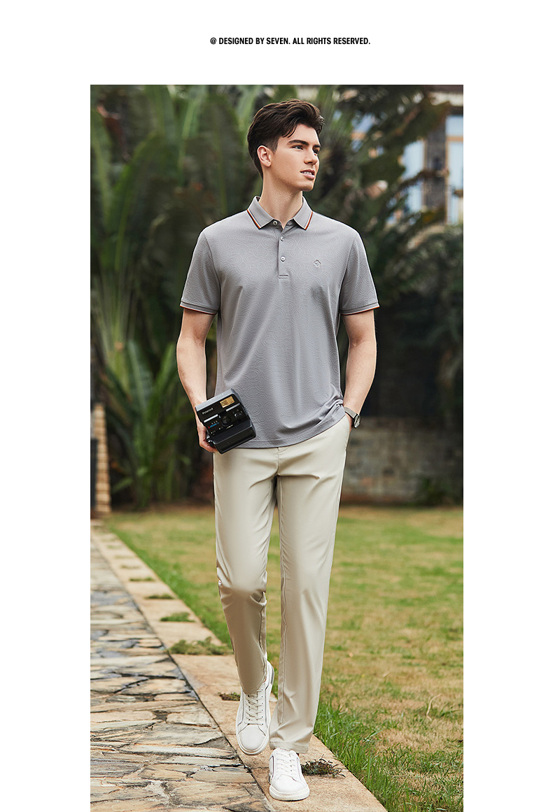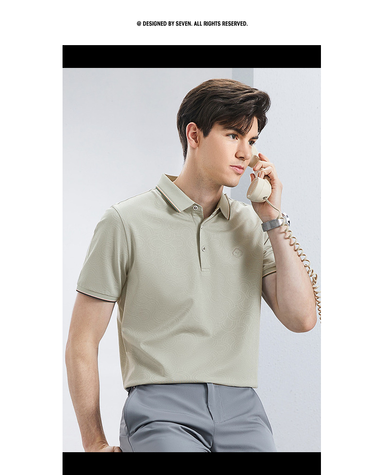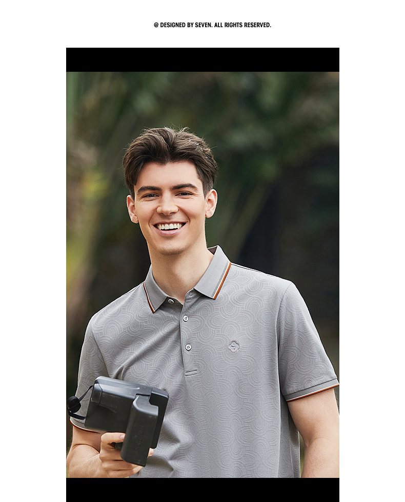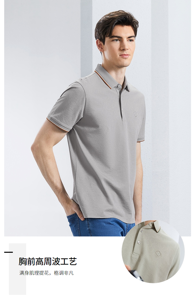 【不变形领】【含麻】柒牌男装短袖POLO衫男夏季新款时尚潮流满身提花翻领T恤 126T70660