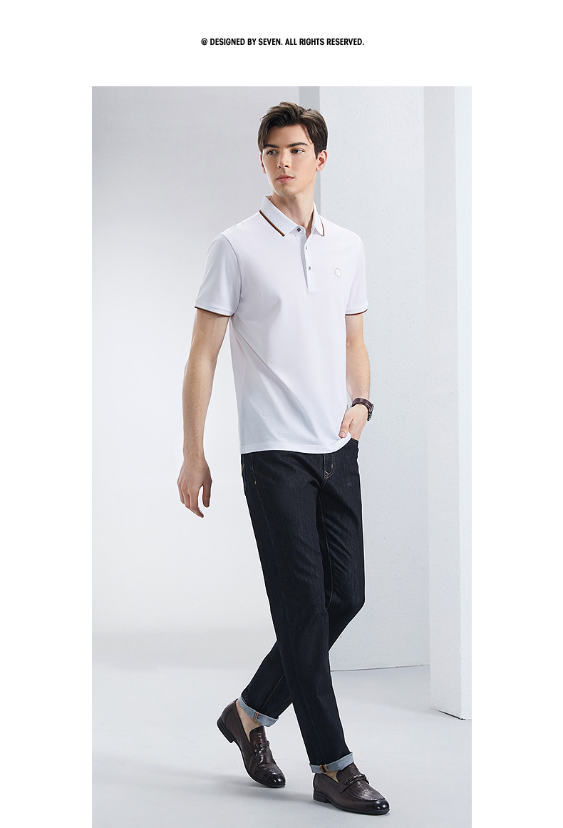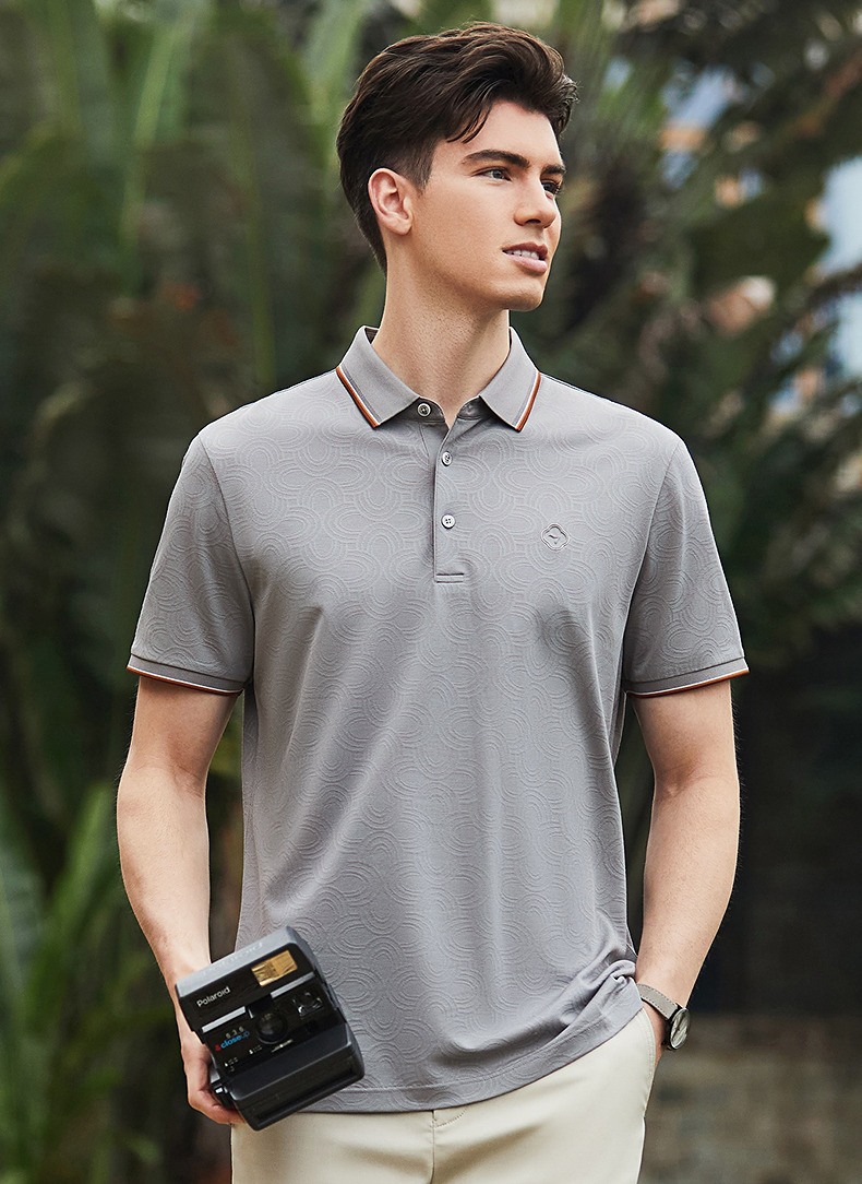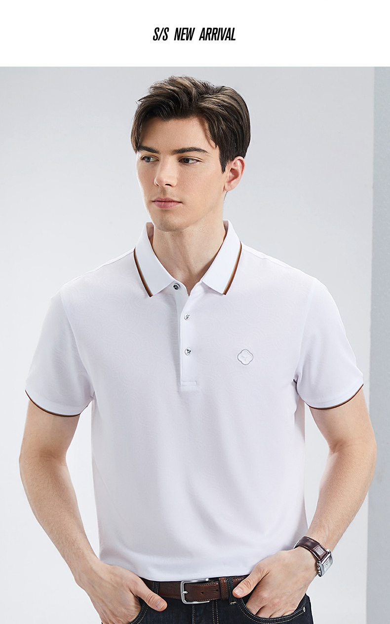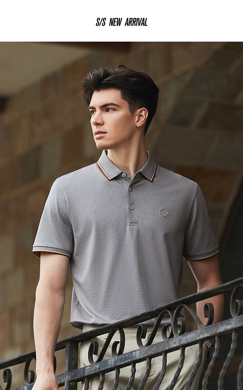【不变形领】【含麻】柒牌男装短袖POLO衫男夏季新款时尚潮流满身提花翻领T恤 126T70660