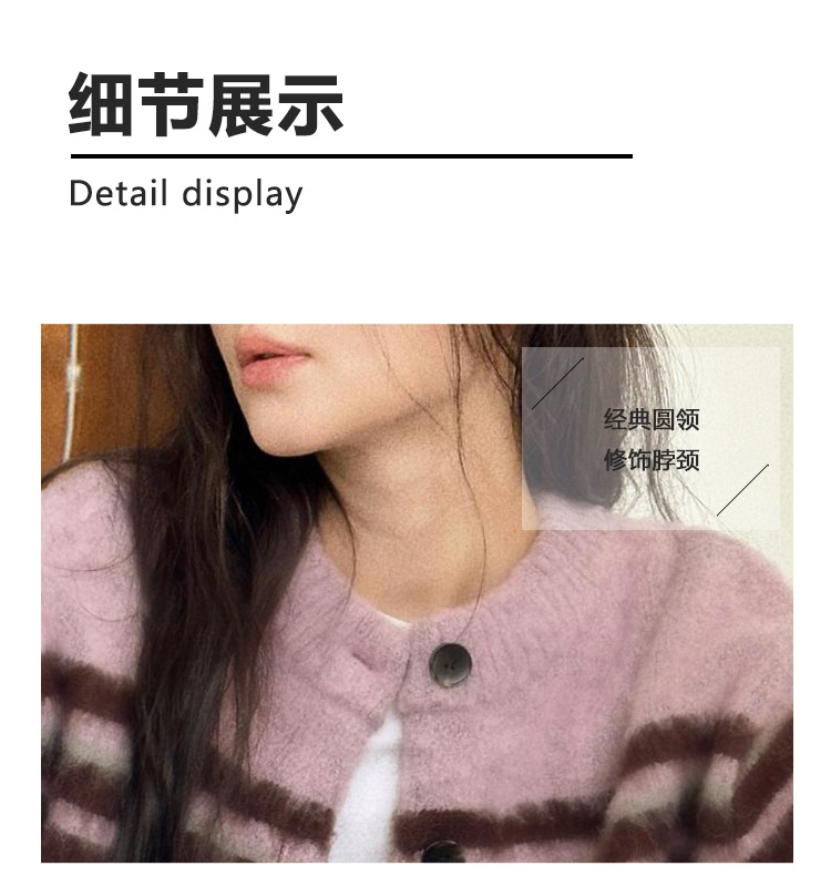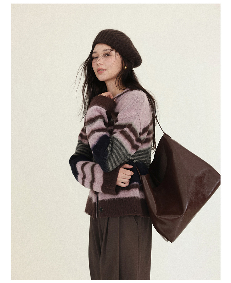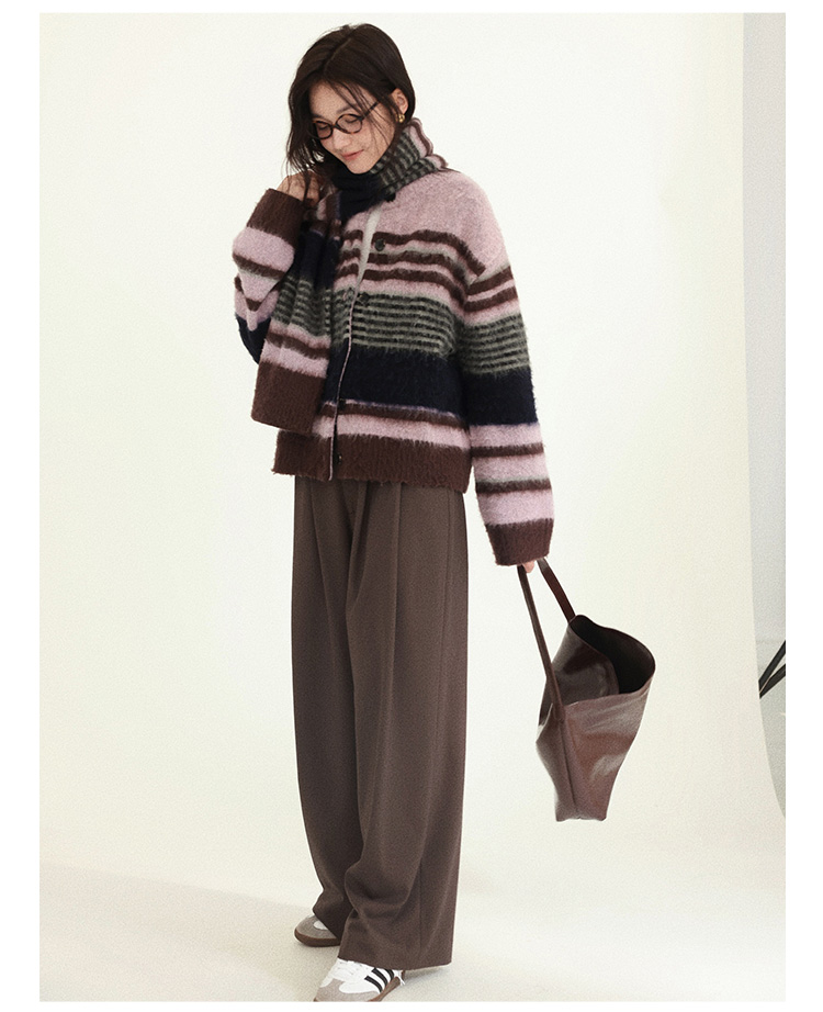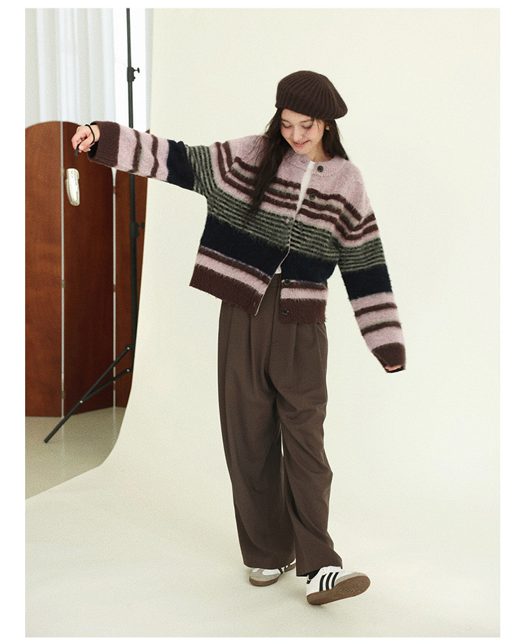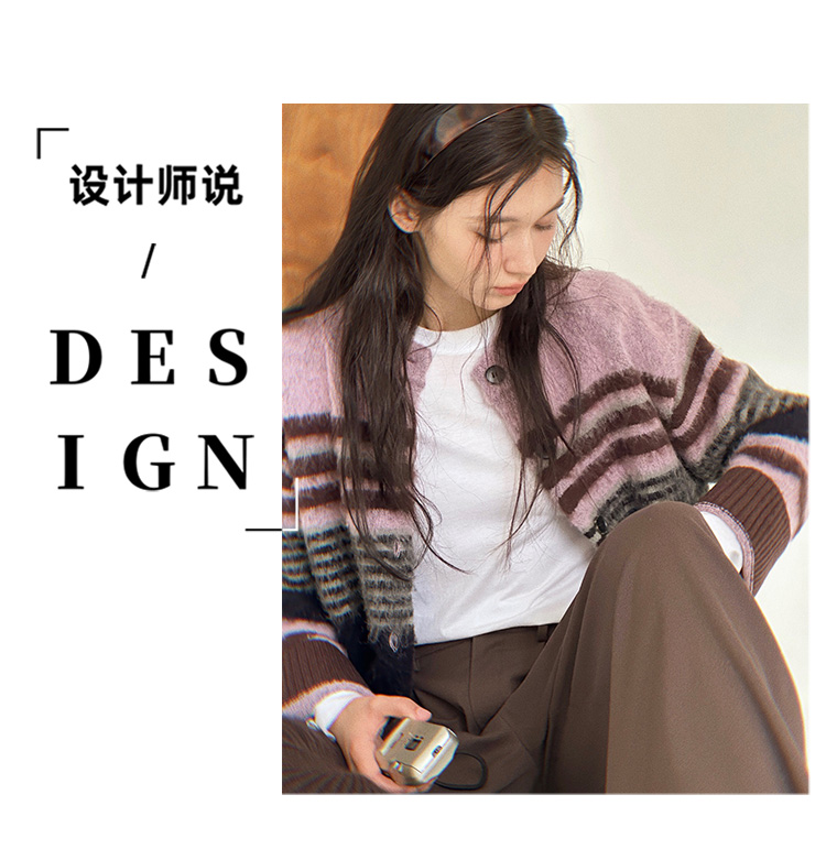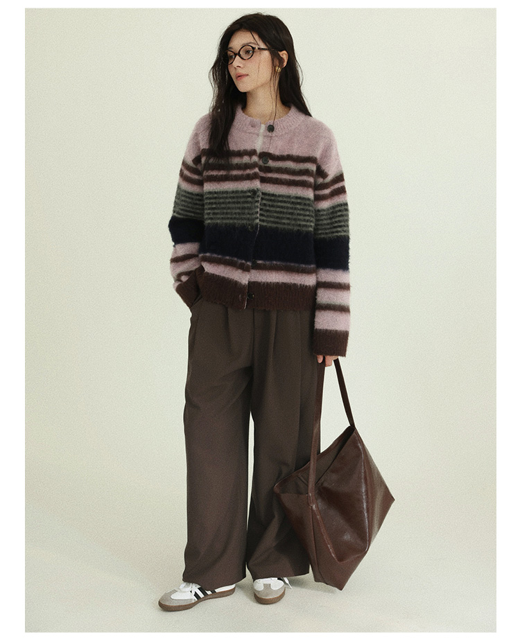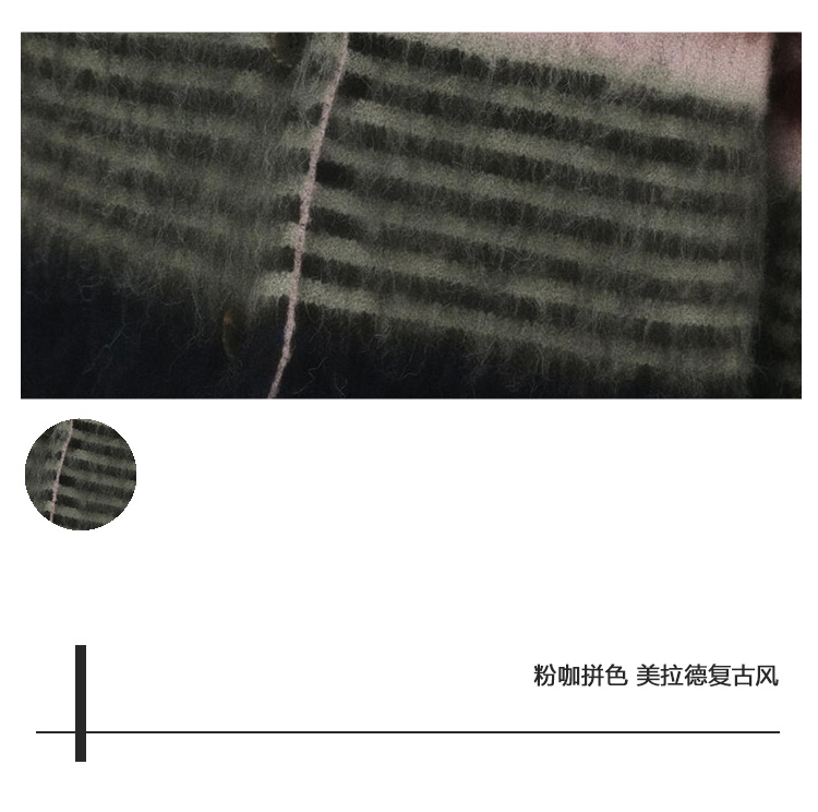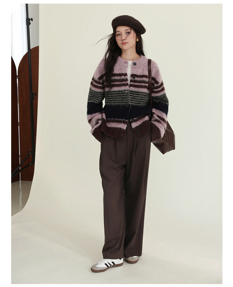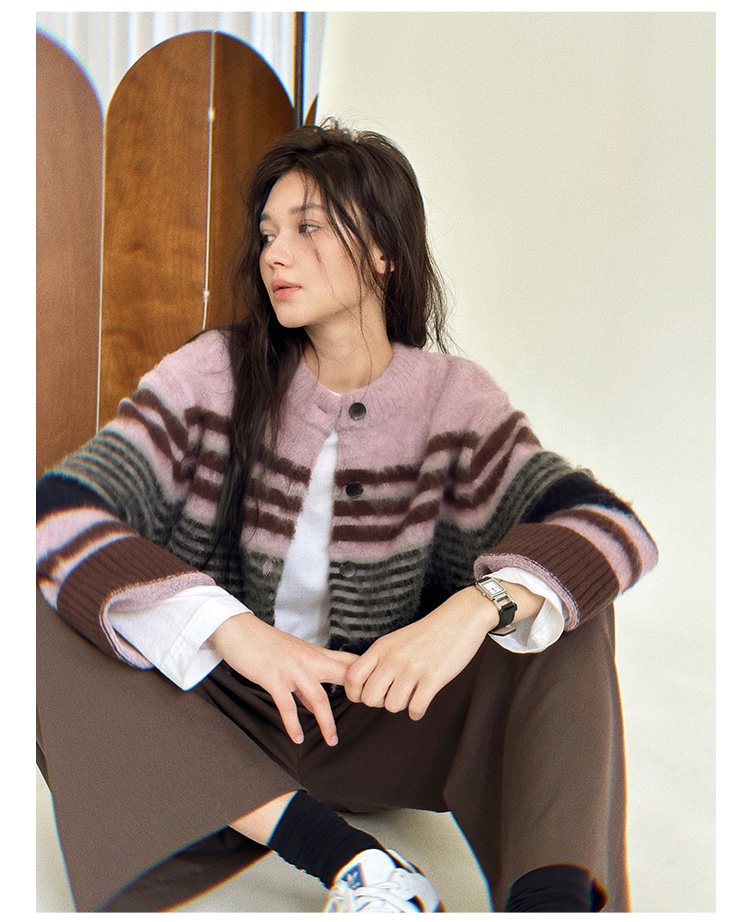 Even Vintage| 高ji感配色 条纹针织仿马海毛抓毛毛衣开衫外套冬