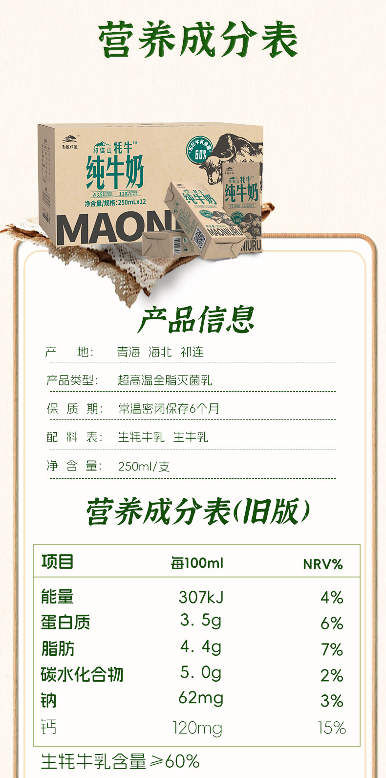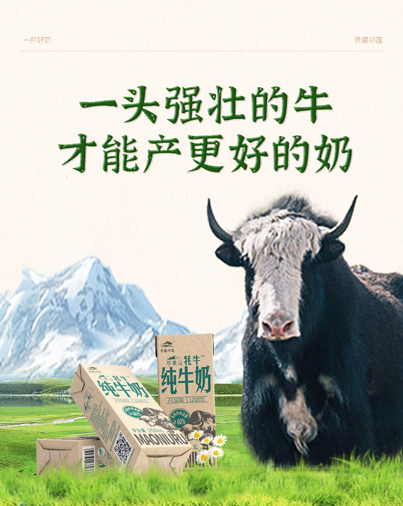 青藏祁莲祁连山牧场 牦牛乳含量≥60% 250ml*12盒*4箱