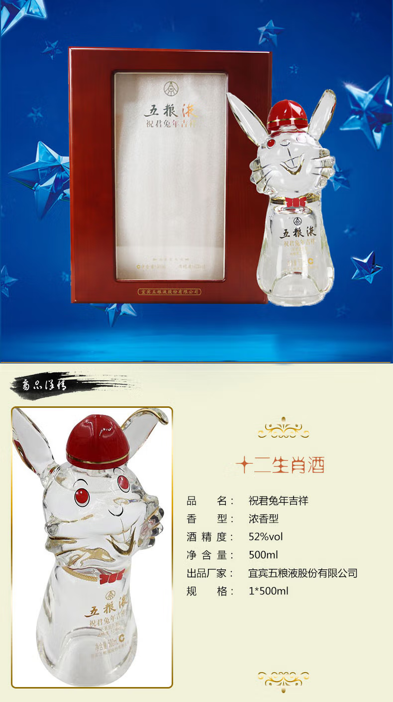 52度五粮液祝君兔年吉祥500ml 单瓶