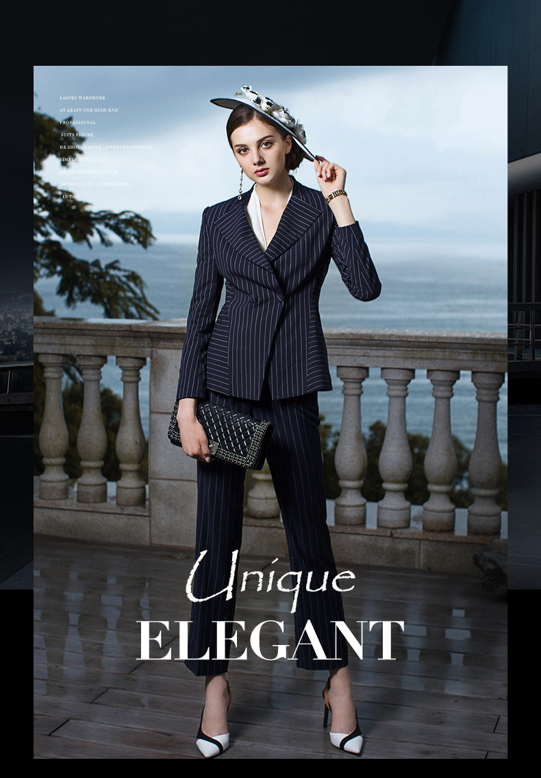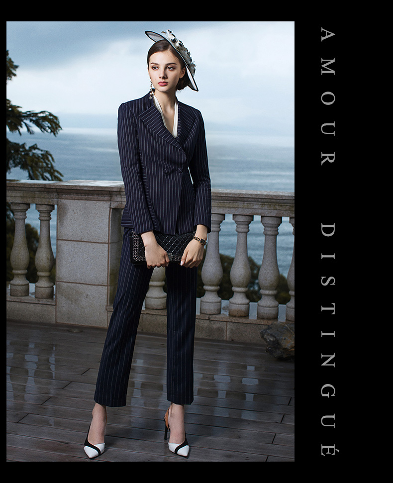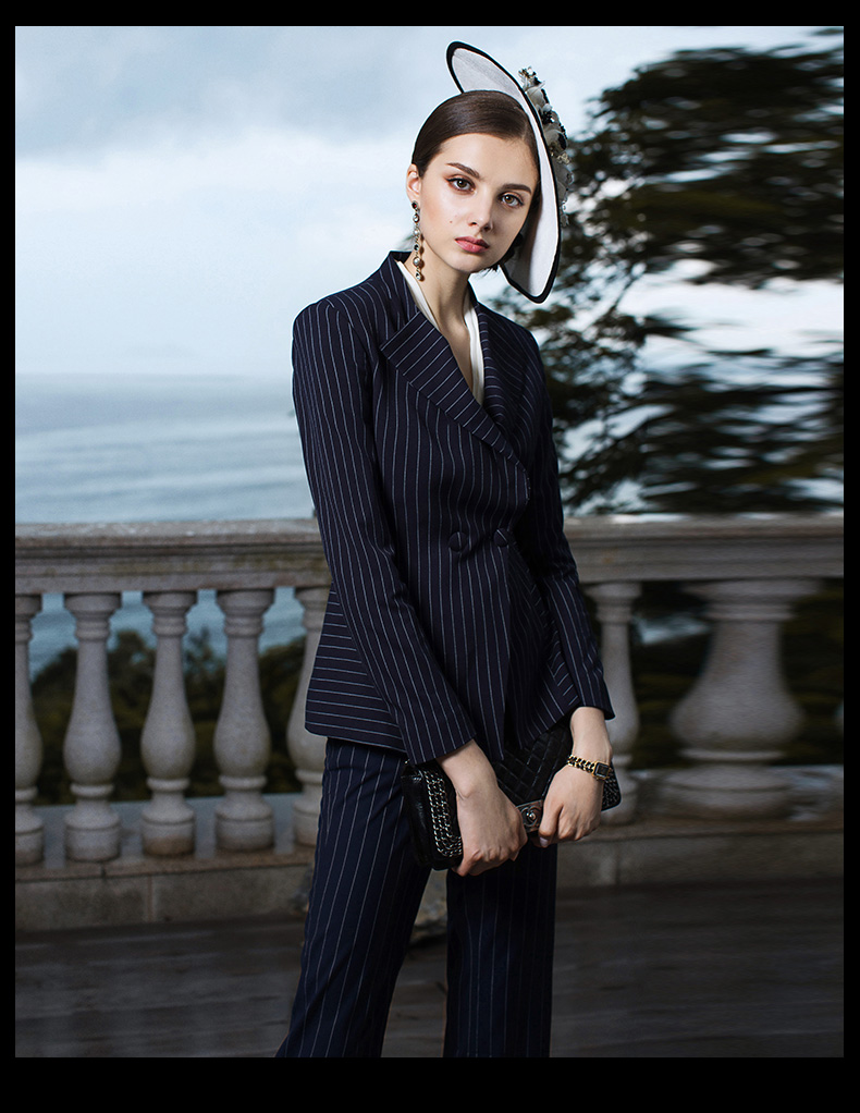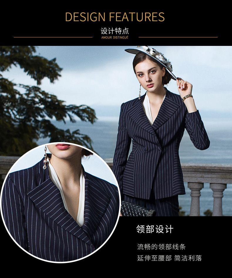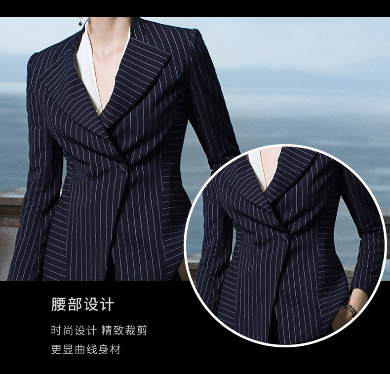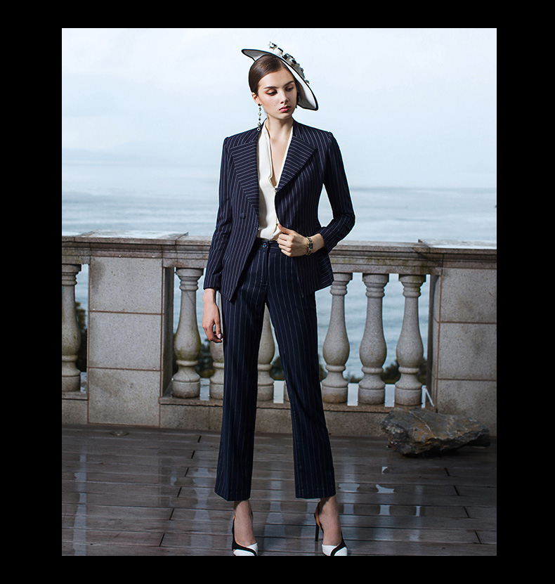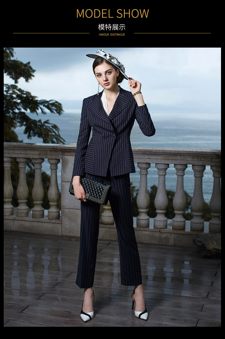 IWY/蓝色条纹长袖西装长裤套装CPS429