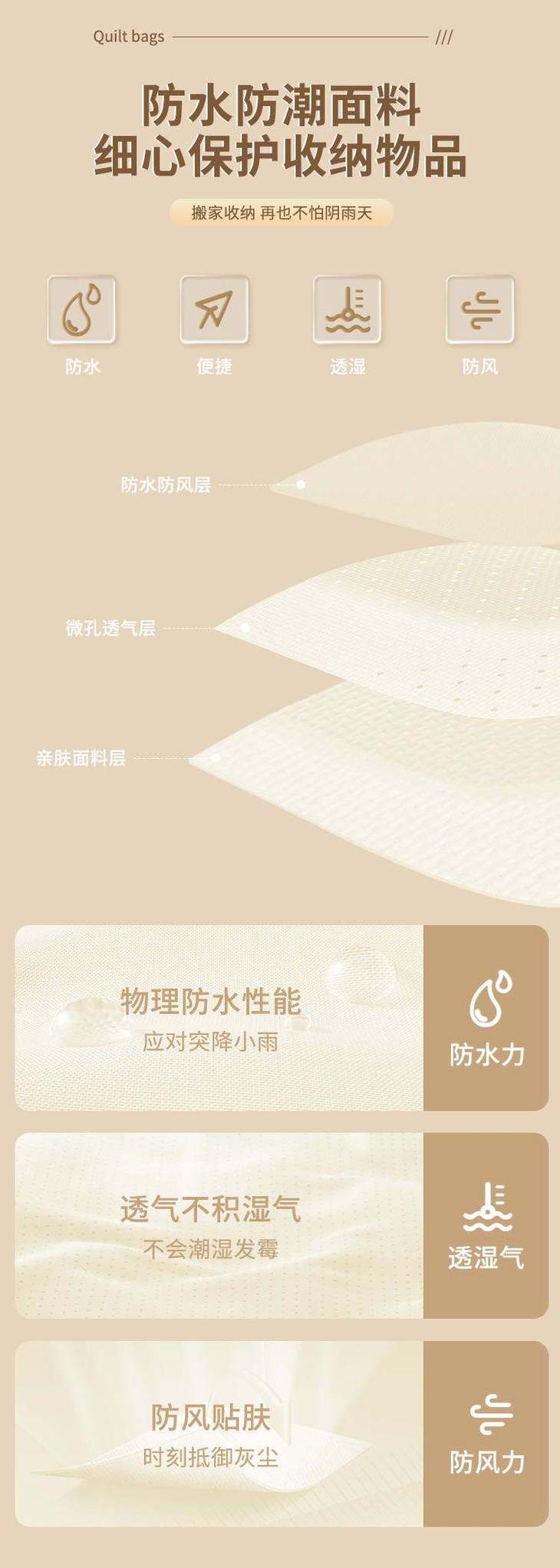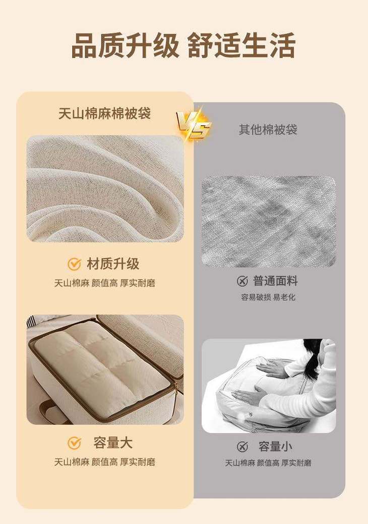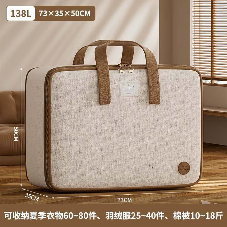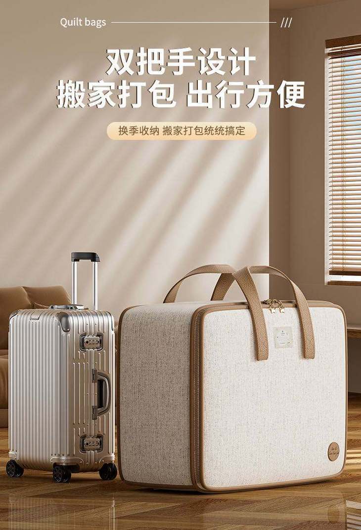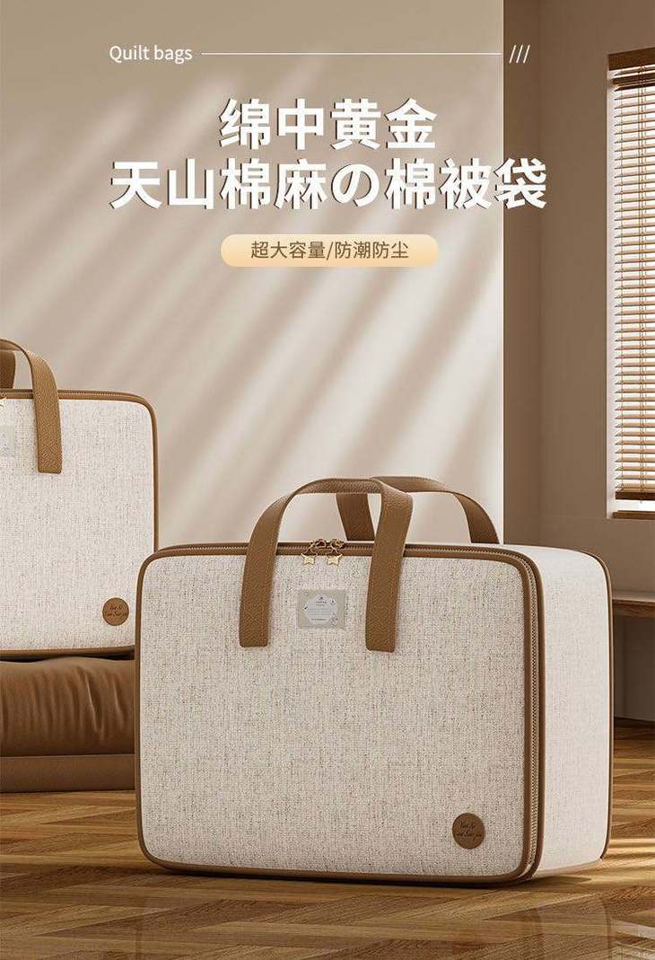 天山棉麻材质真的不错,防尘防潮防霉,很耐磨耐用。 ✨颜值也高,尽显高级! 🔥手提处很结实牢固,加宽的提手,拎着不勒手 🌟关键容量还很大,冬夏被子都能放,放衣服的话可以放很多件!妥妥的收纳小能手
