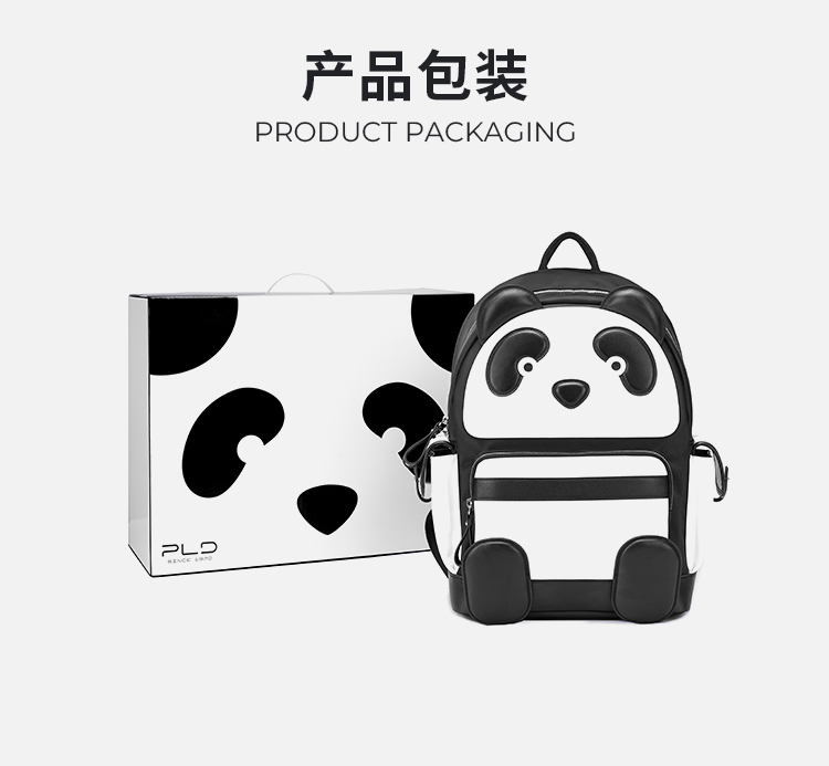 保兰德PLD2024新款可爱大熊猫友谊使者中号双肩包大容量高中生初中生学生书包