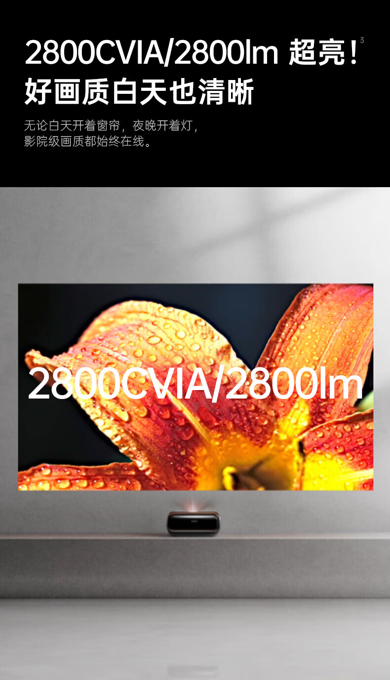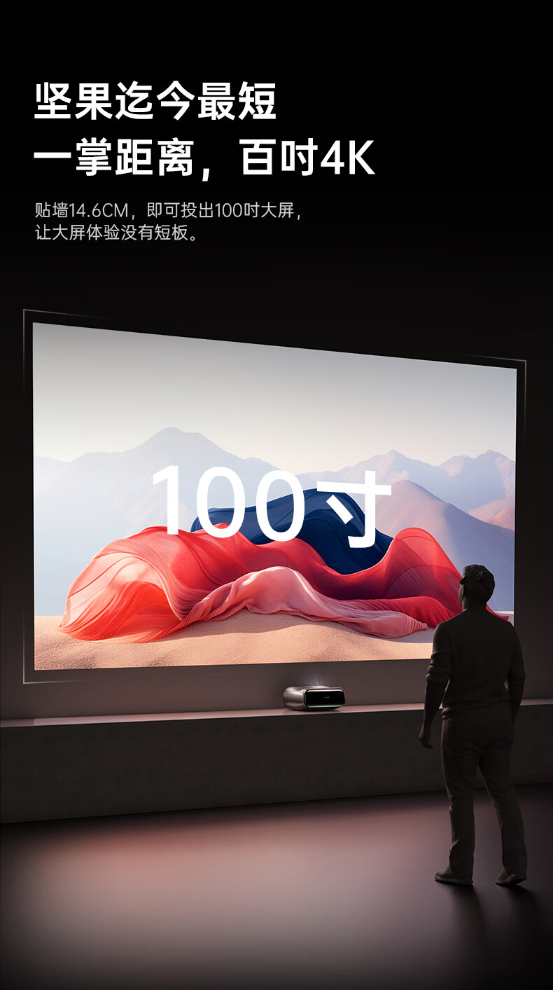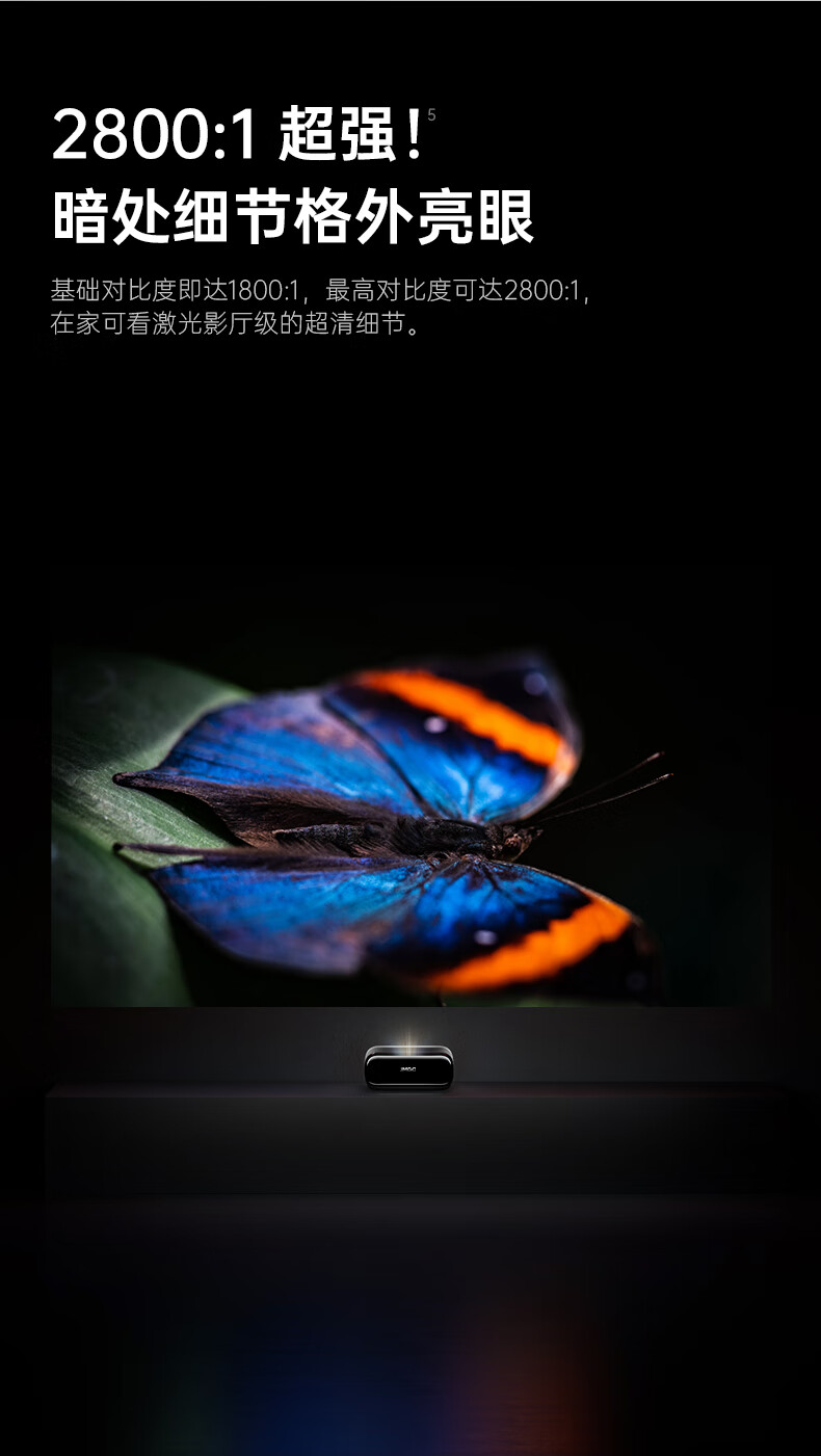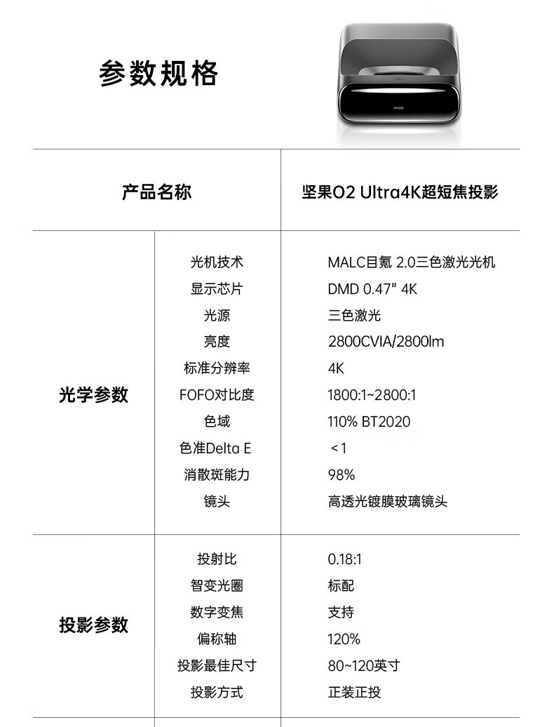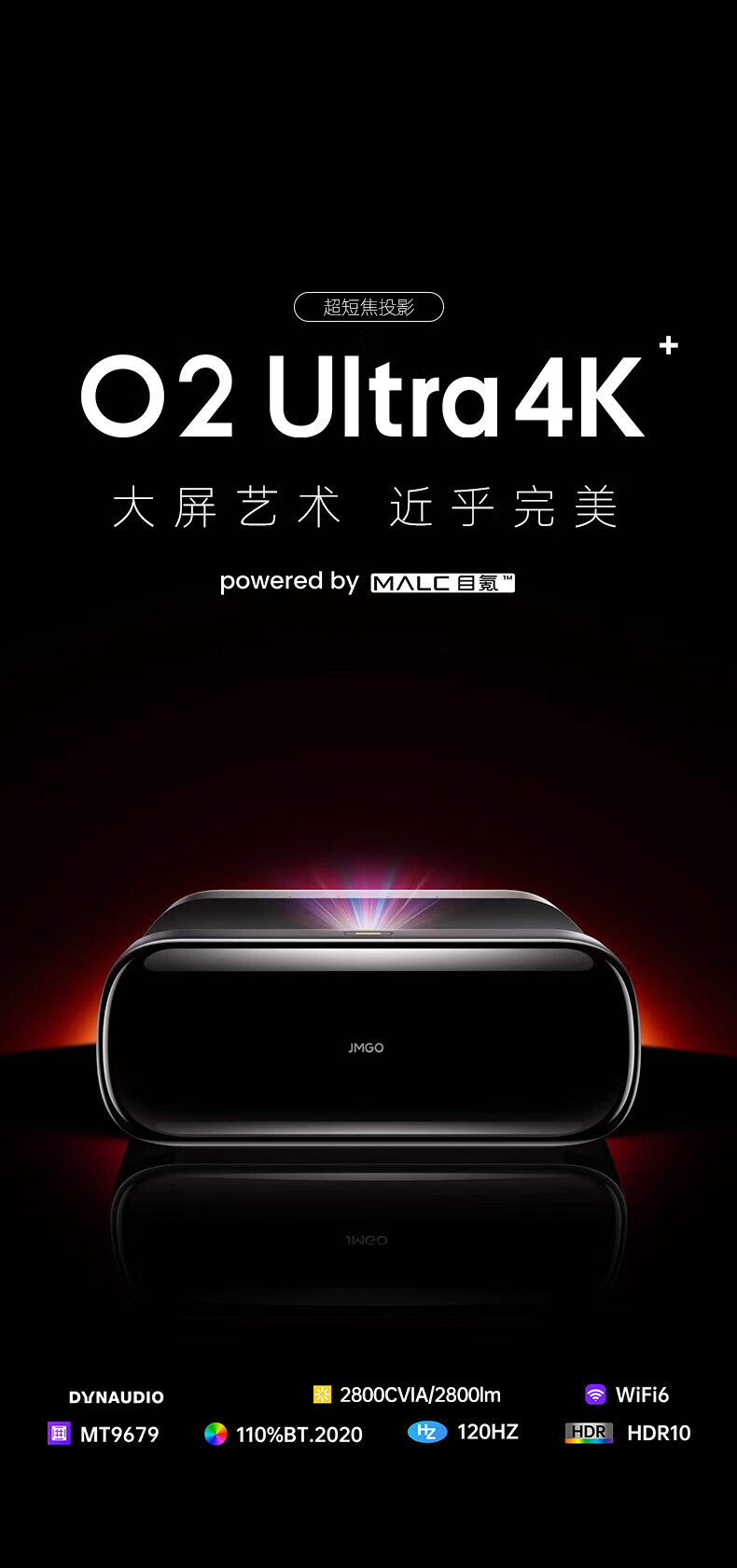 坚果投影(JMGO)O2 Ultra 4K超高清超短焦三色激光投影仪电动微云台家用影院 (2800:1对比度)