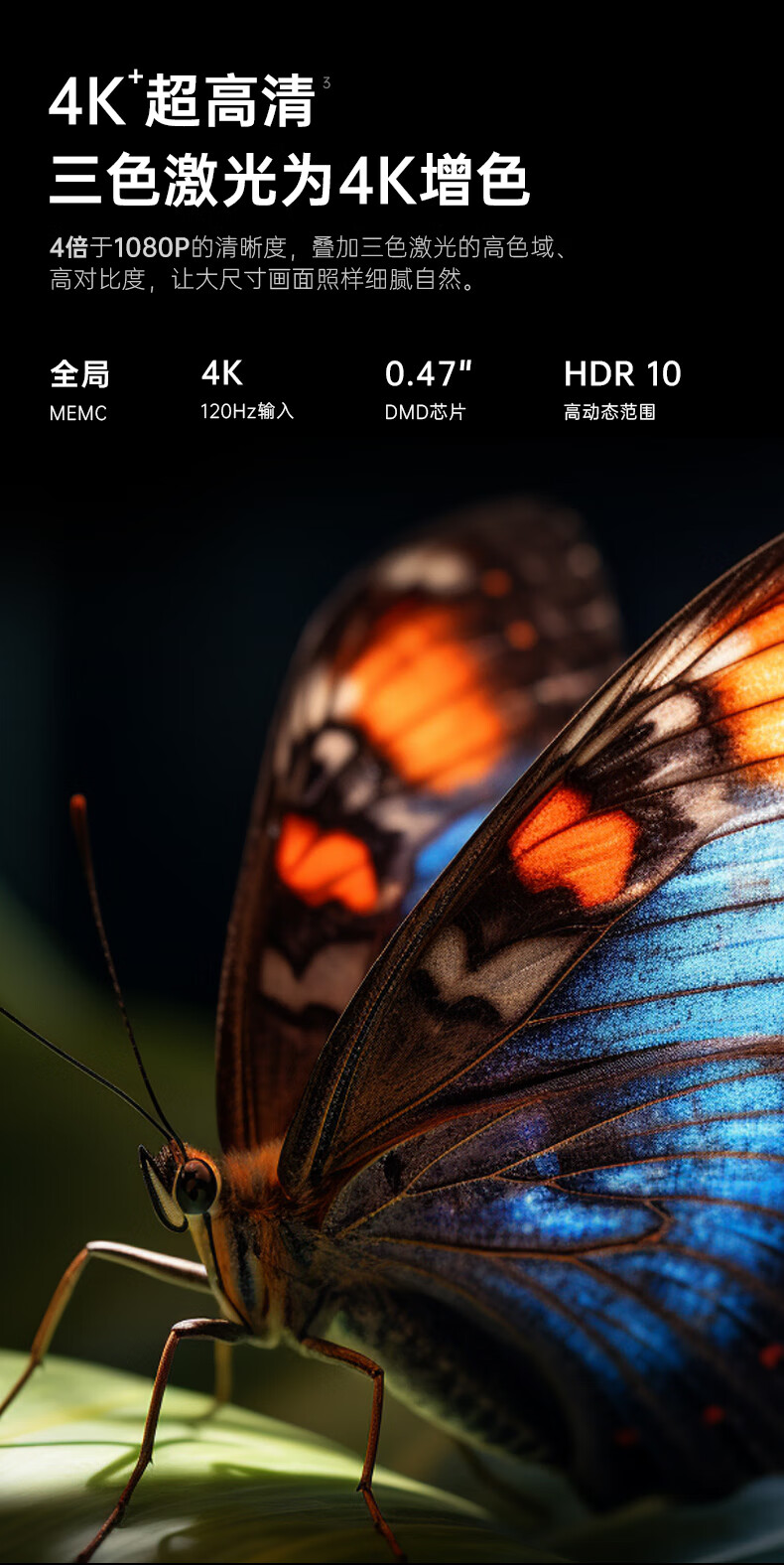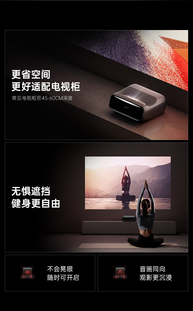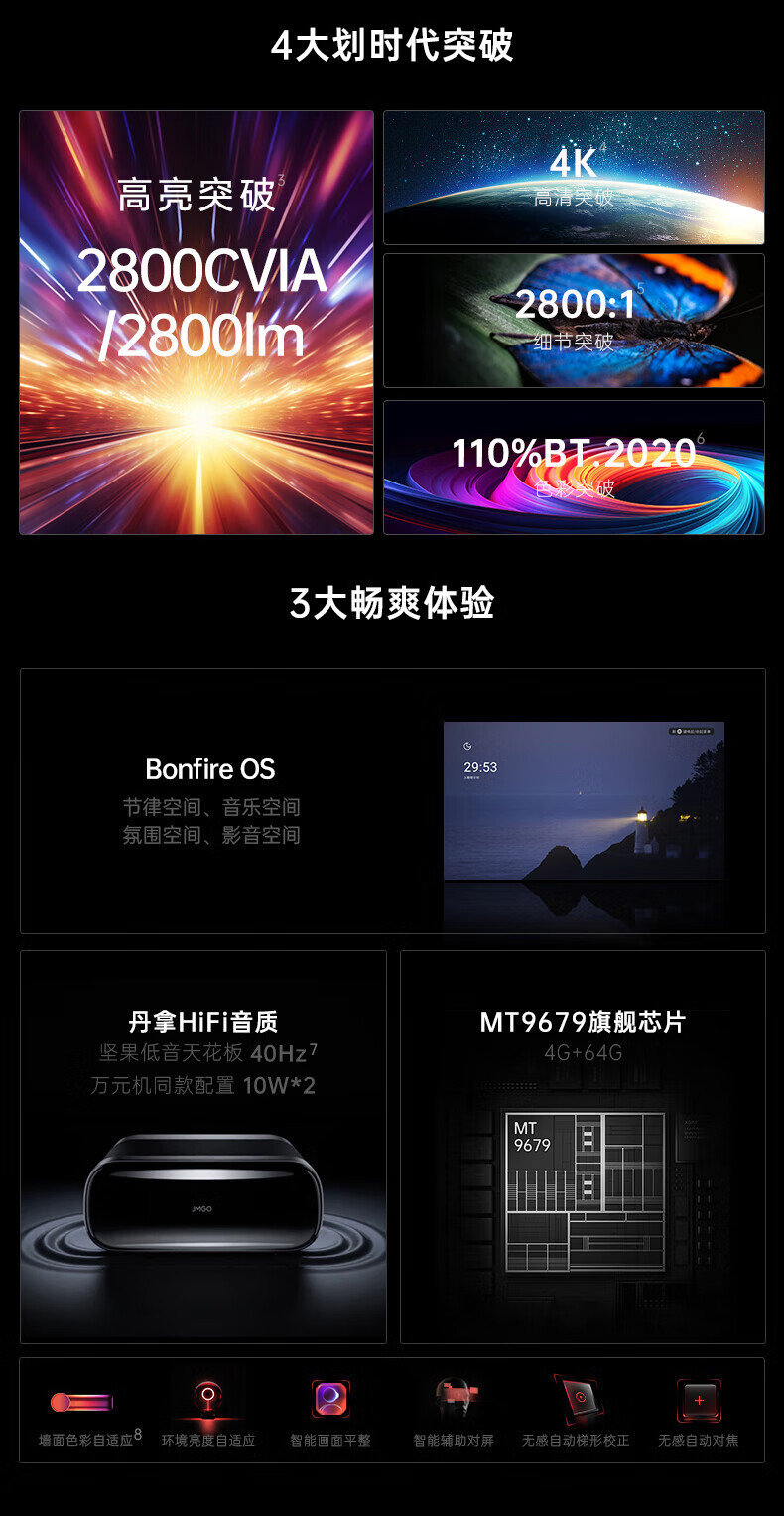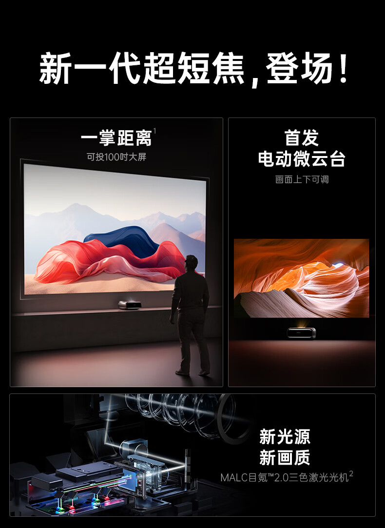 坚果投影(JMGO)O2 Ultra 4K超高清超短焦三色激光投影仪电动微云台家用影院 (2800:1对比度)