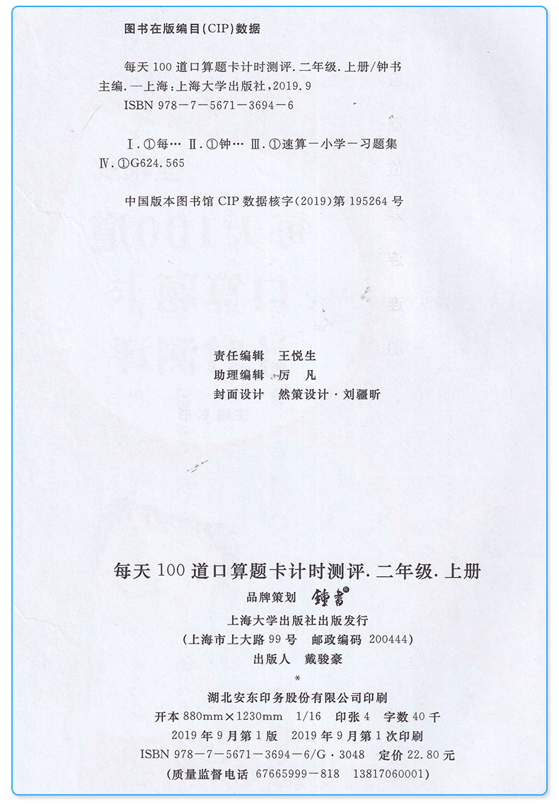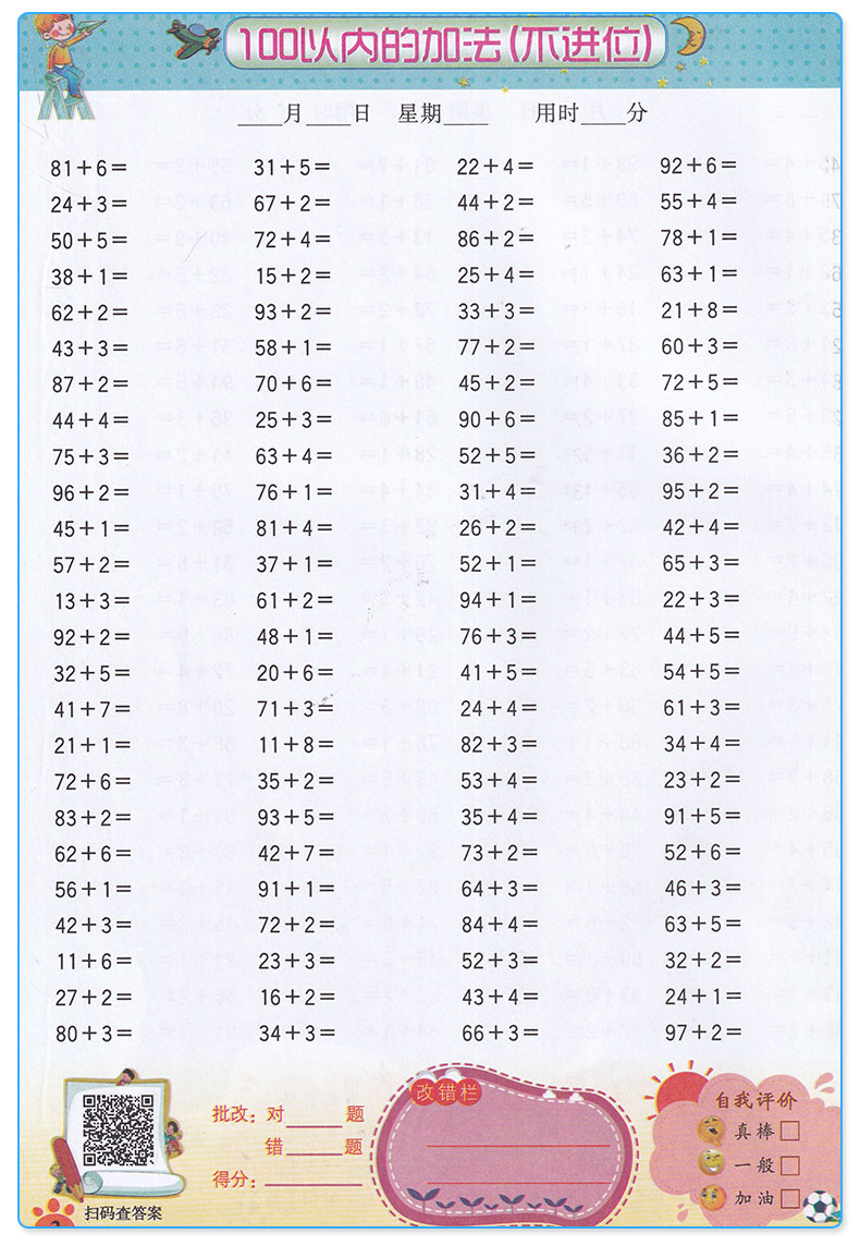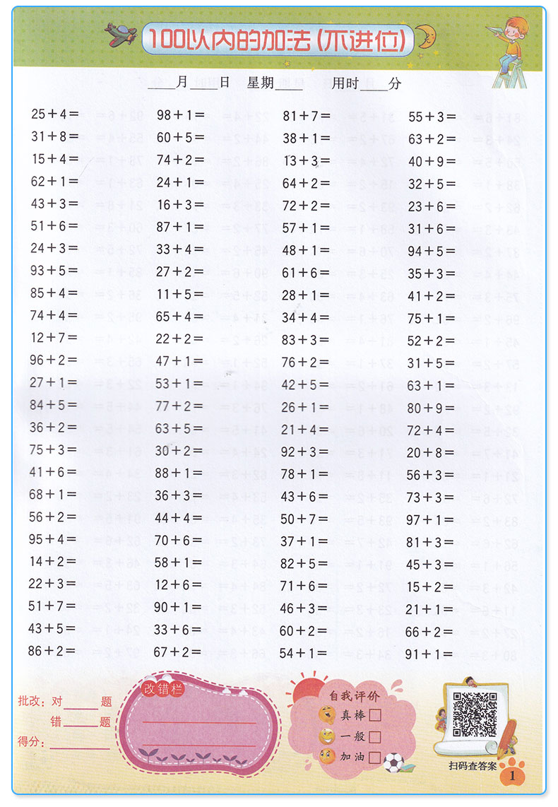 小学数学二年级上册口算题卡全横式每天100道口算题卡计时测评2年级上/第一学期同步思维专项强化训练口算心算速算加减乘除天天练