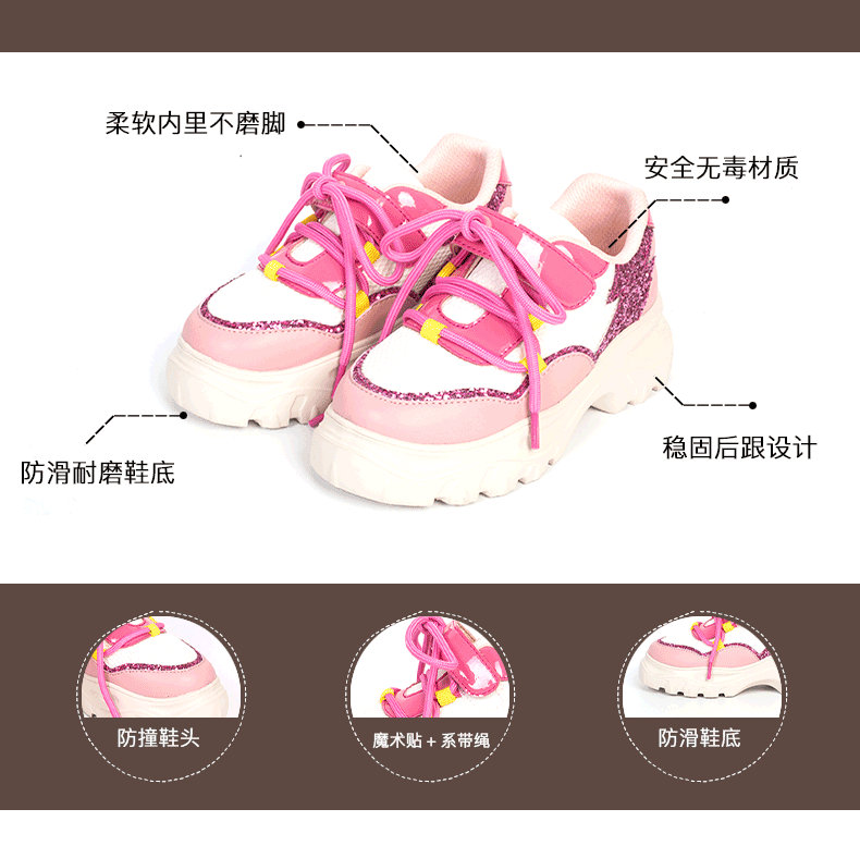 alacofly&pretty brave儿童老爹鞋秋新款女童四季休闲运动鞋