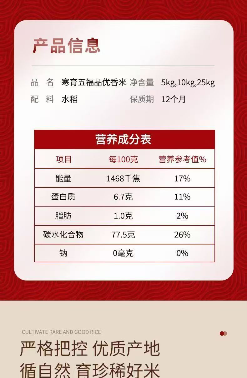 五常 寒育1981五福品优香米5kg/袋【FY】