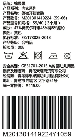 棉果果夏季男童女童内衣对开连体衣连身衣哈衣66-73尺码挖裆80-90尺码闭裆款M201723218232