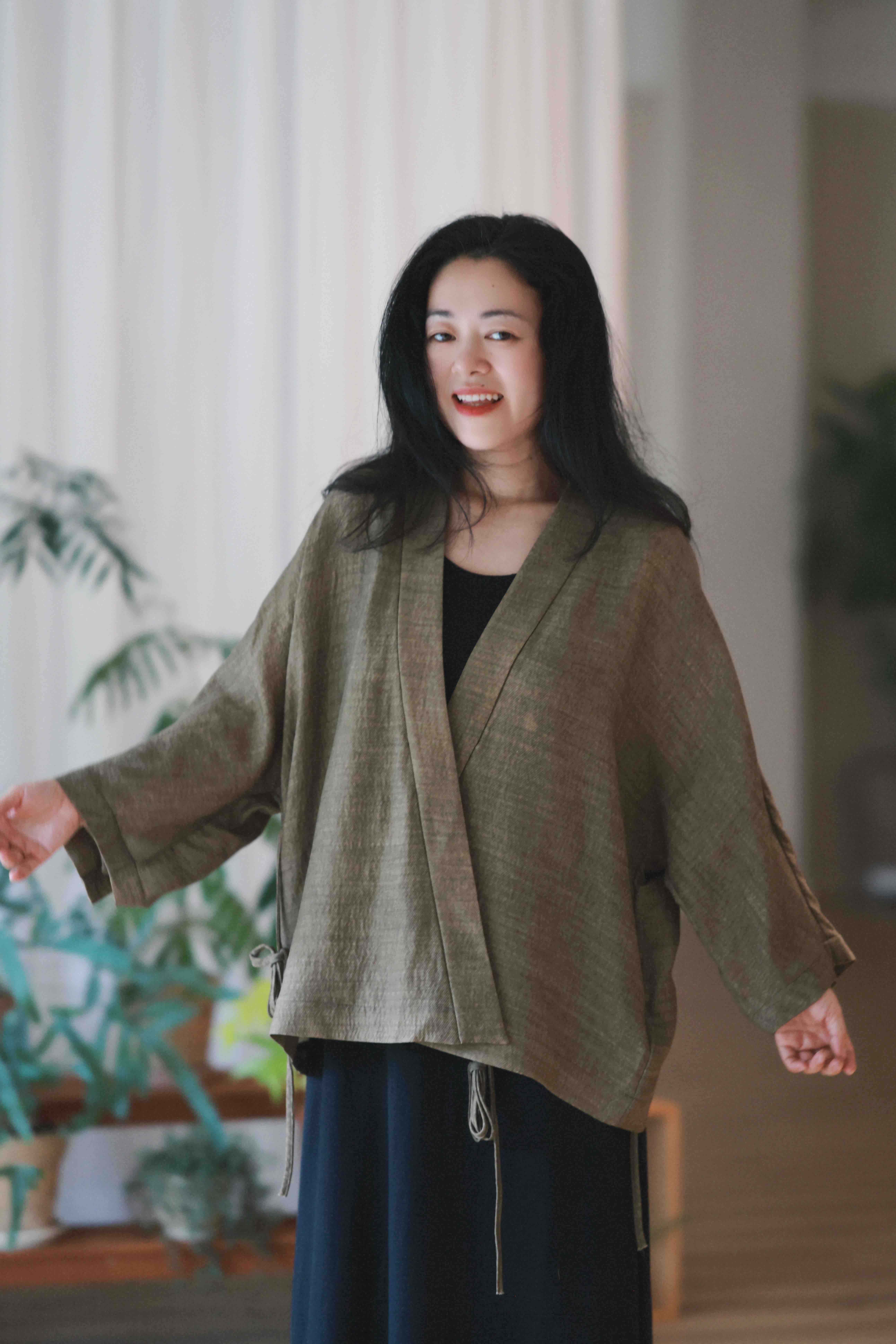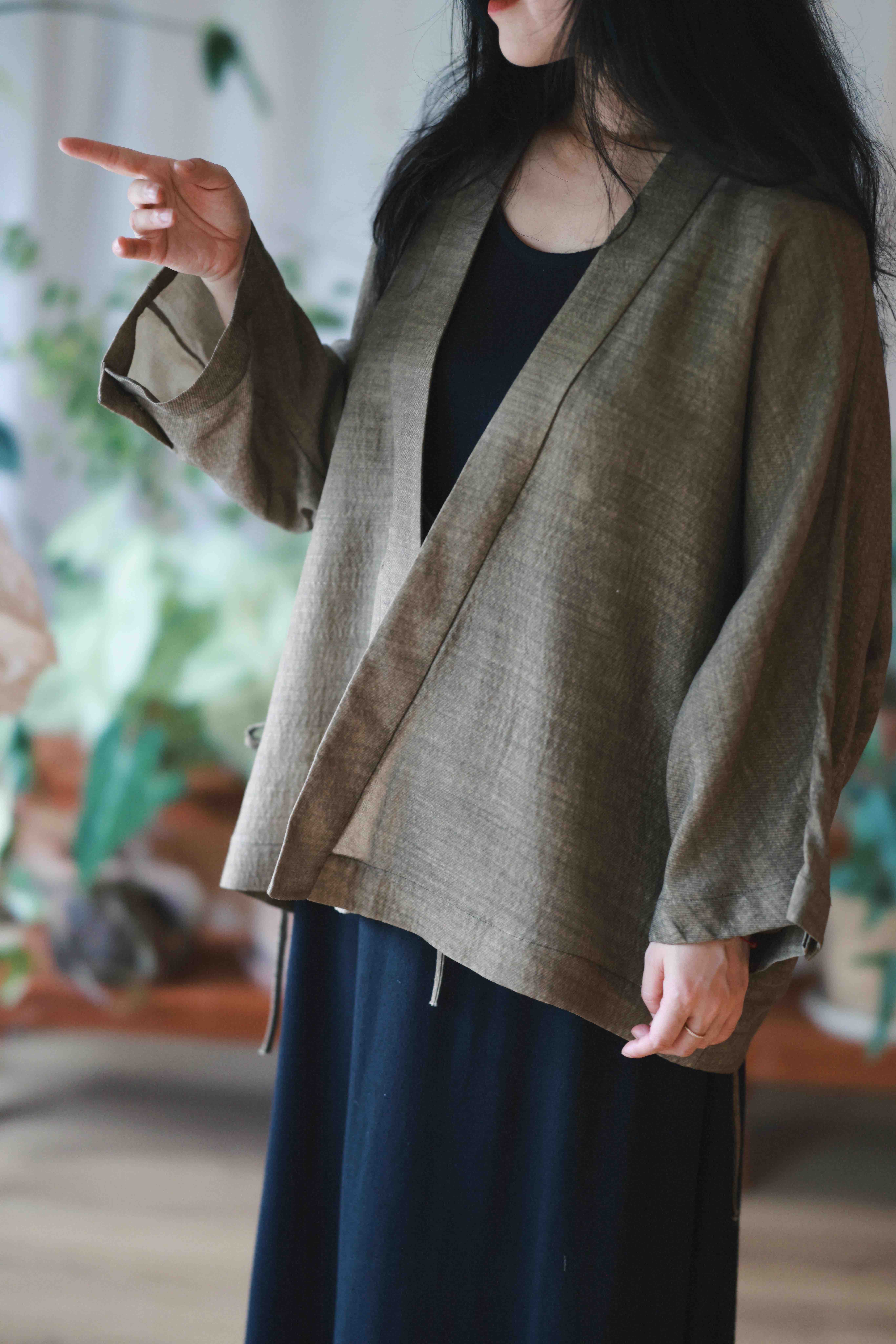 黄阿福 羊毛亚麻经典双口袋连衣裙