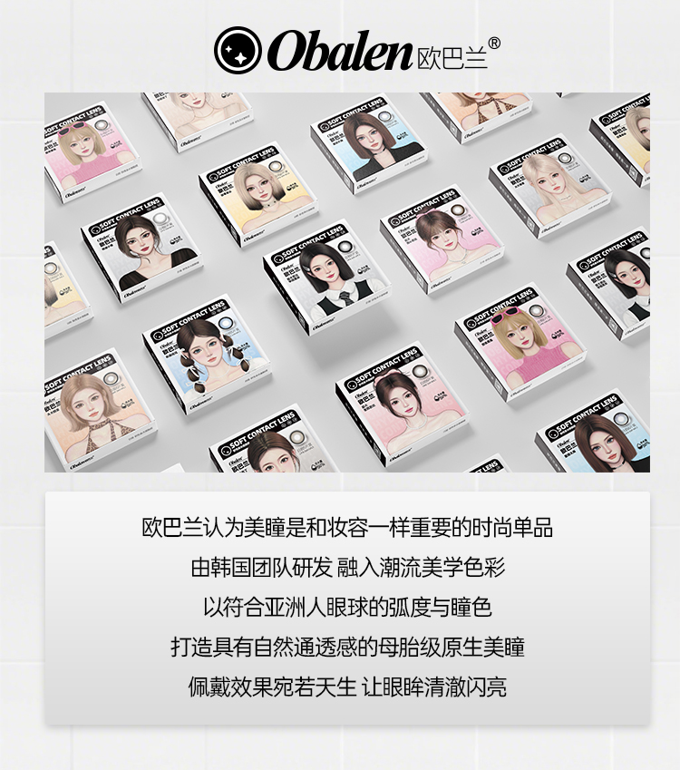 新品【元气少女系列日抛】Obalen欧巴兰百搭自然美瞳网红款高分子玻尿酸日抛合集隐形近视眼镜6片装