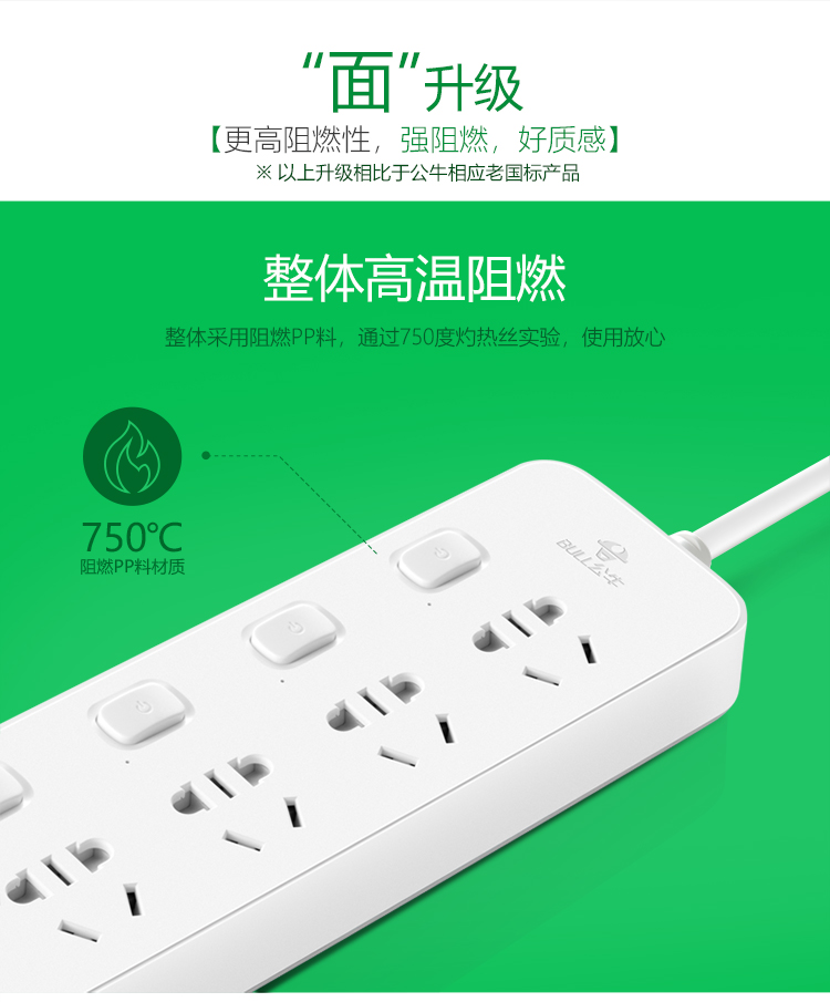 公牛(BULL)新国标分控插座/插线板/插排/排插/接线板/拖线板 GN-B3043 4位分控全长3米 独立开关