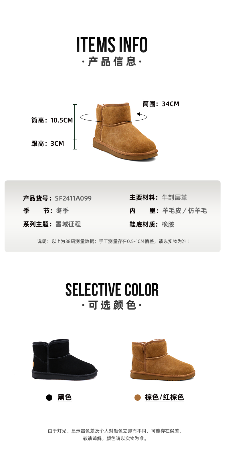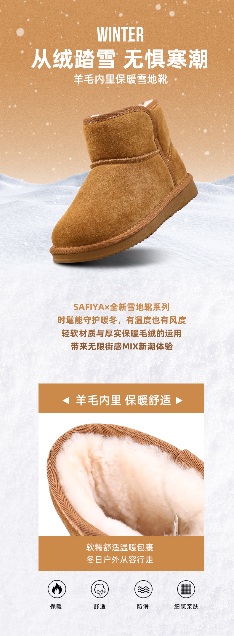 Safiya/索菲娅 女鞋2022冬季新款户外棉鞋厚底防滑加厚保暖雪地靴 SF2411A099