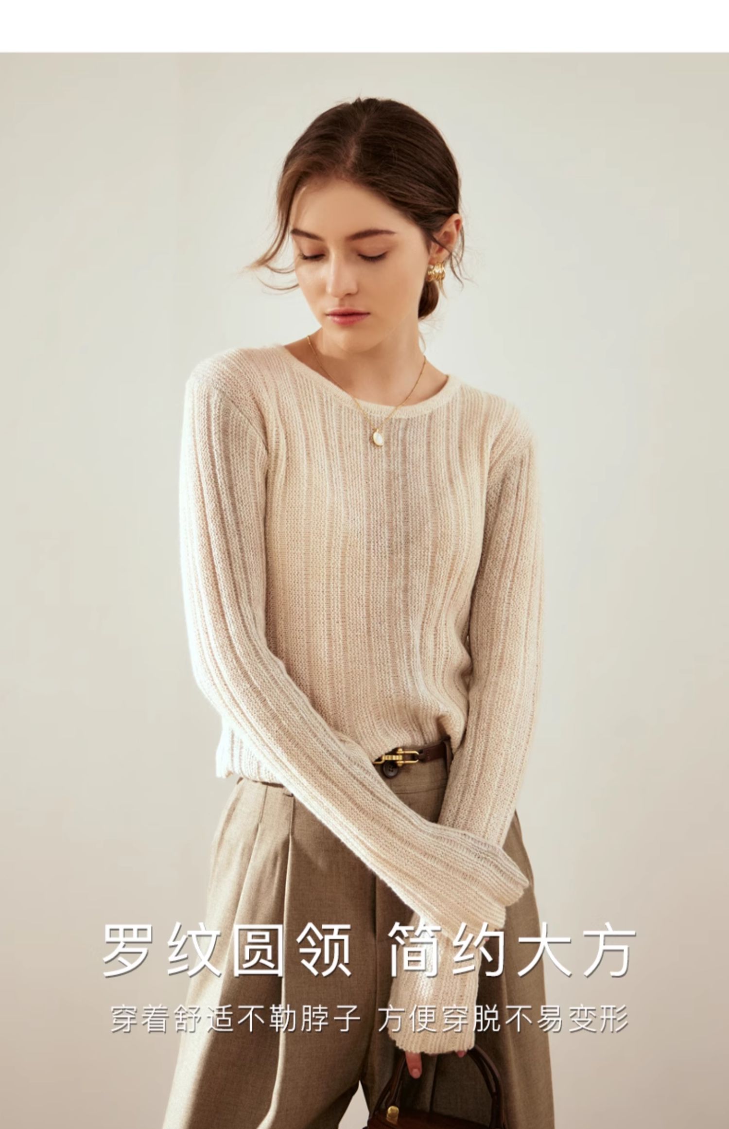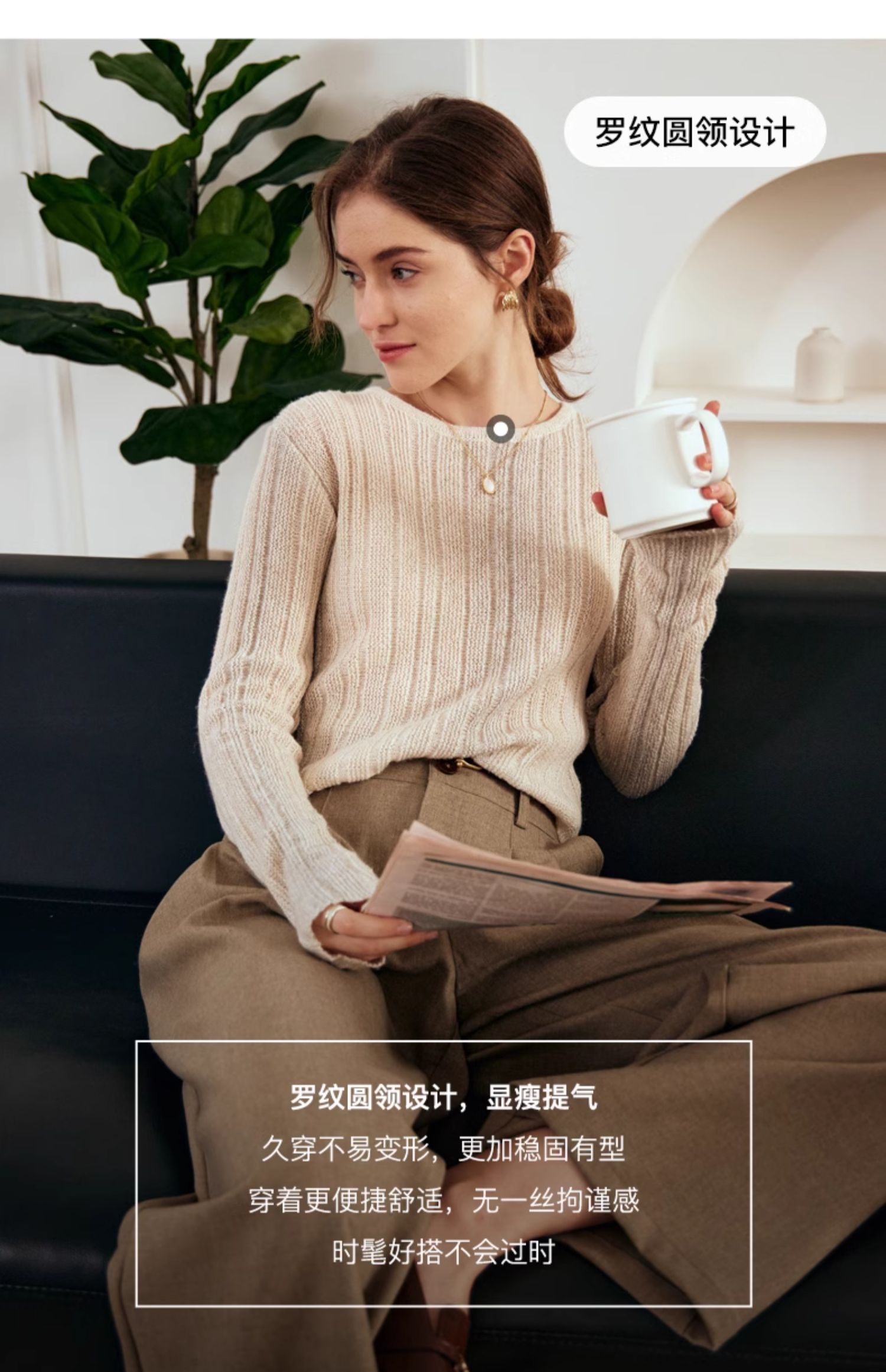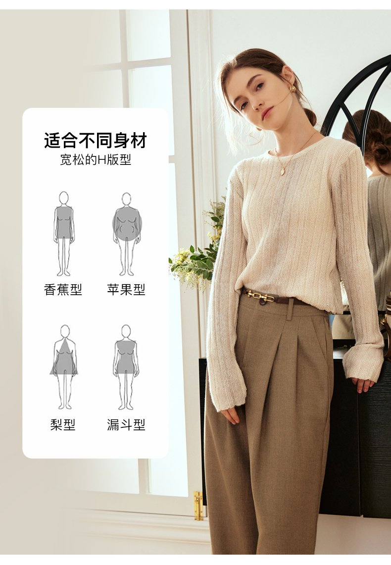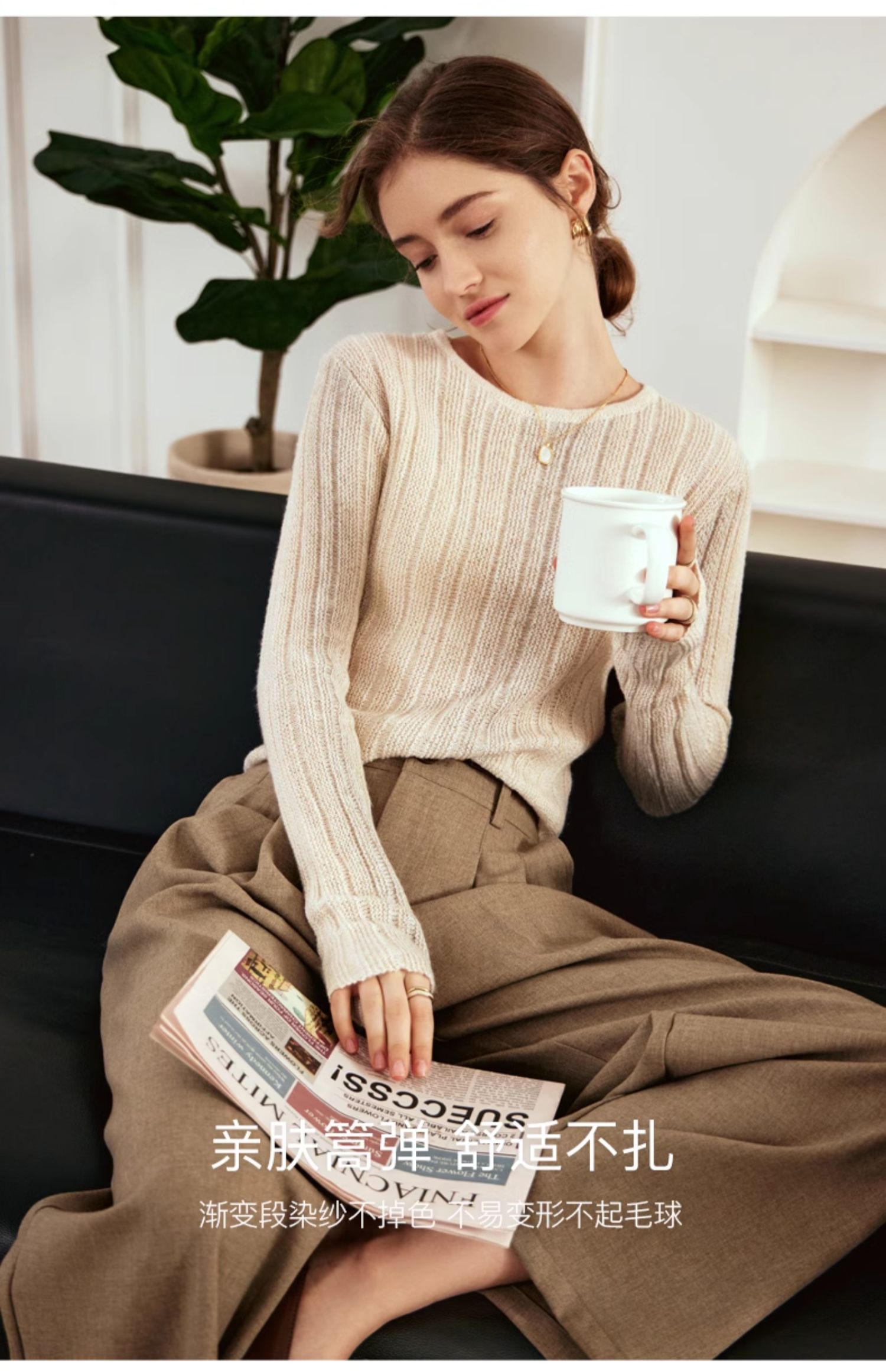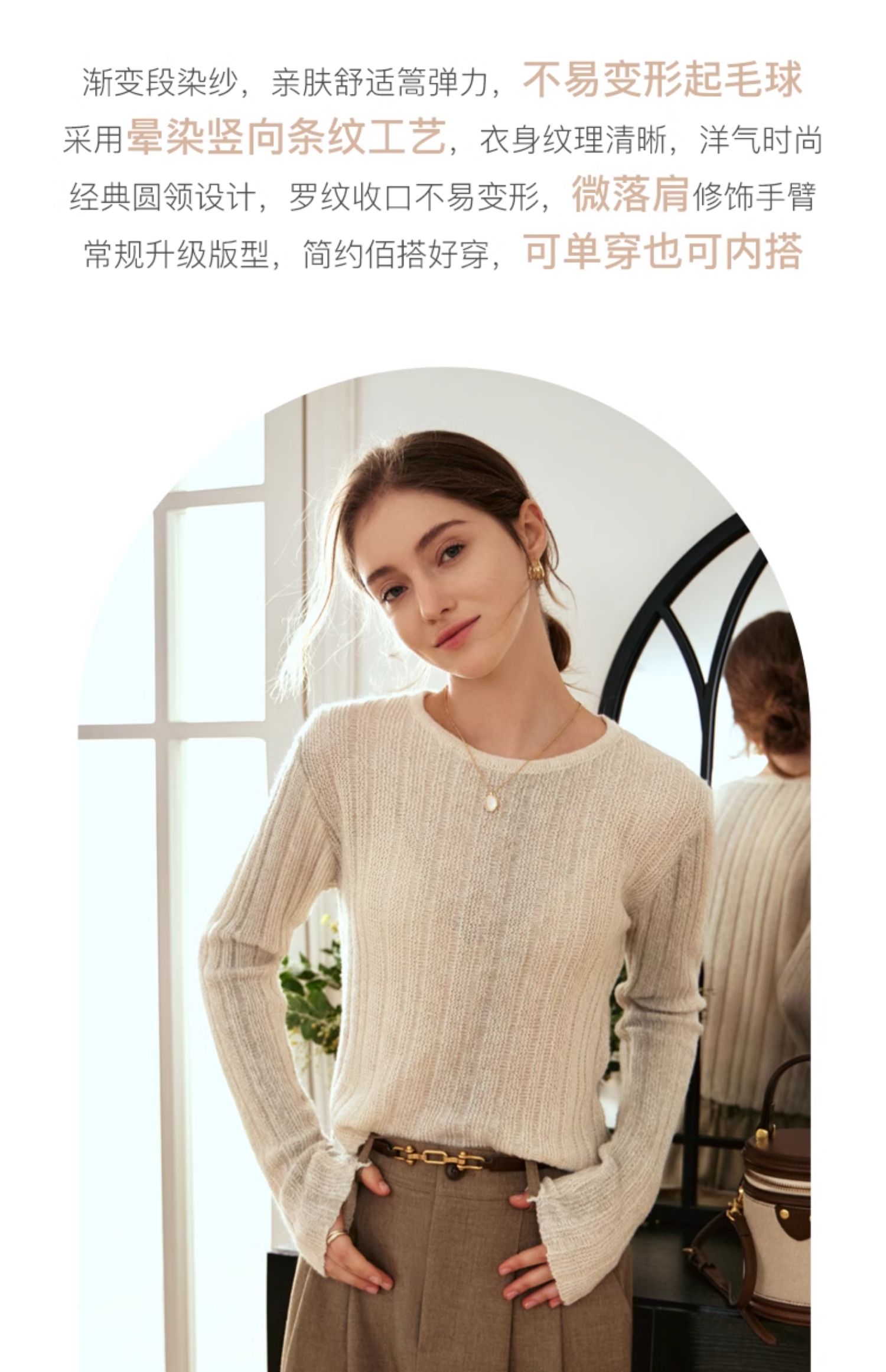 OLrain欧芮儿杏色针织衫女秋冬2023新款简约百搭显瘦晕染套头长袖
