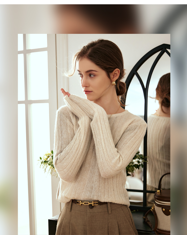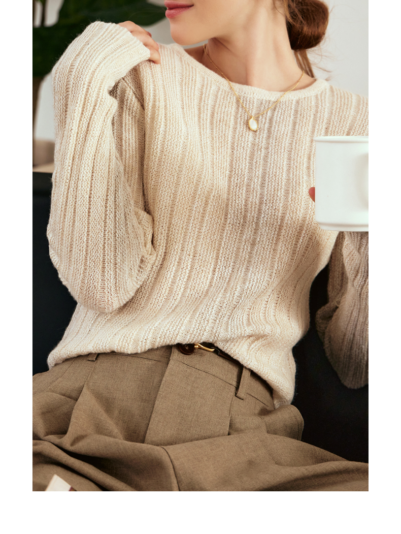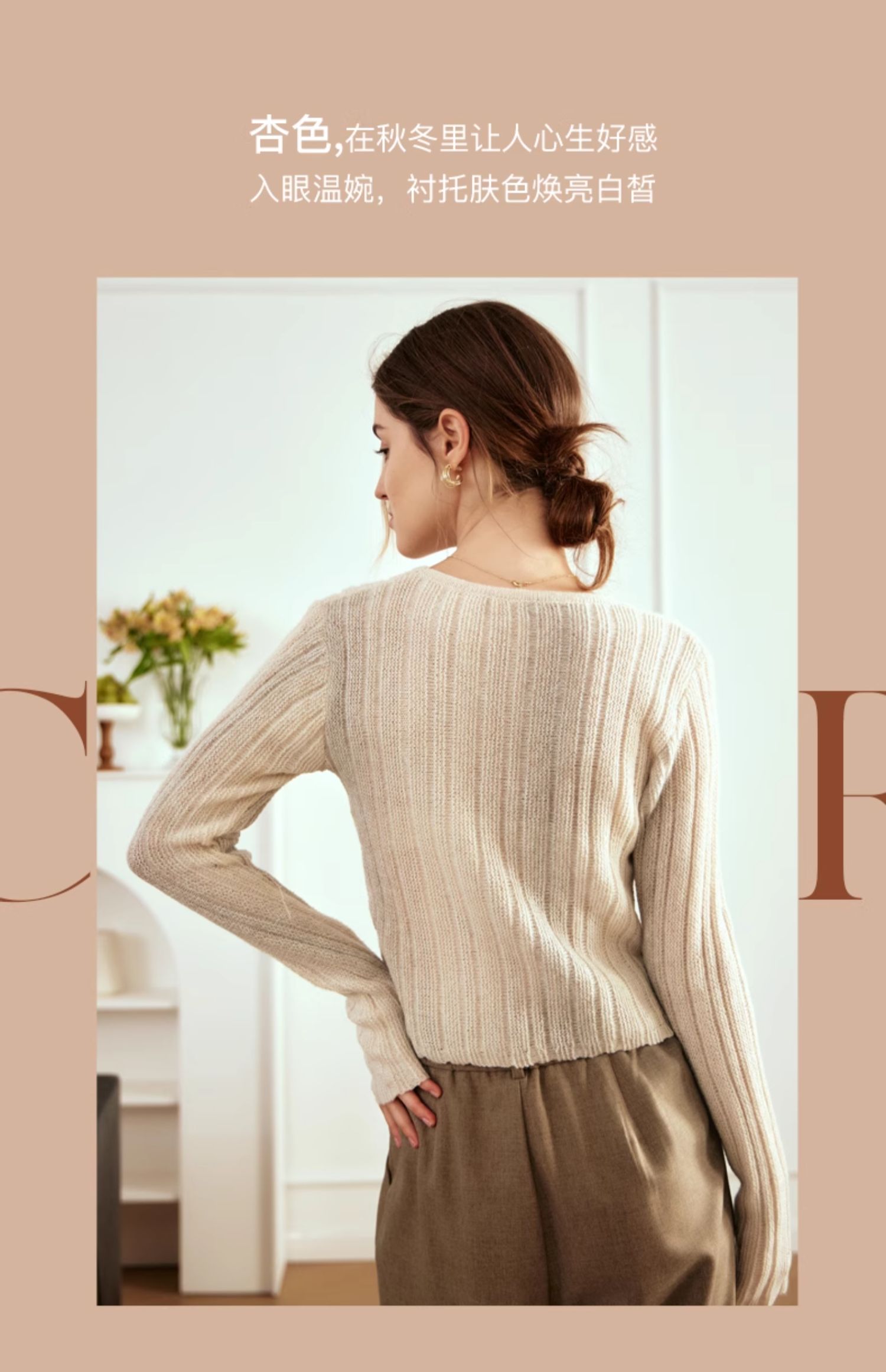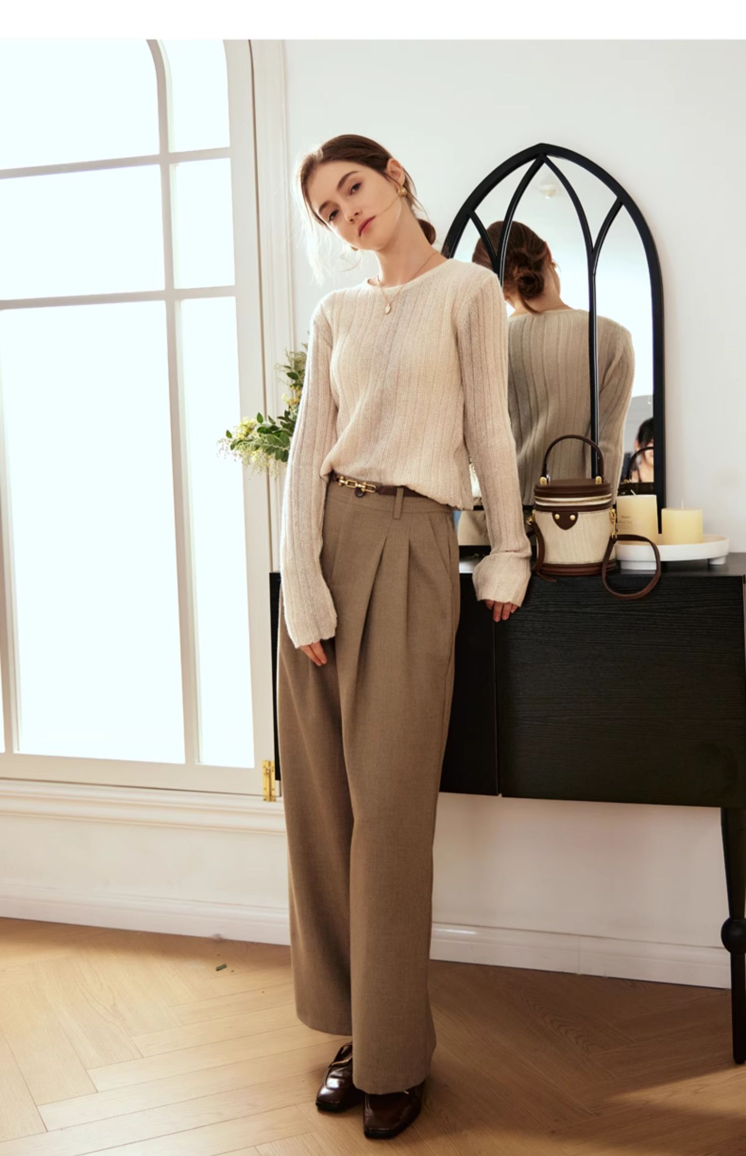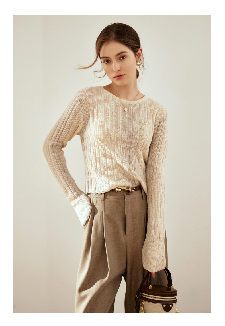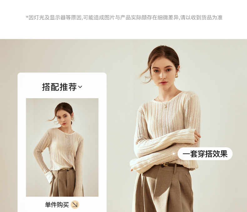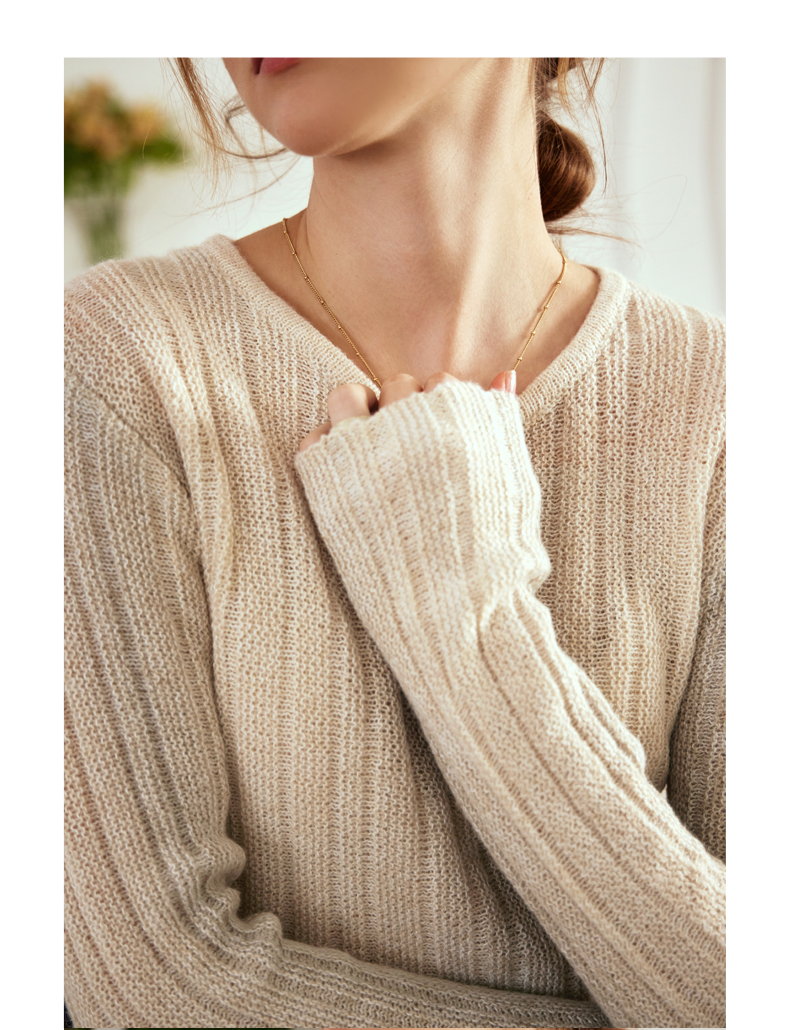 OLrain欧芮儿杏色针织衫女秋冬2023新款简约百搭显瘦晕染套头长袖
