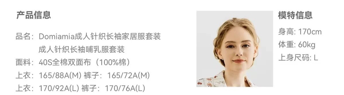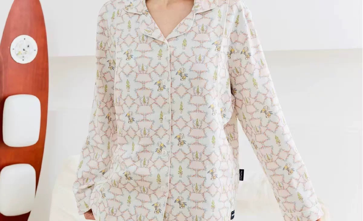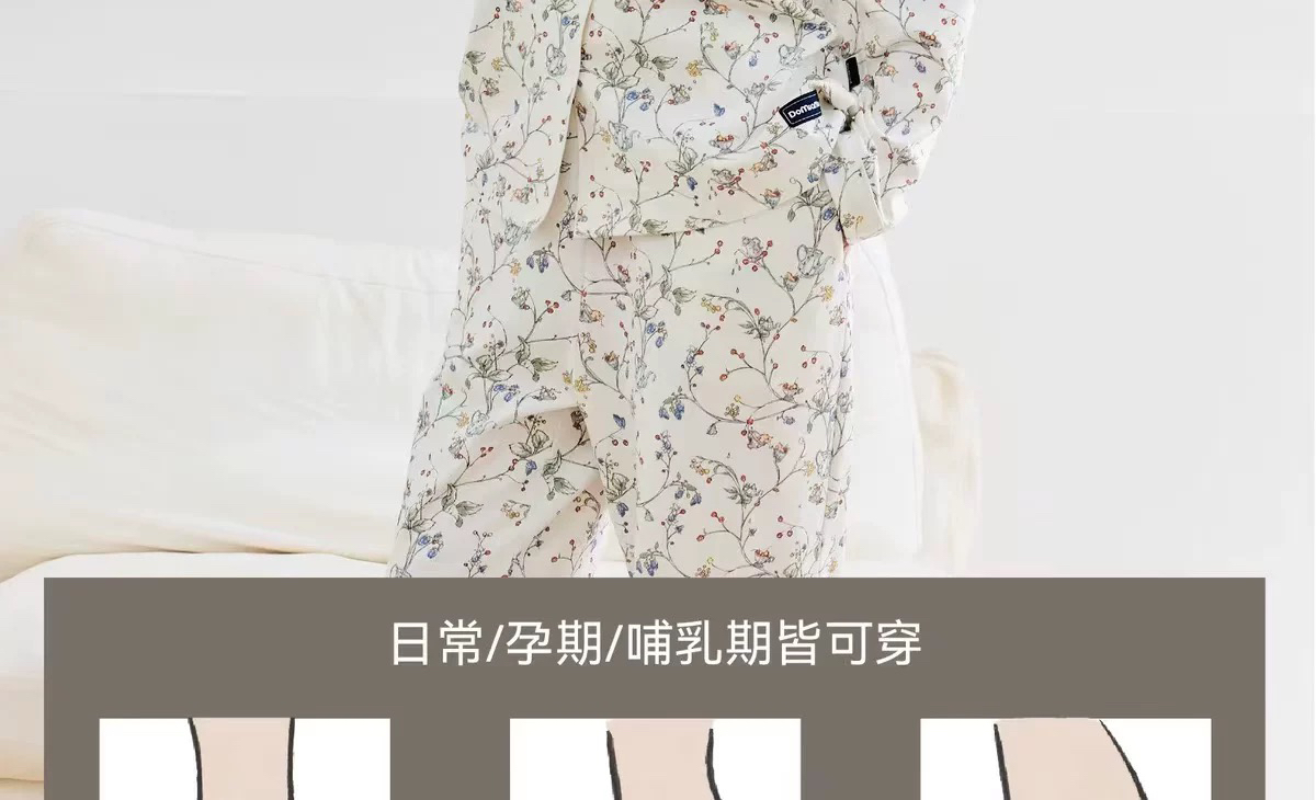 Domiamia 孕妇睡衣 成人纱布长袖套装(无哺乳口)家居服套装