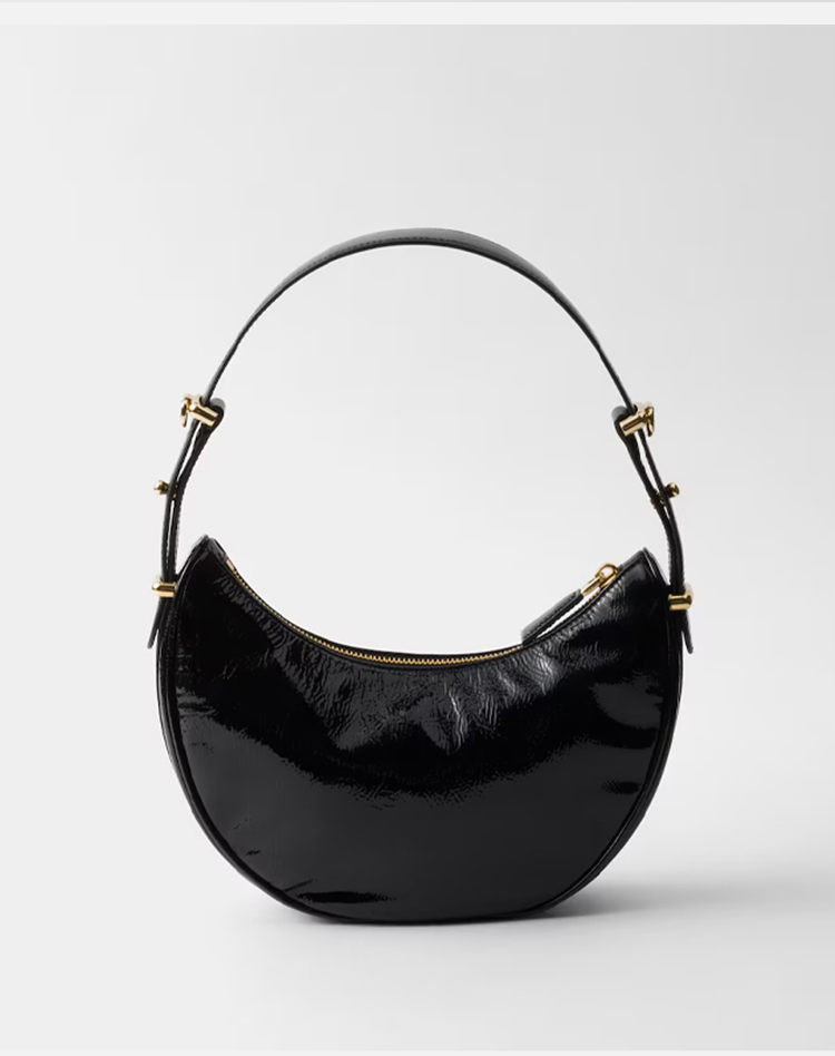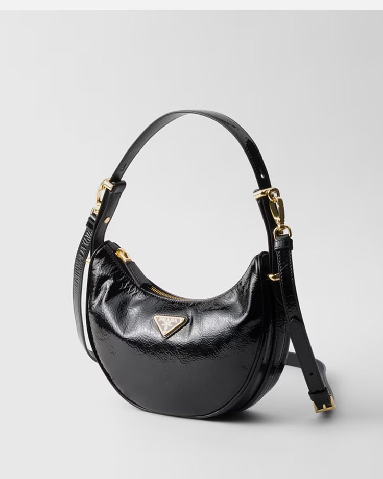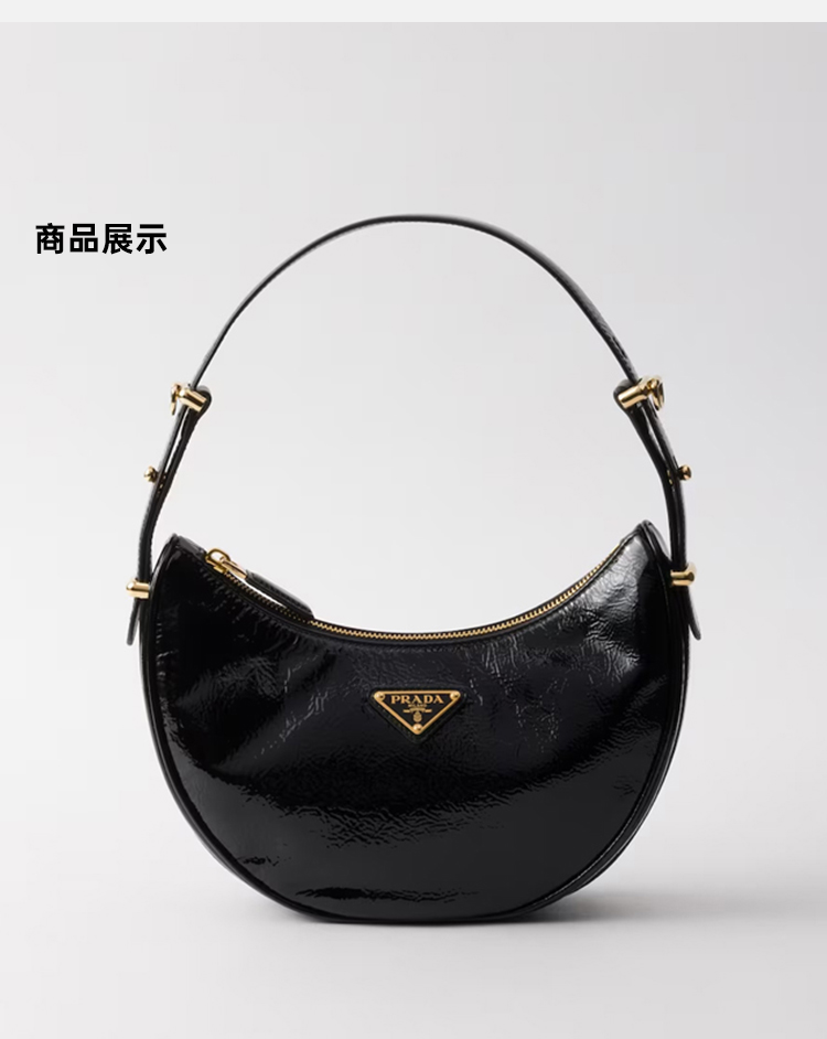 PRADA 普拉达 女士珐琅金属三角徽标 Arqué naplak 漆皮单肩包 黑色 1BC194 2DNT F0002 OOO