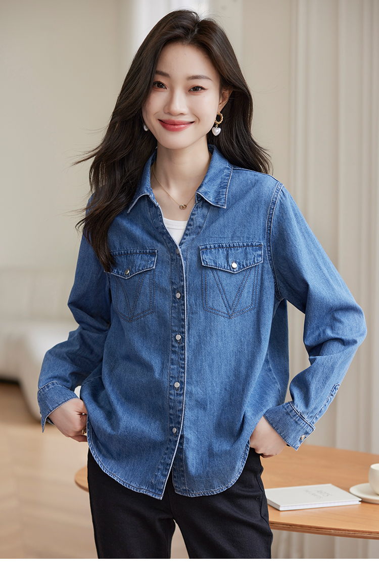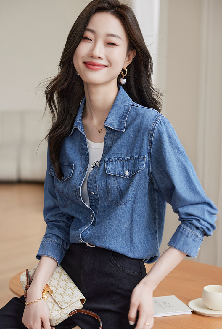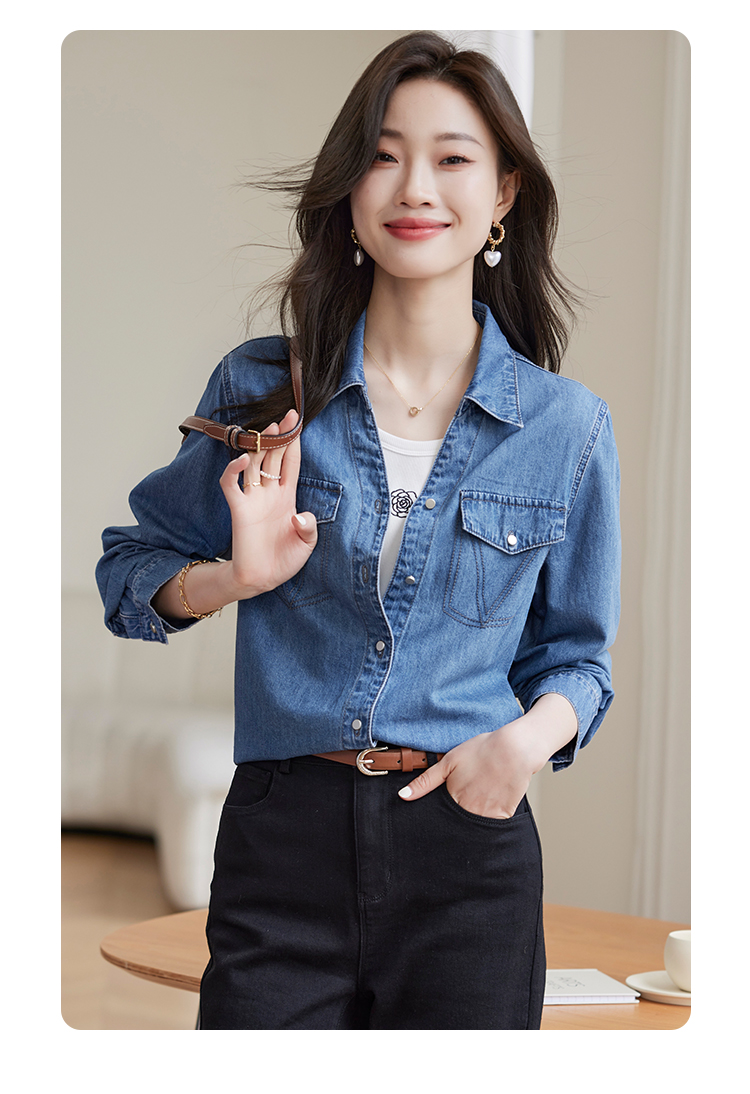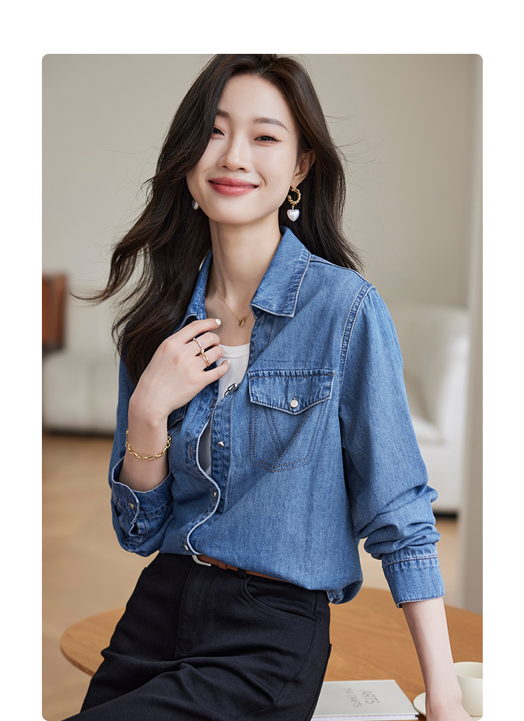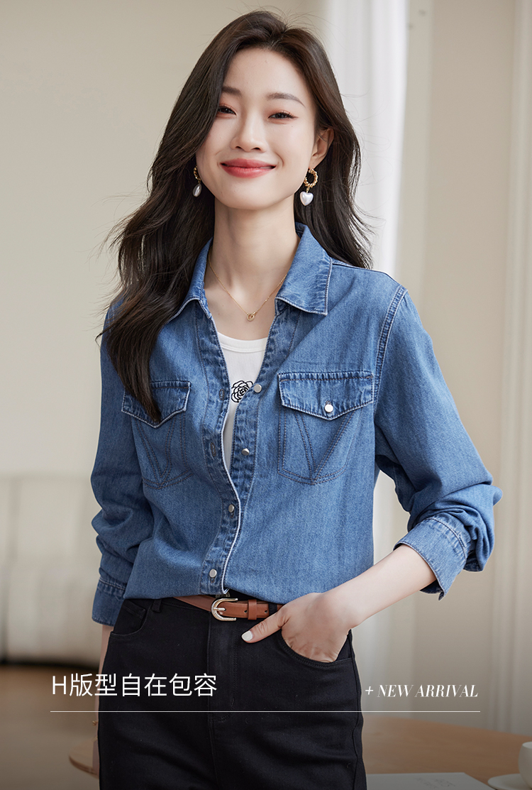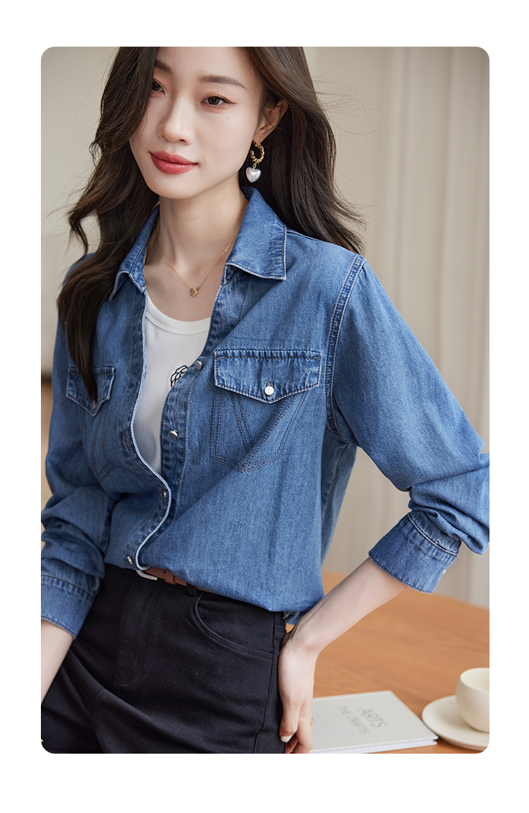 【129选3件,不退换】熙世界复古纯棉牛仔衬衫女秋秋2025新款通勤百搭休闲长袖衬衣上衣