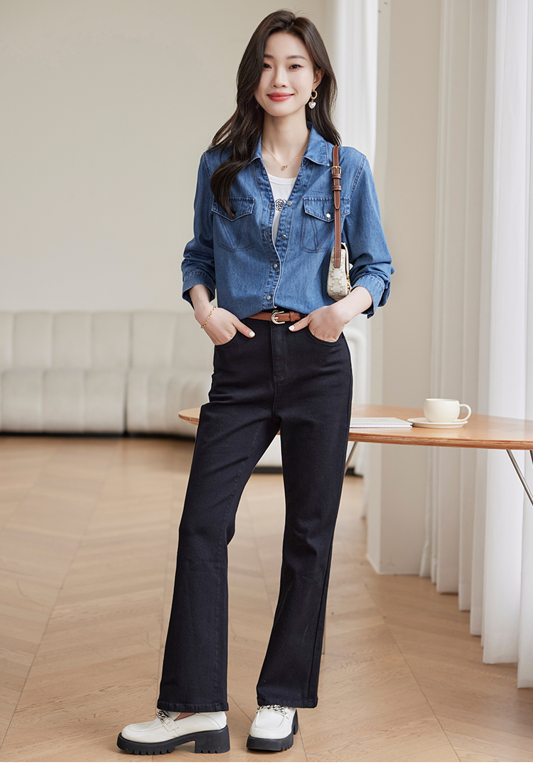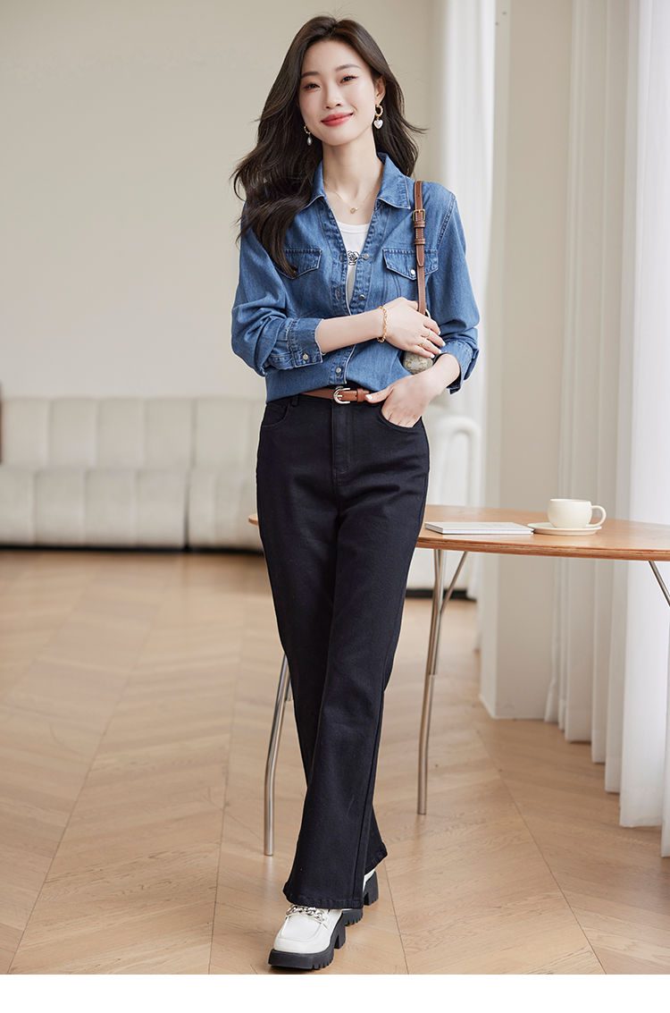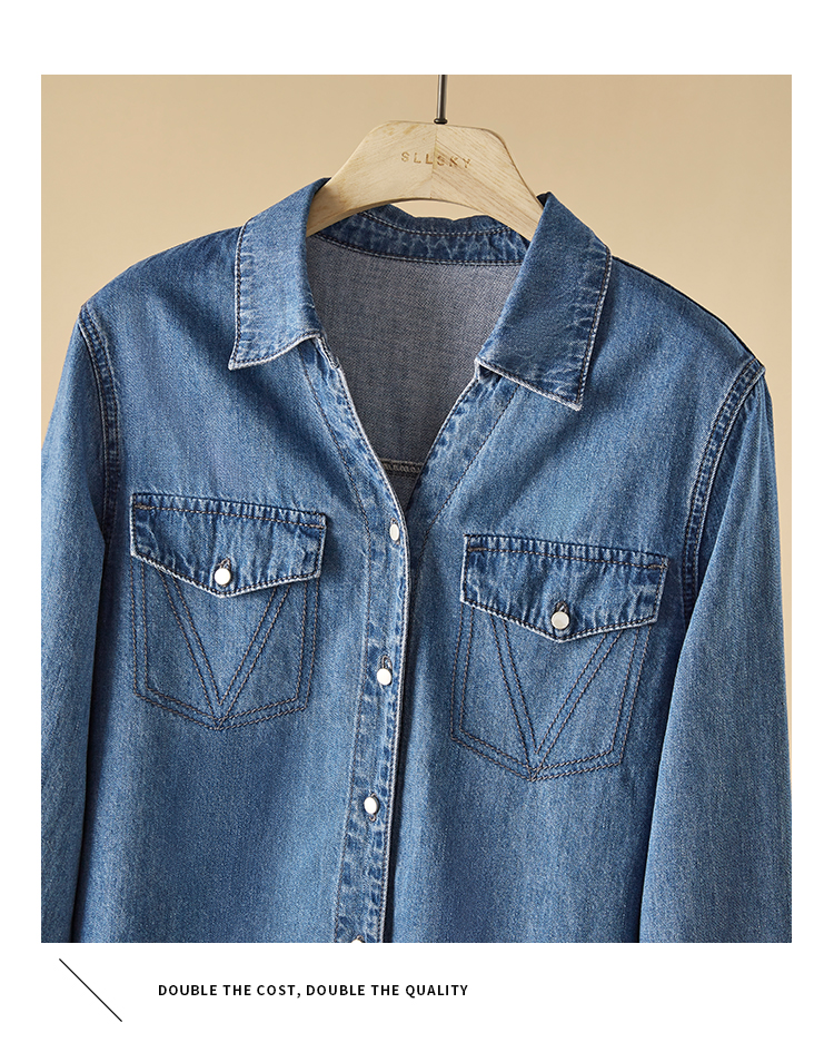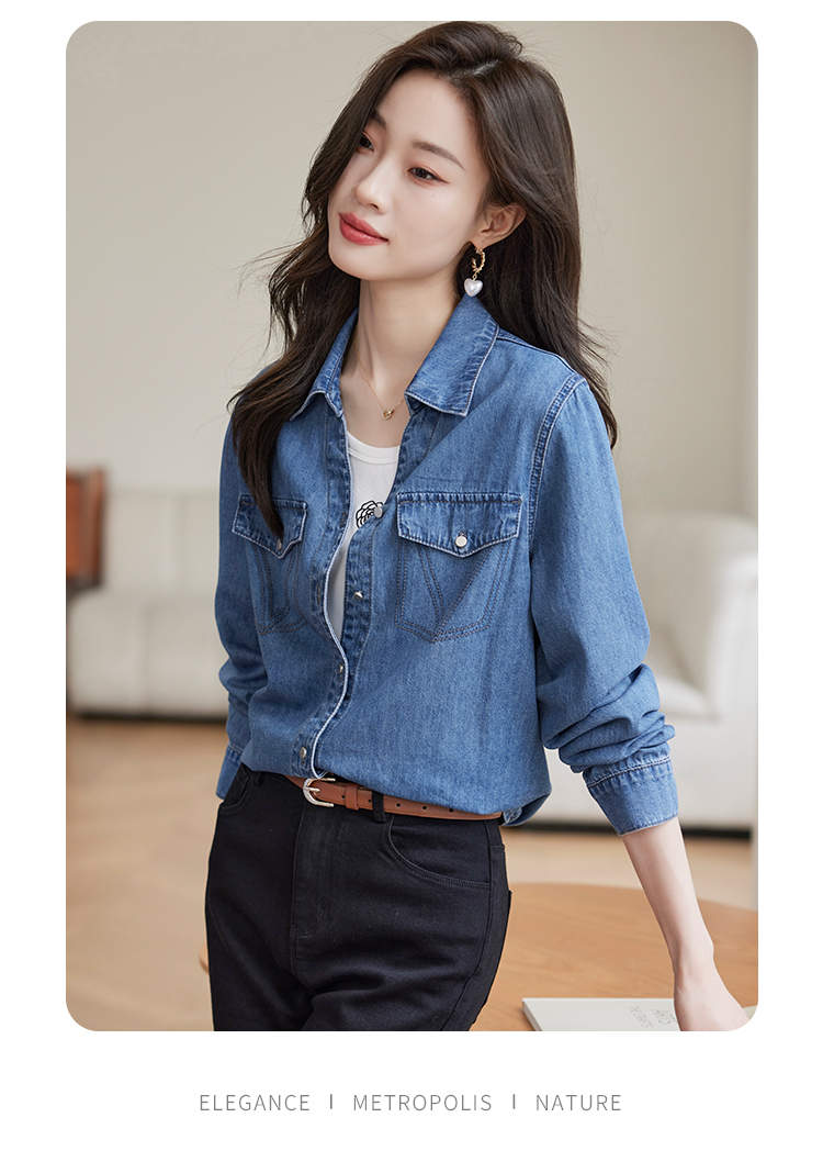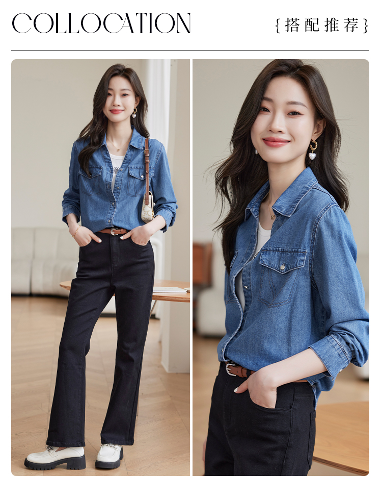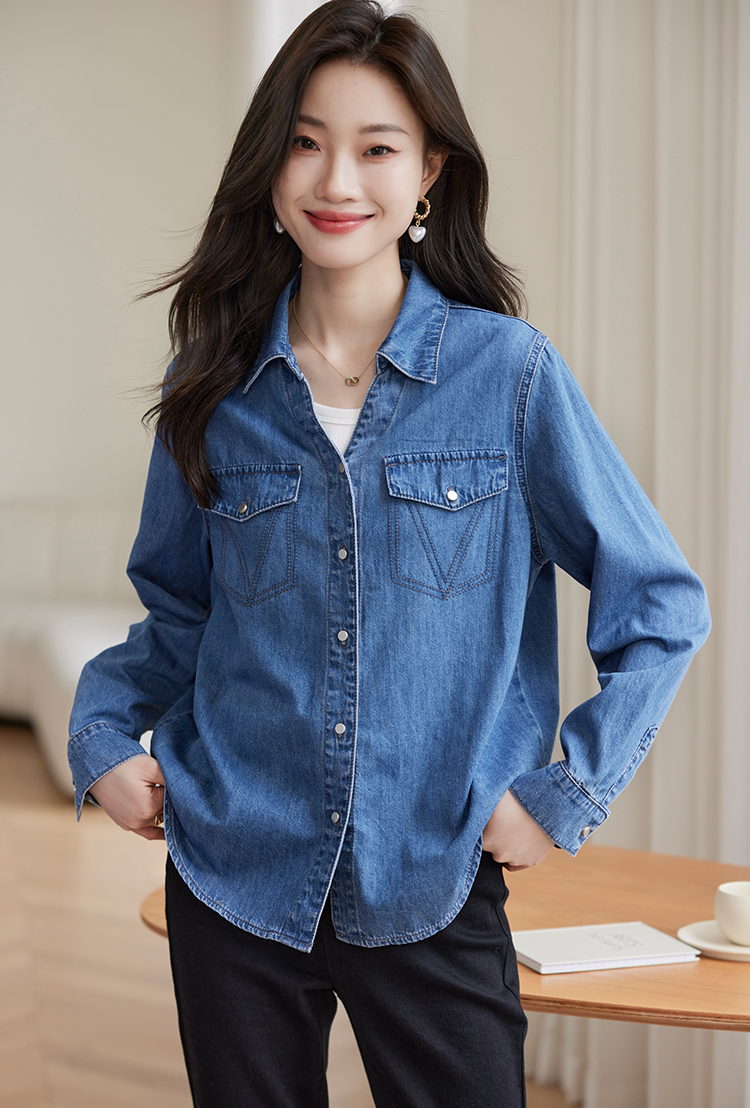 【129选3件,不退换】熙世界复古纯棉牛仔衬衫女秋秋2025新款通勤百搭休闲长袖衬衣上衣
