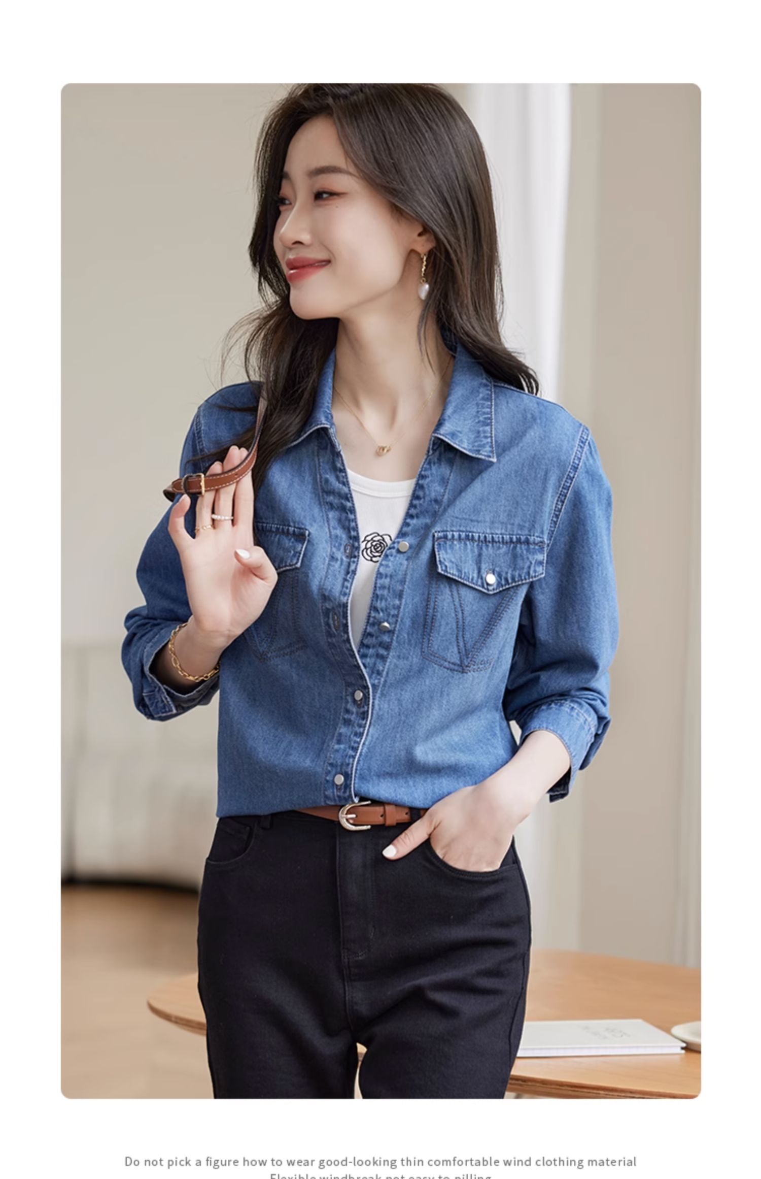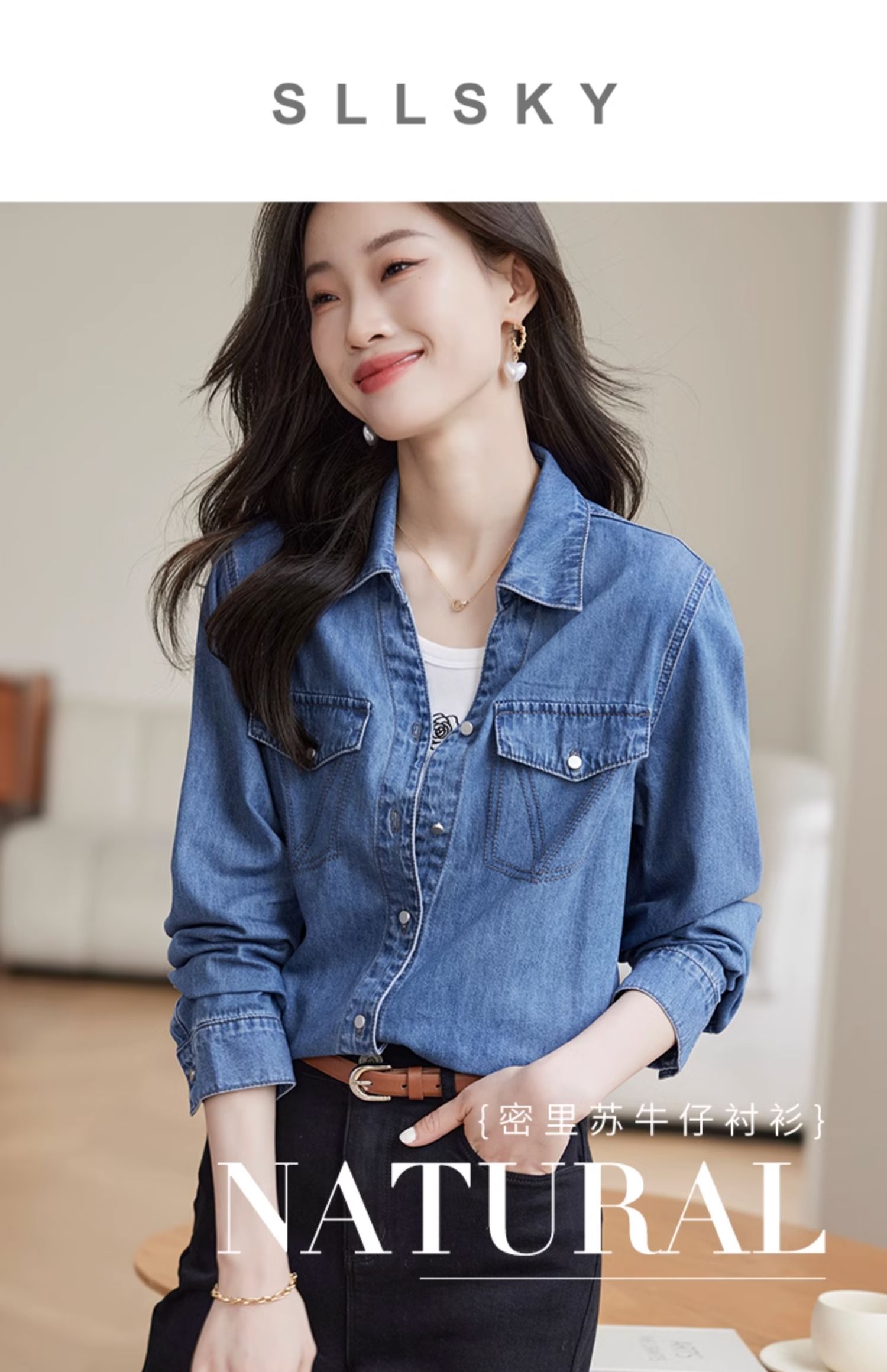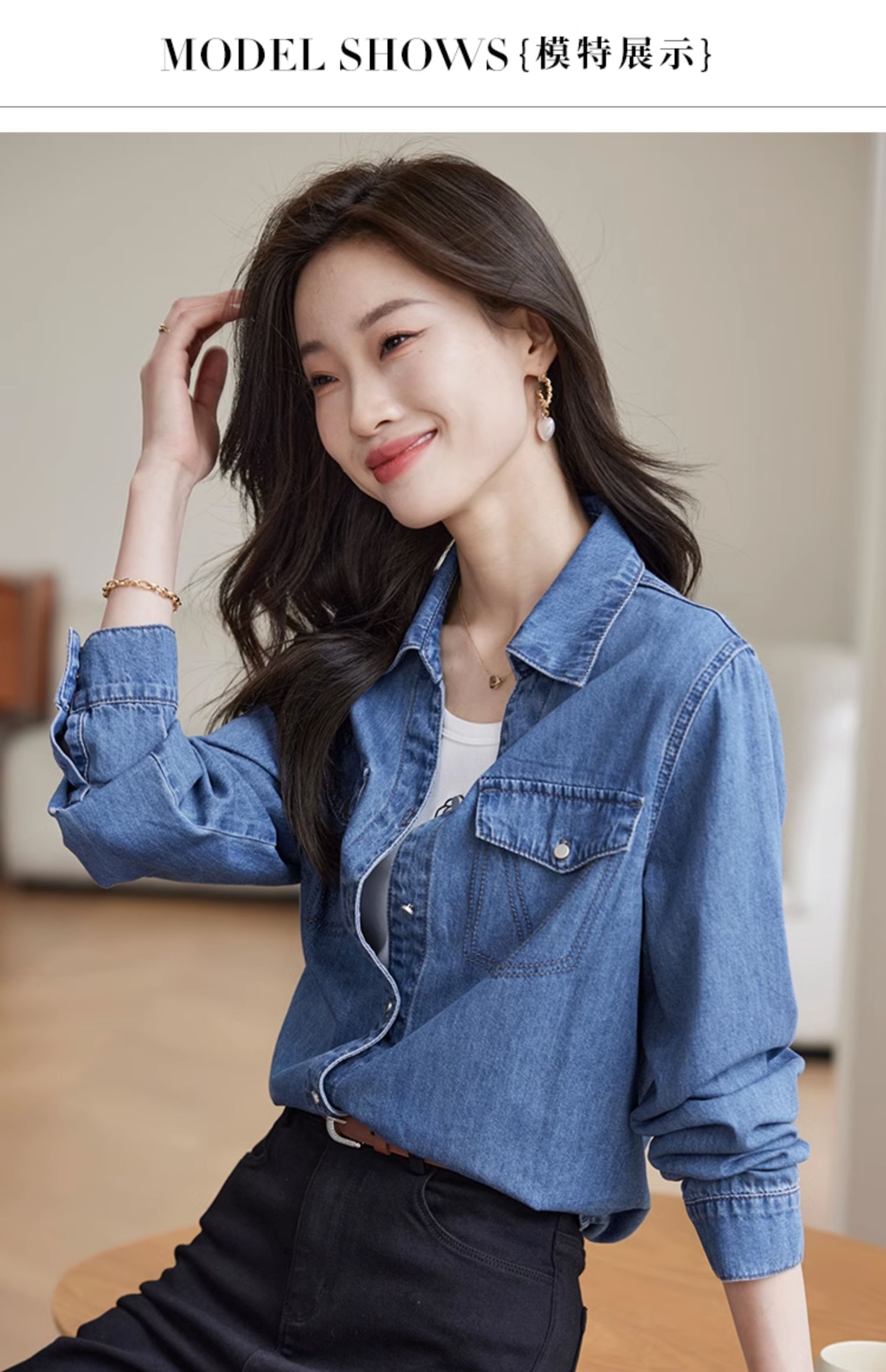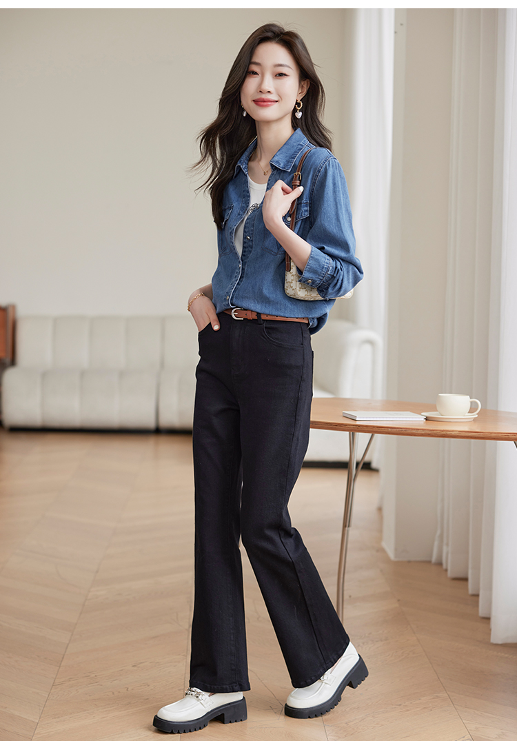 【129选3件,不退换】熙世界复古纯棉牛仔衬衫女秋秋2025新款通勤百搭休闲长袖衬衣上衣