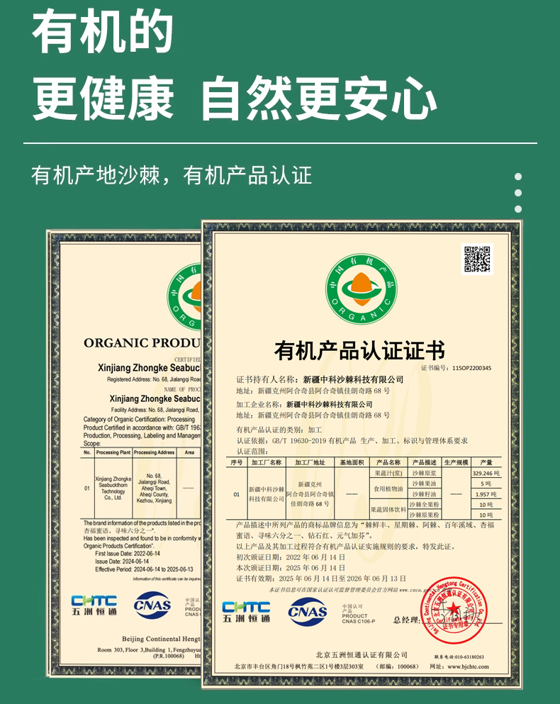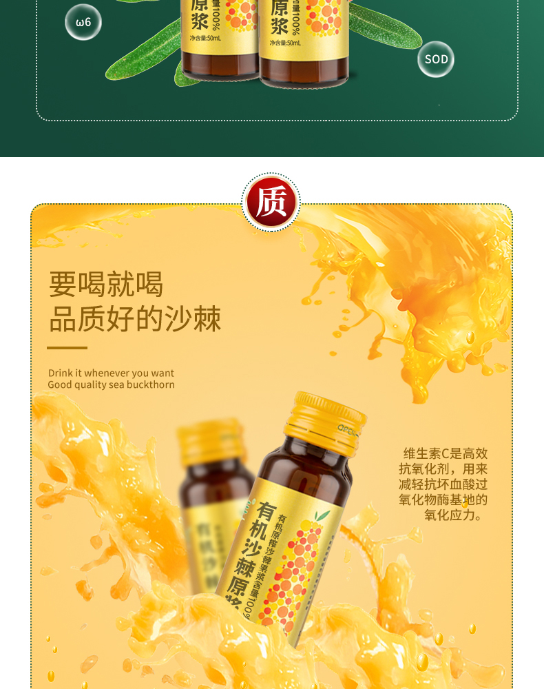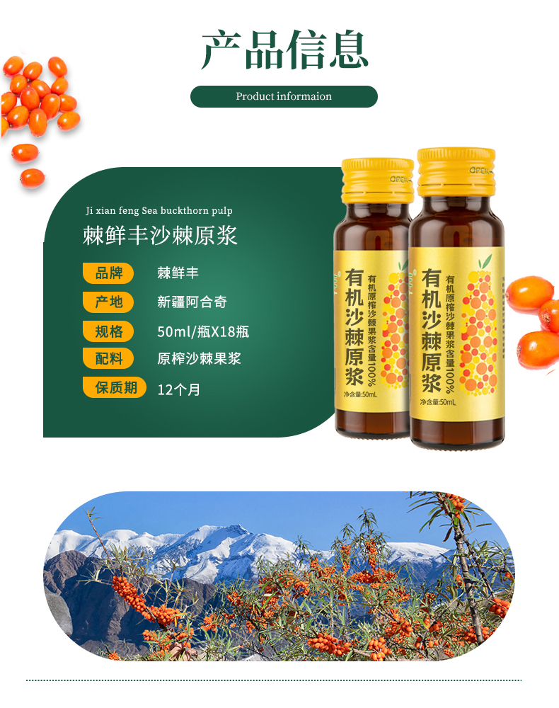 棘鲜丰有机沙棘原浆 50ml*18瓶