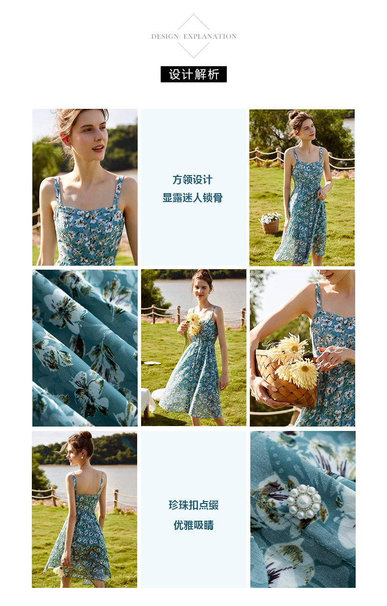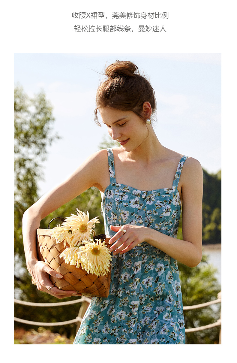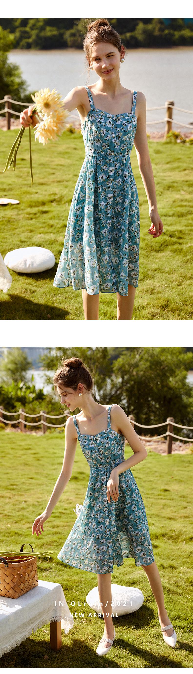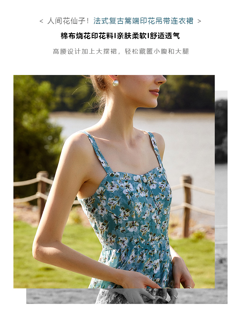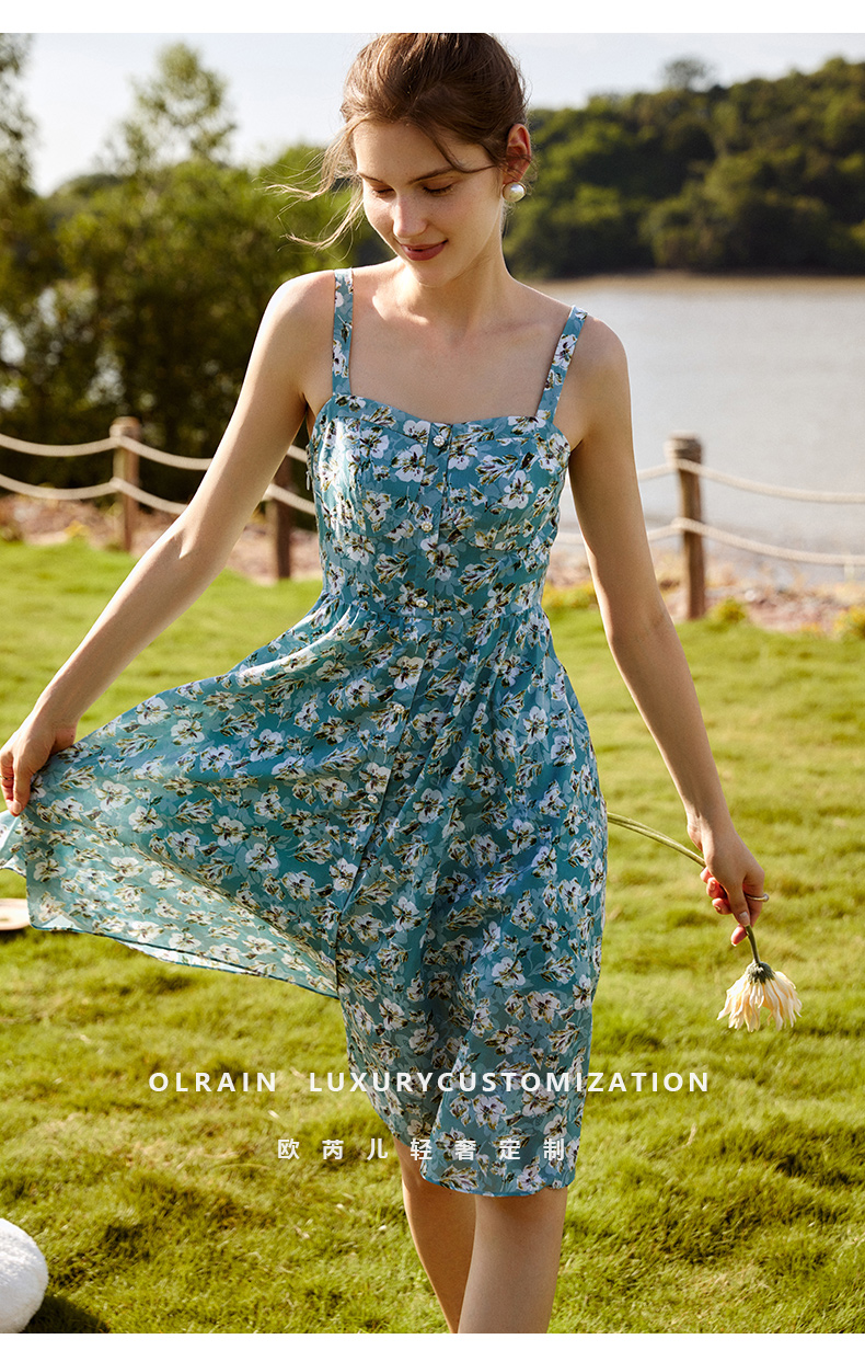 欧芮儿吊带连衣裙女新款2021收腰显瘦休闲法式薄款无袖背心裙