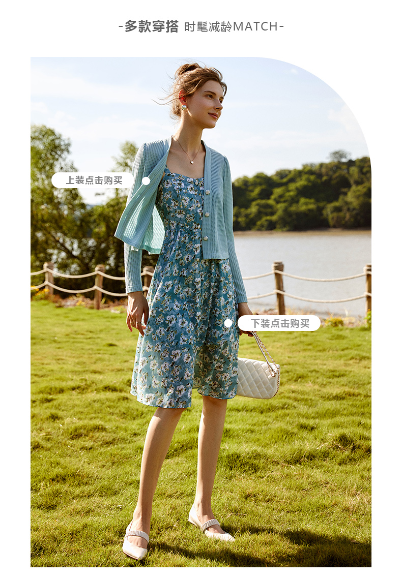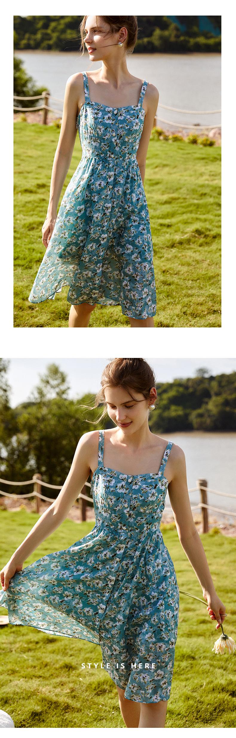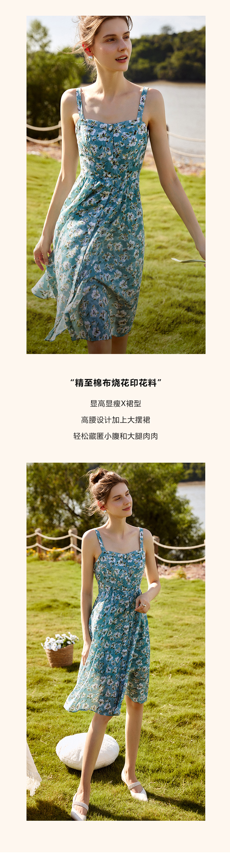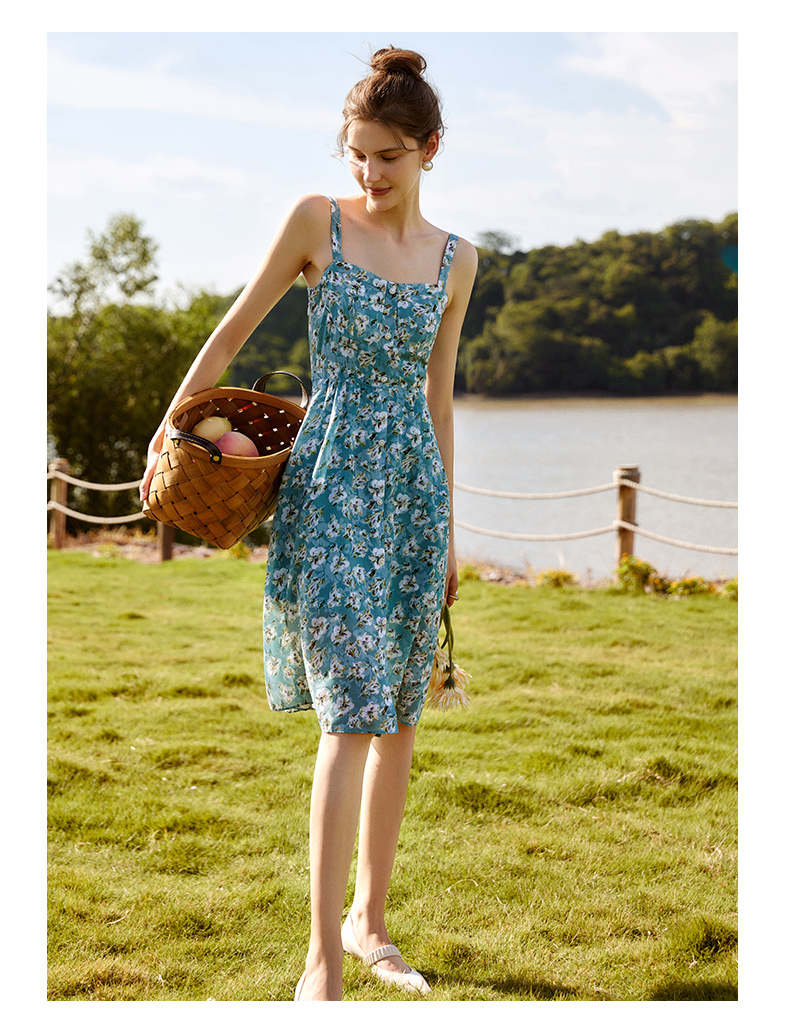 欧芮儿吊带连衣裙女新款2021收腰显瘦休闲法式薄款无袖背心裙