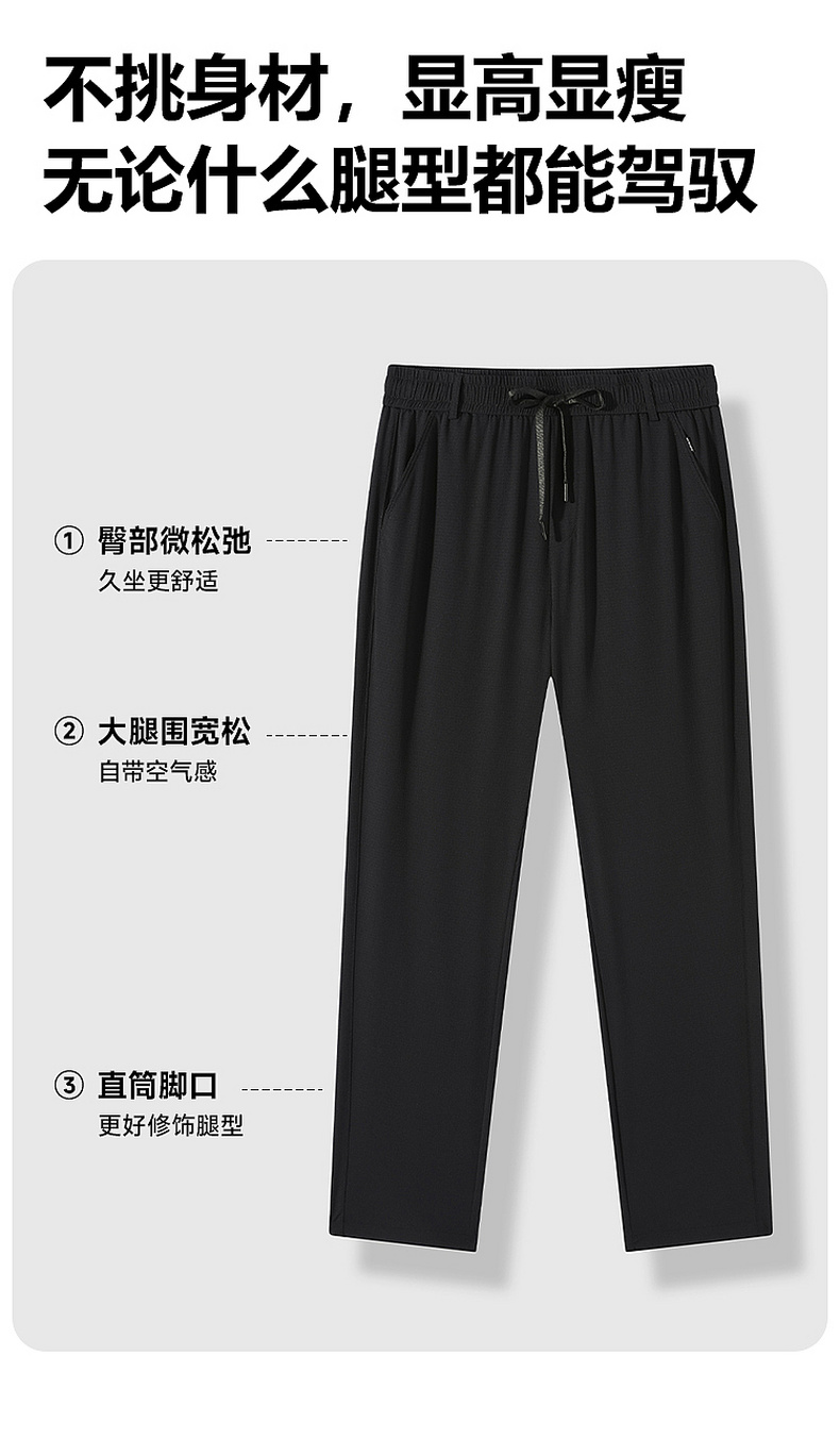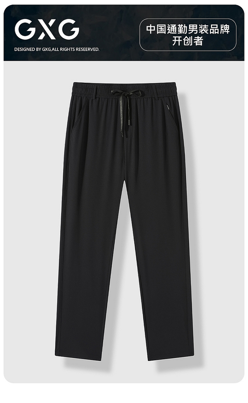 GXG男装【含桑蚕丝】26夏季日常通勤松紧腰系绳男式直筒休闲裤K&C