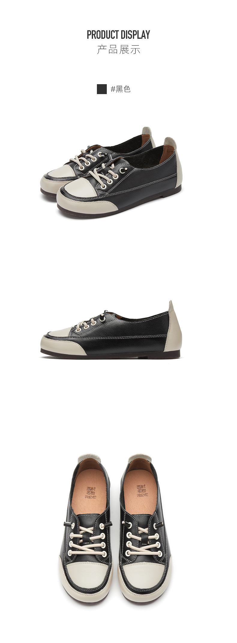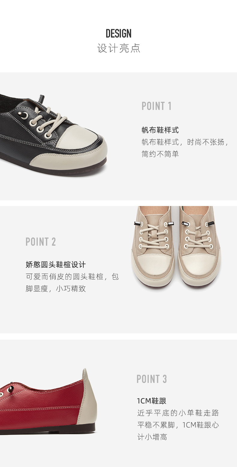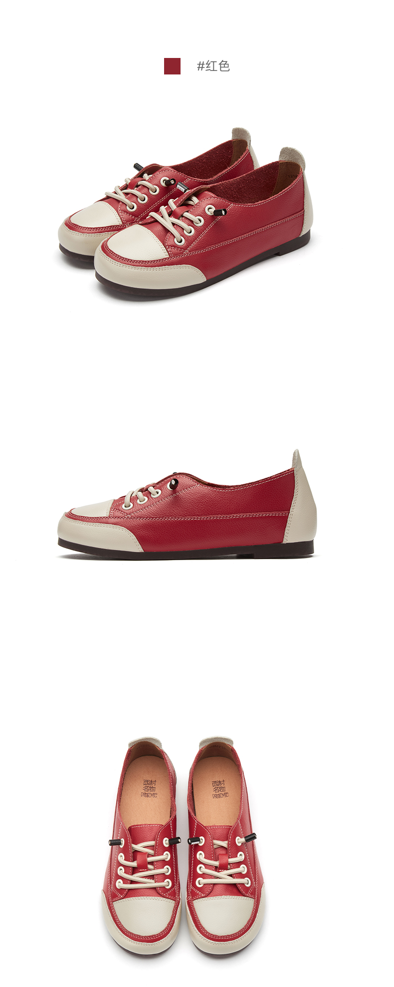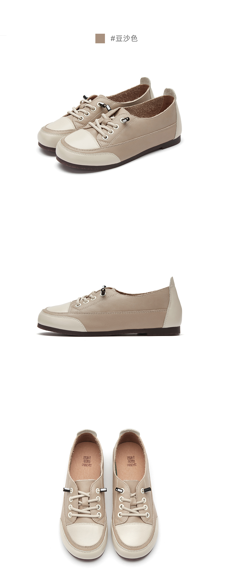 西村名物2021春季新款百搭豆豆鞋平底单鞋免系带牛皮软底鞋T21AM13181