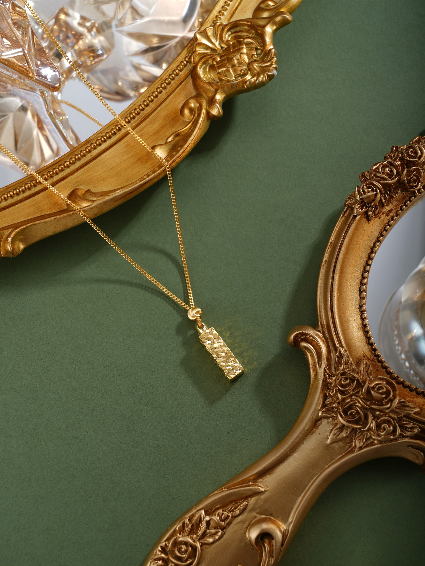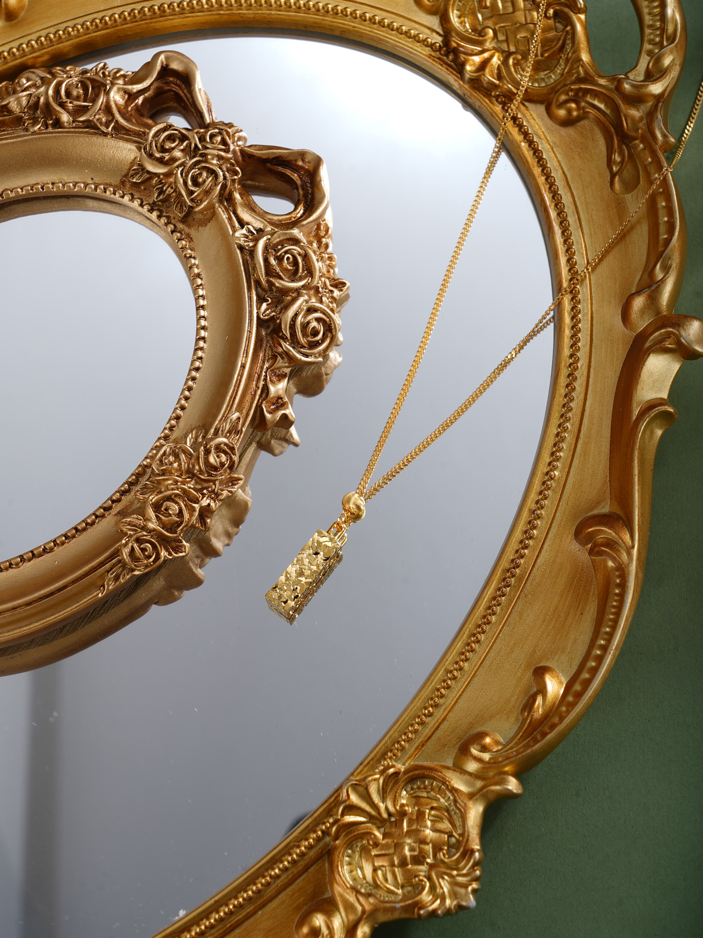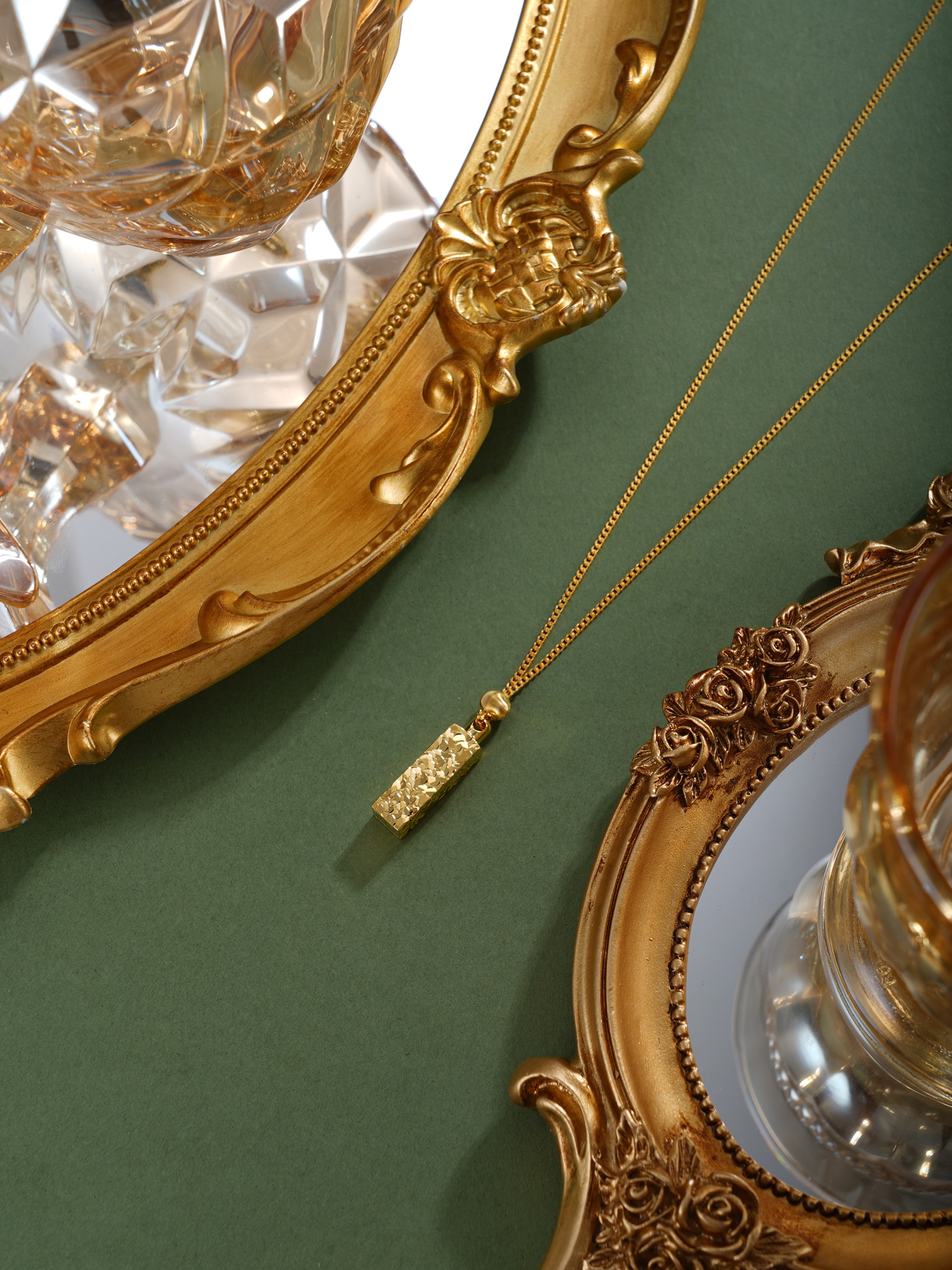 【寓意】:以纯银打造简约吊坠,表面镌刻碎冰裂纹纹样,命名“瞬华定格”,象征人生重要时刻皆成永恒,吉祥顺遂,福运绵长。