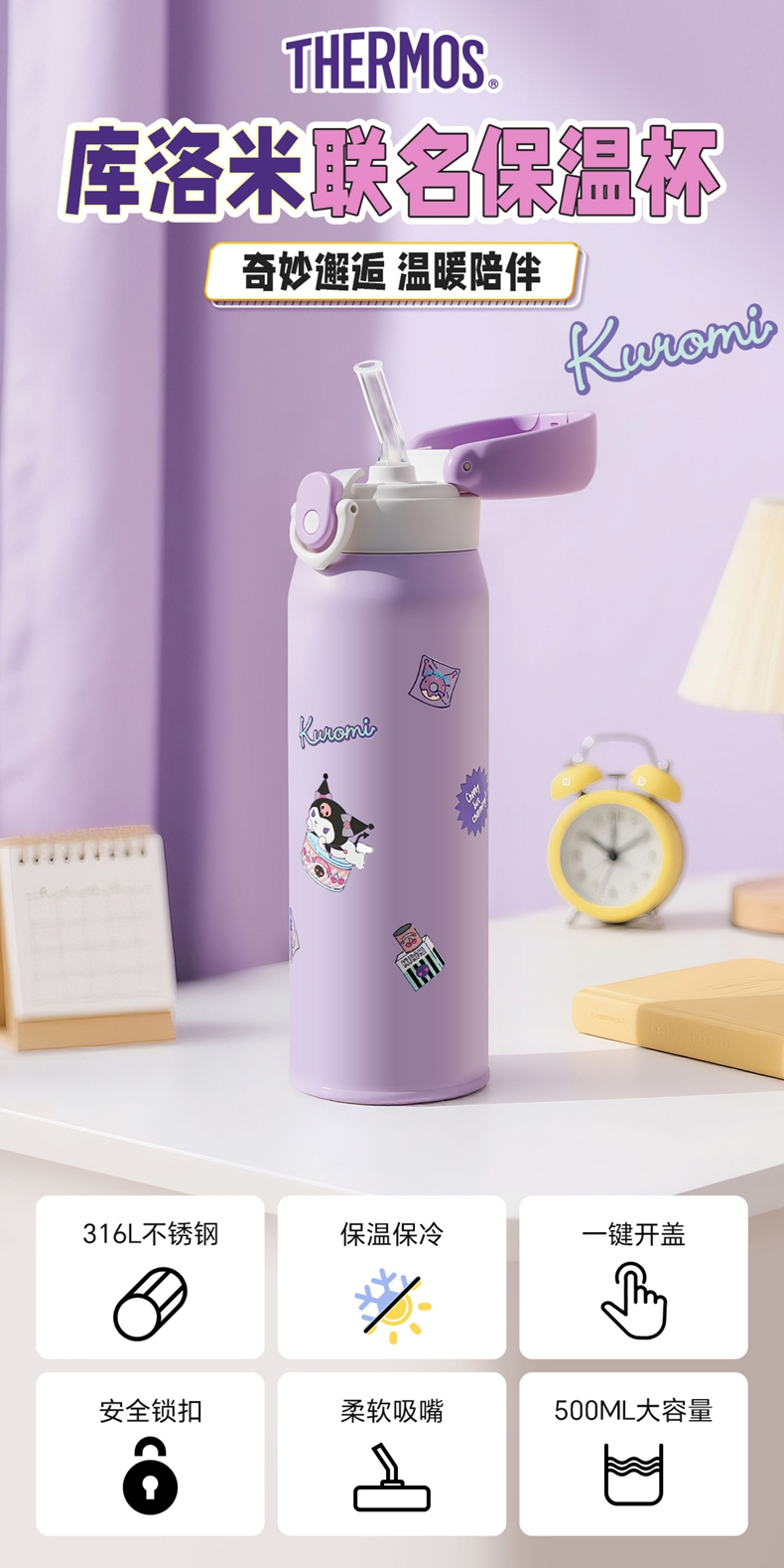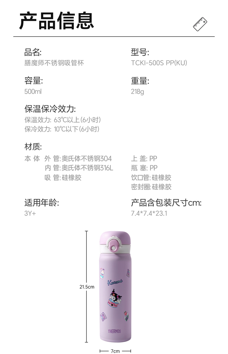 膳魔师 吸管杯 保温杯 500ml 酷洛米
