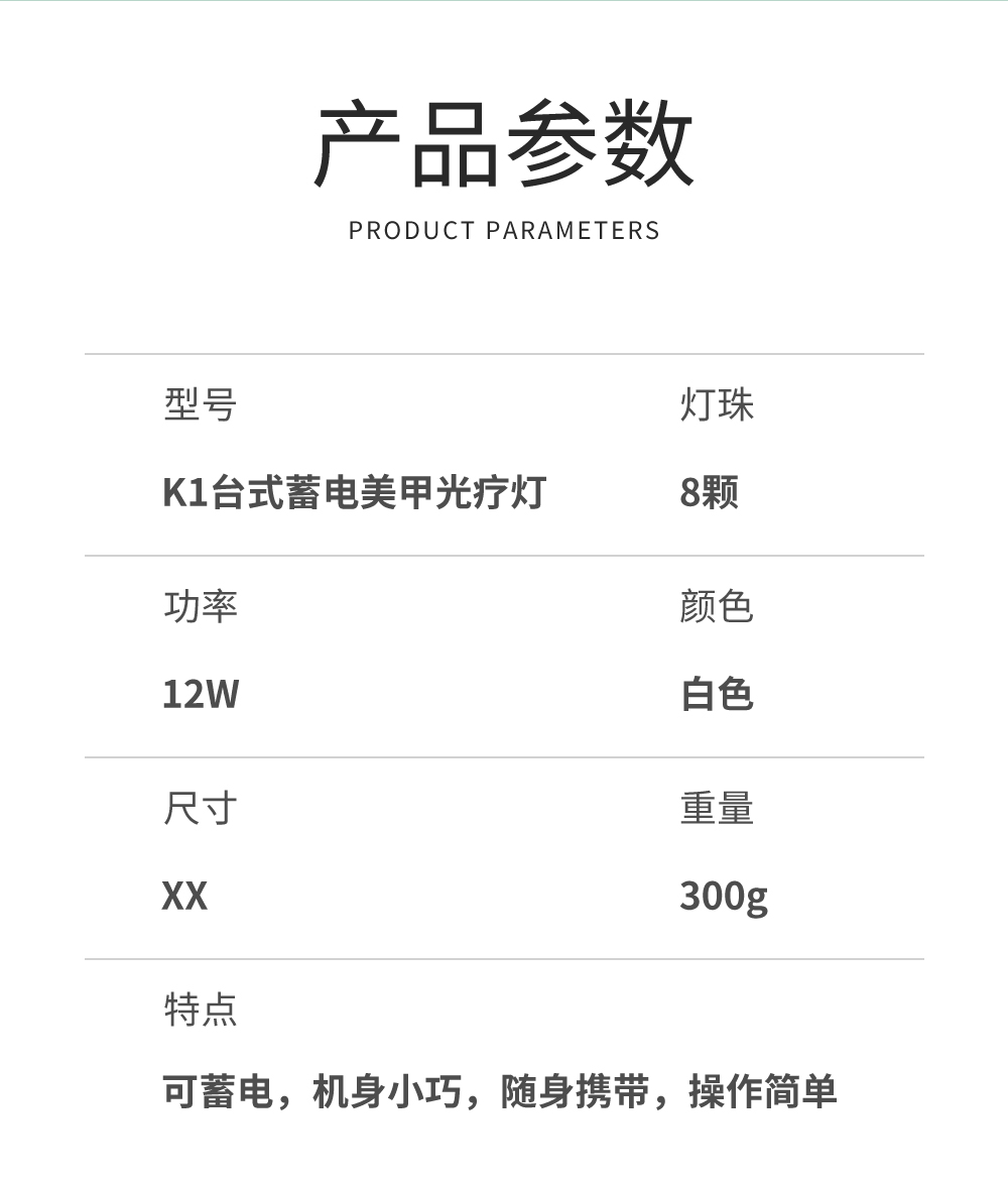 K1台式充电美甲光疗灯12W