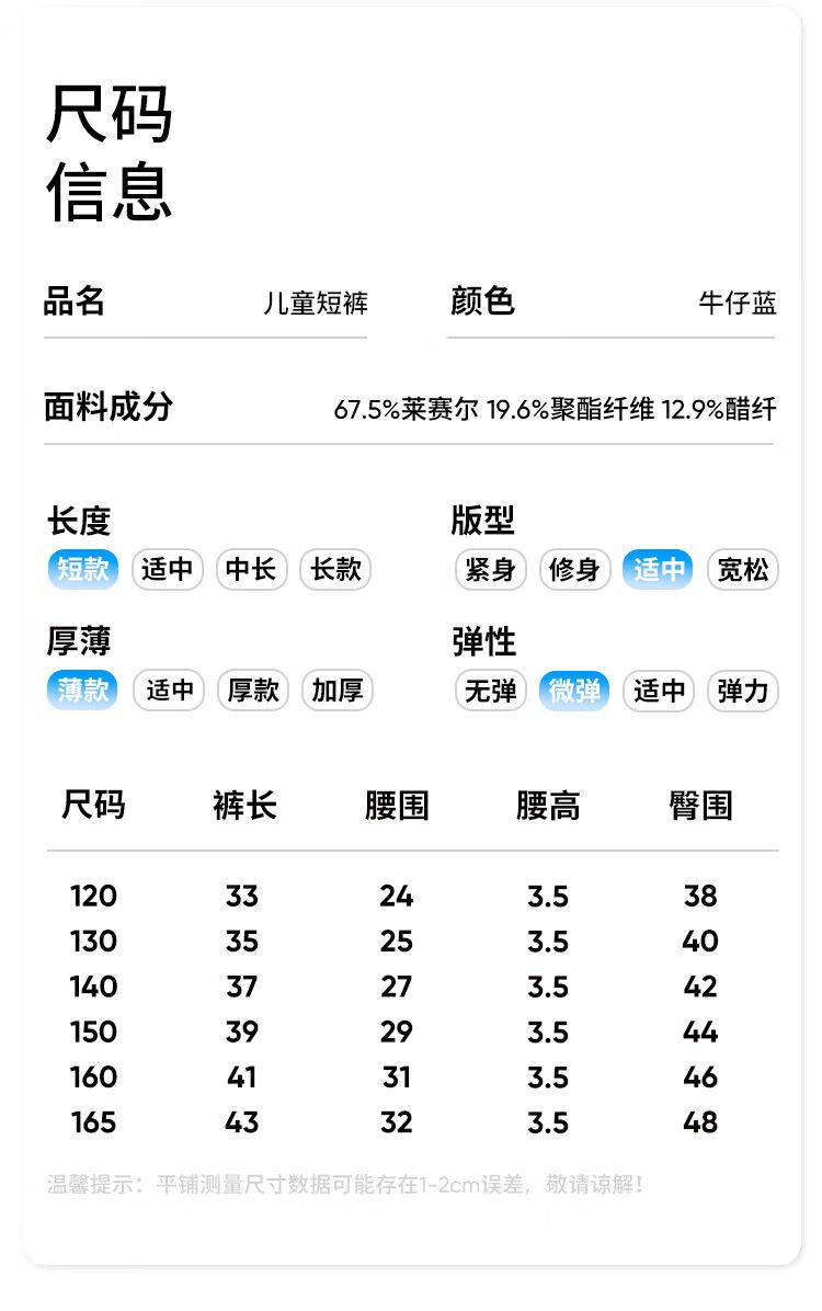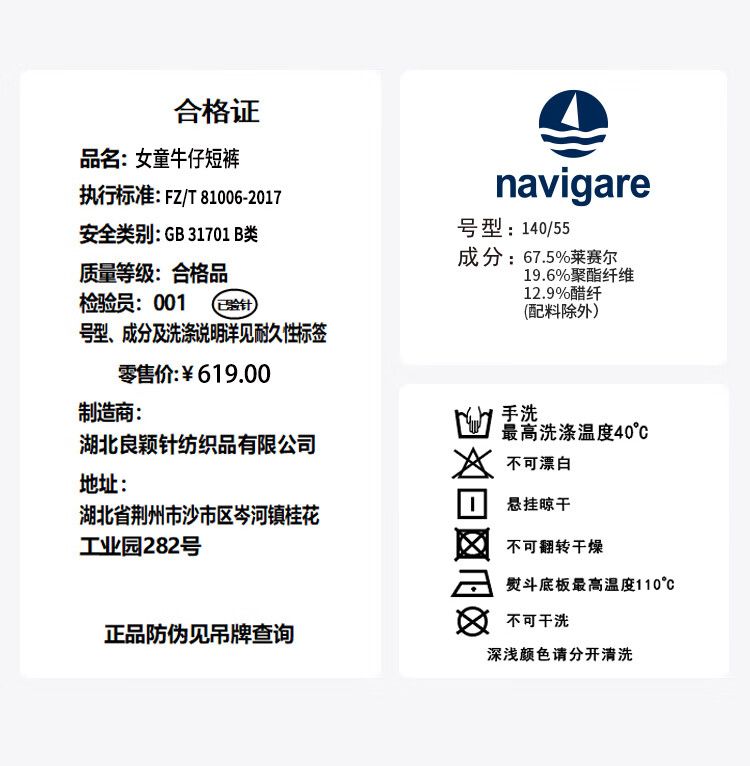 【纳维凯尔】【天丝软牛仔】【120-165】意大利小帆船女童裤子夏季薄款短裤