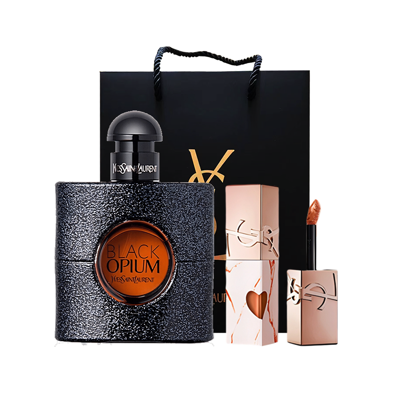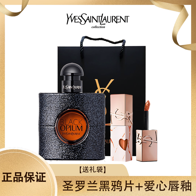 YSL圣罗兰黑鸦片经典版50ml浓香邂逅七夕限定大理石爱心唇釉,法国原装进口,东方花果调香氛搭配野欲茶棕唇色,礼袋包装更显心意。